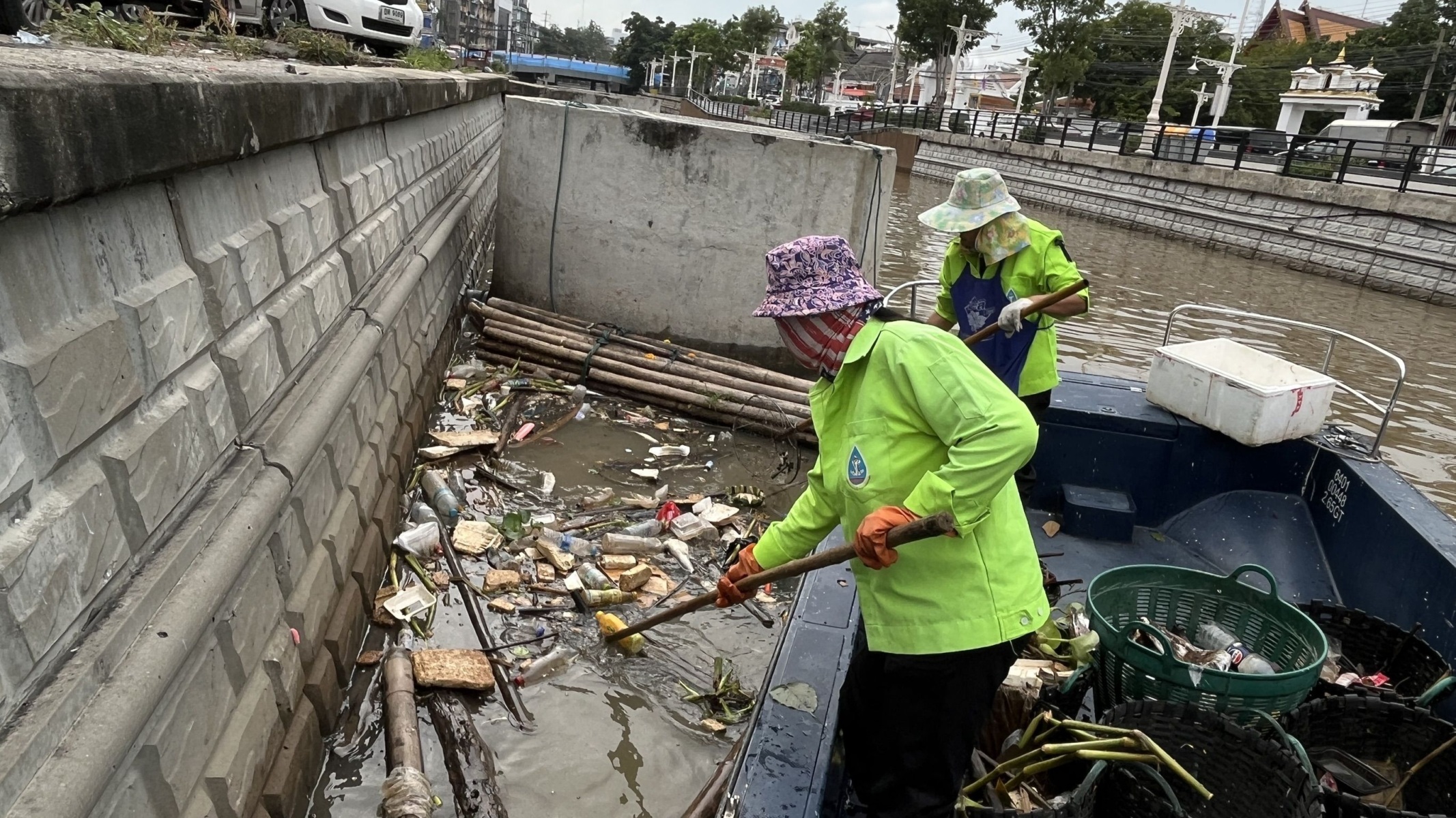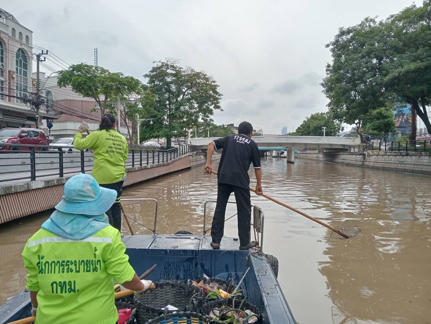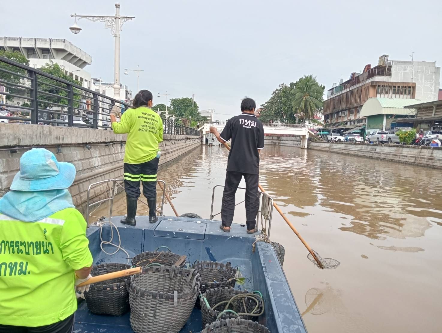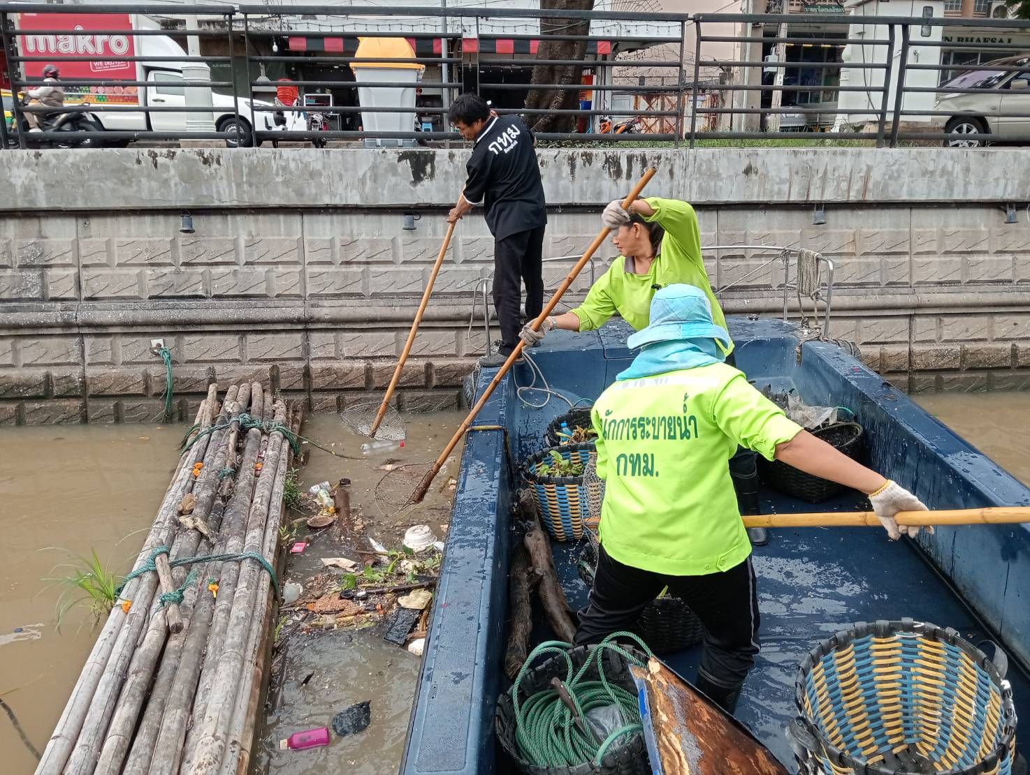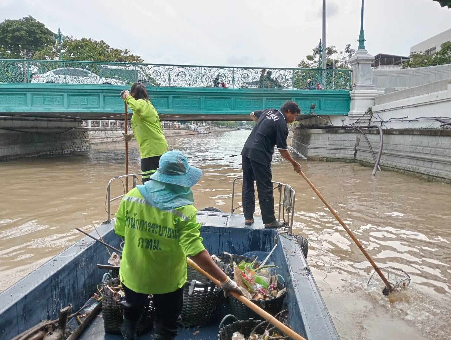 เจ้าหน้าที่ เก็บขยะและวัชพืชเก็บจาก ปตร. เทเวศร์ตลอดช่วงสะพานมัฆวานถึงสี่แยกมหานาค เขตดุสิต เขตพระนคร เขตป้อมปราบศัตรูพ่าย