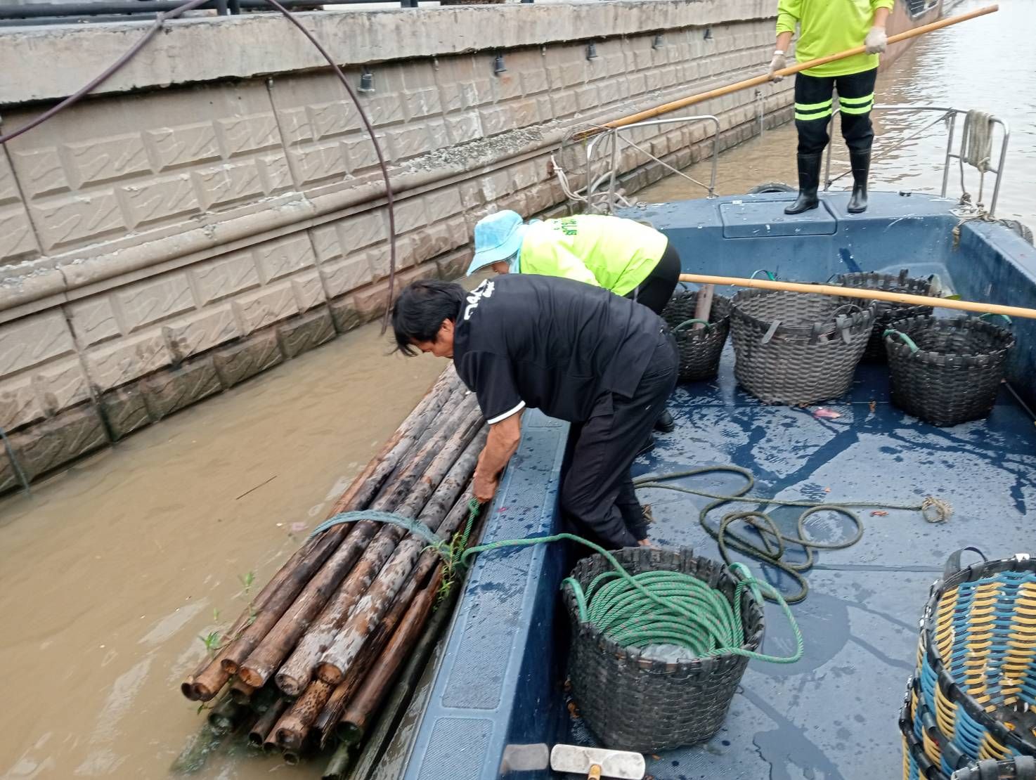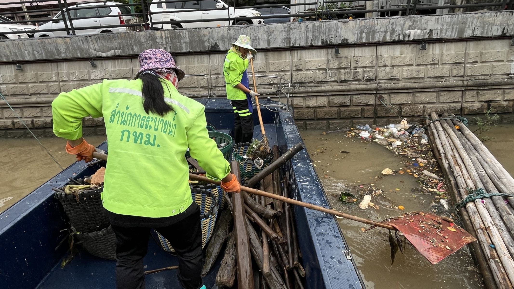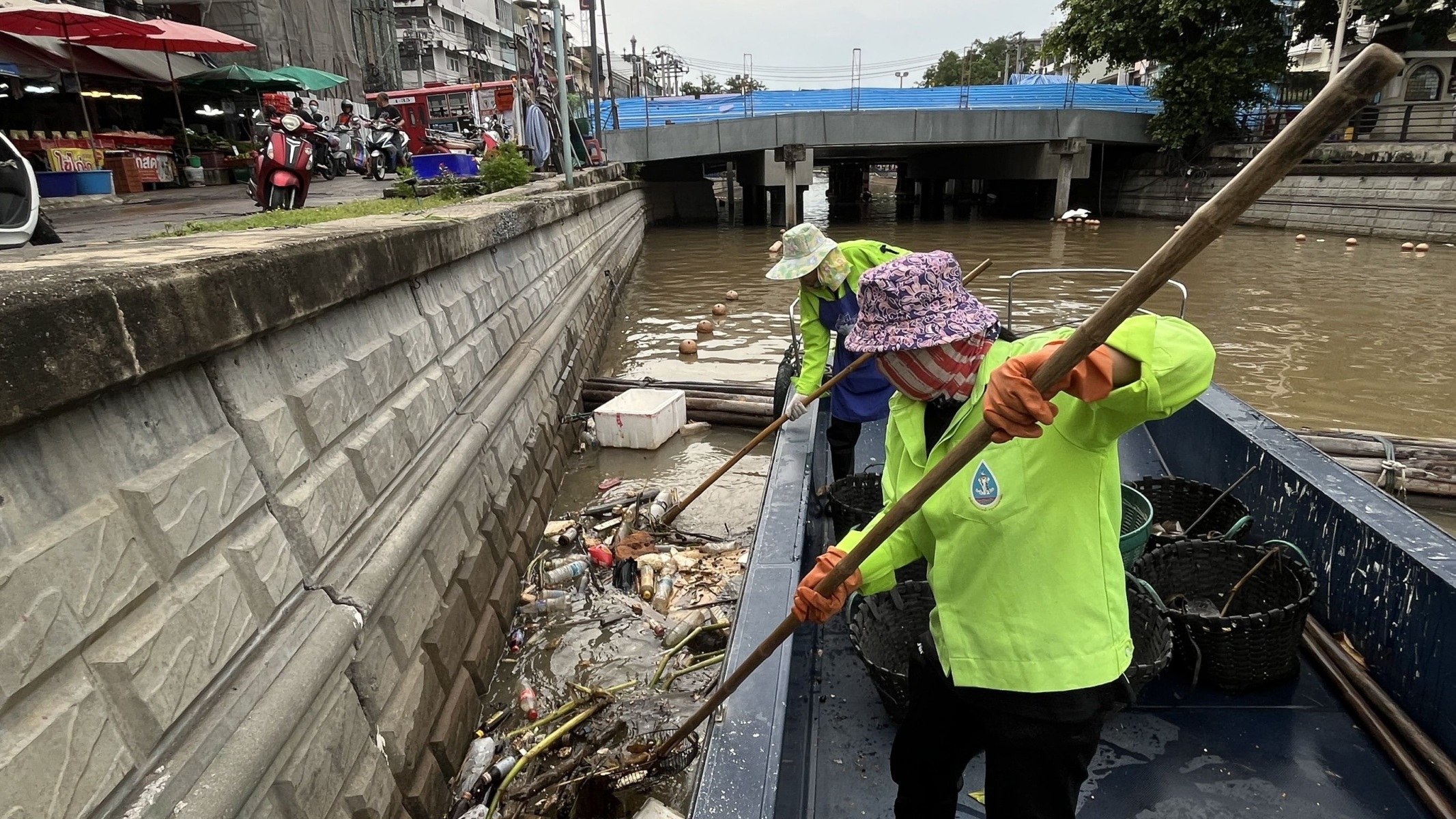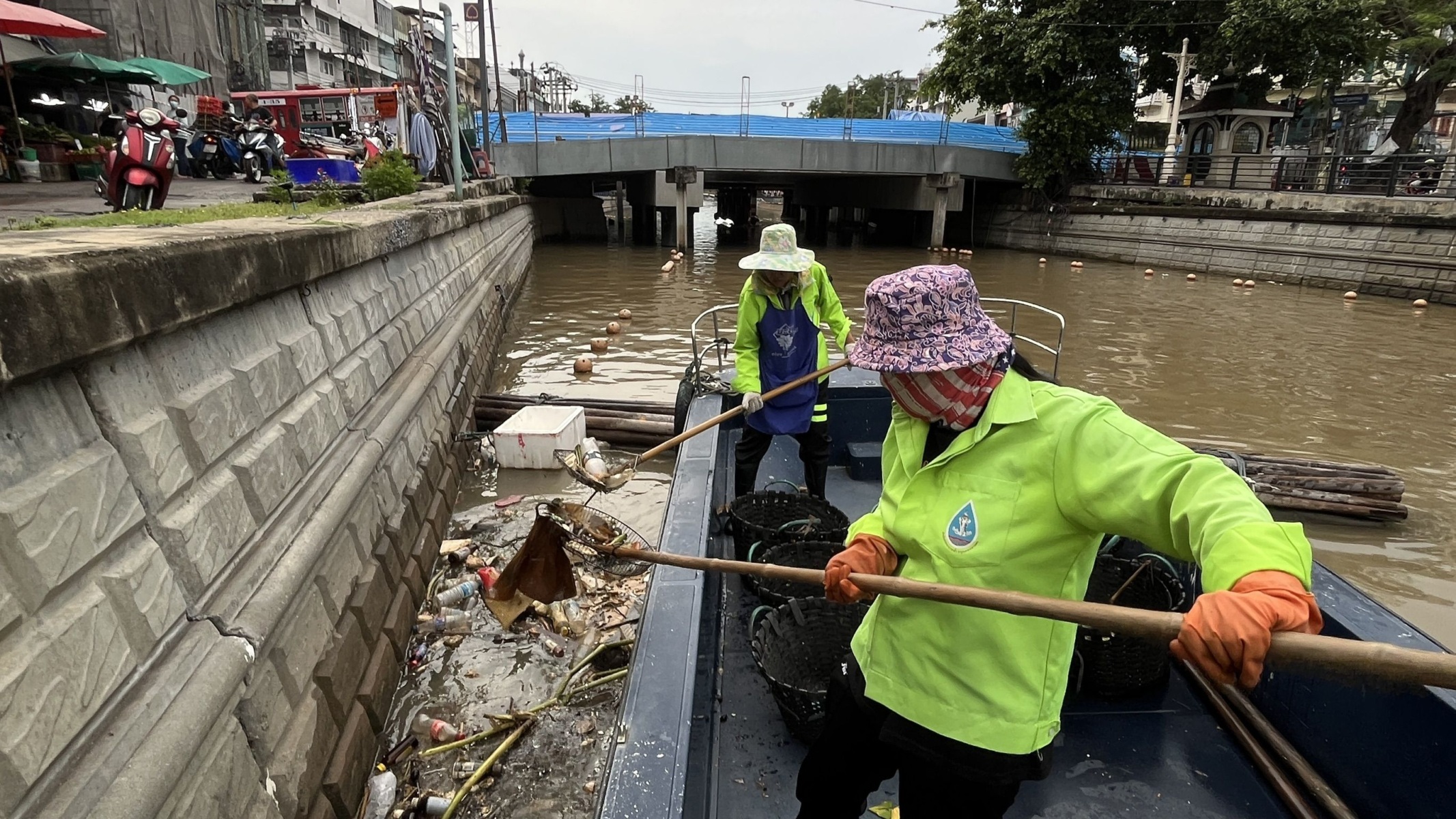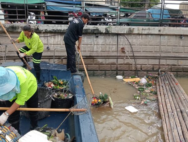 เจ้าหน้าที่ เก็บขยะและวัชพืชเก็บจาก ปตร. เทเวศร์ตลอดช่วงสะพานมัฆวานถึงสี่แยกมหานาค เขตดุสิต เขตพระนคร เขตป้อมปราบศัตรูพ่าย