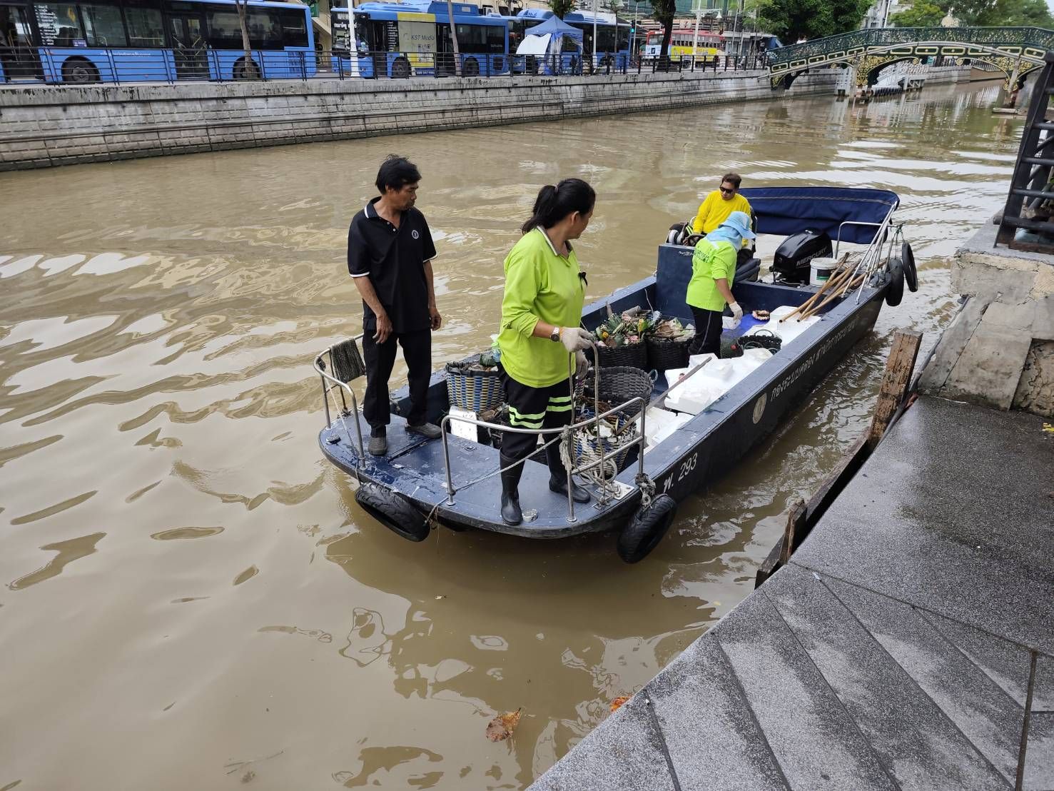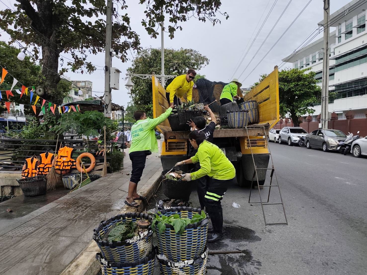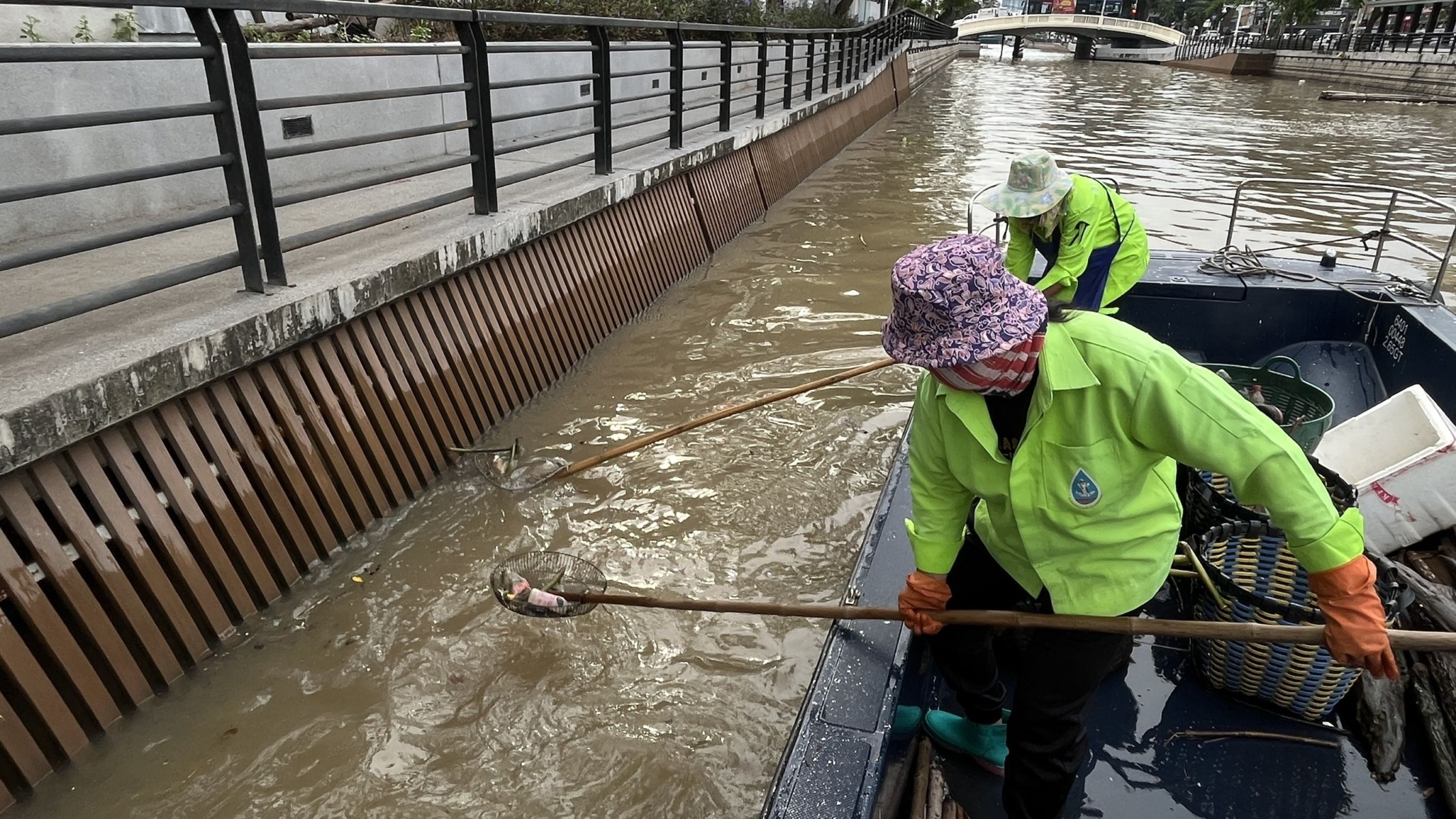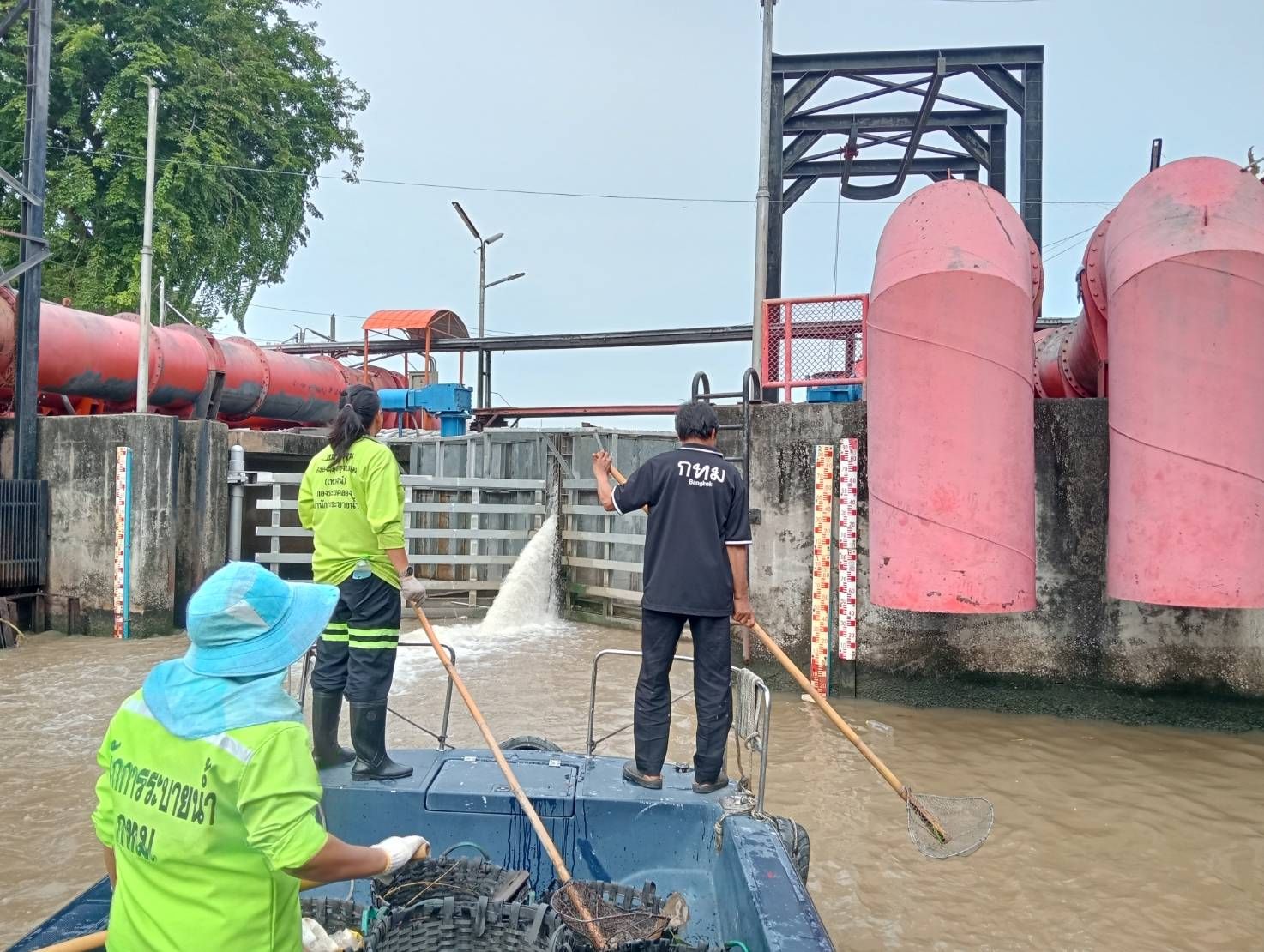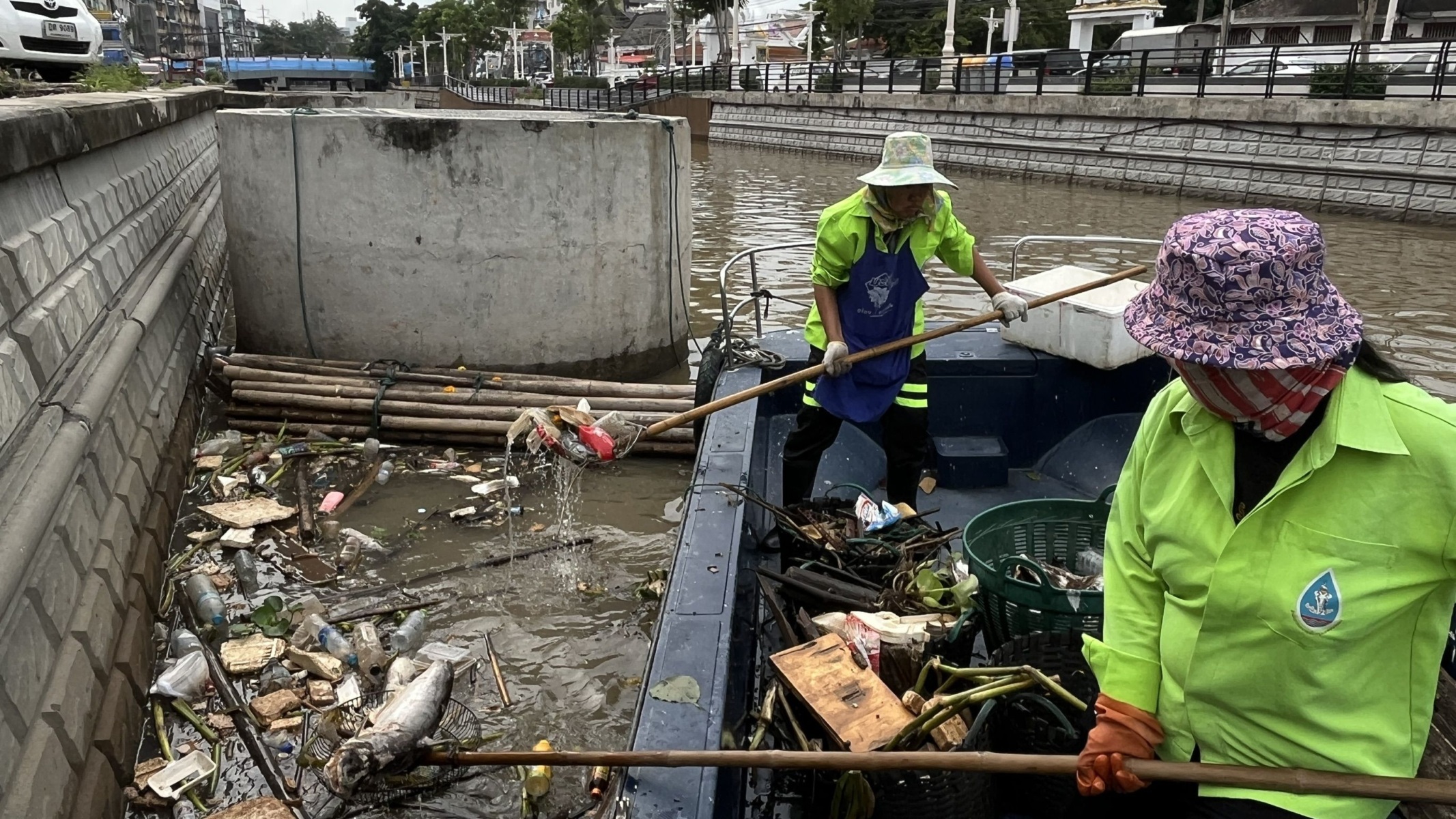 เจ้าหน้าที่ เก็บขยะและวัชพืชเก็บจาก ปตร. เทเวศร์ตลอดช่วงสะพานมัฆวานถึงสี่แยกมหานาค เขตดุสิต เขตพระนคร เขตป้อมปราบศัตรูพ่าย