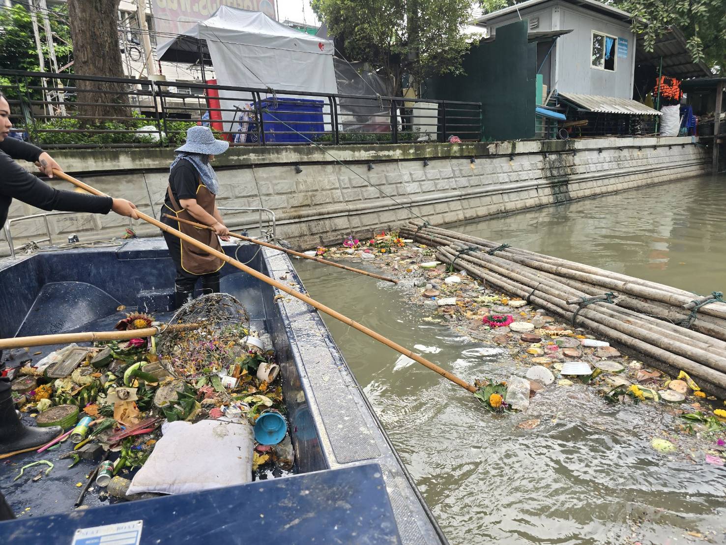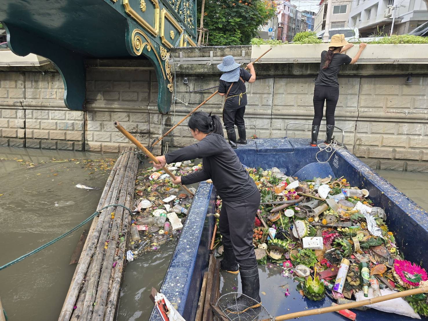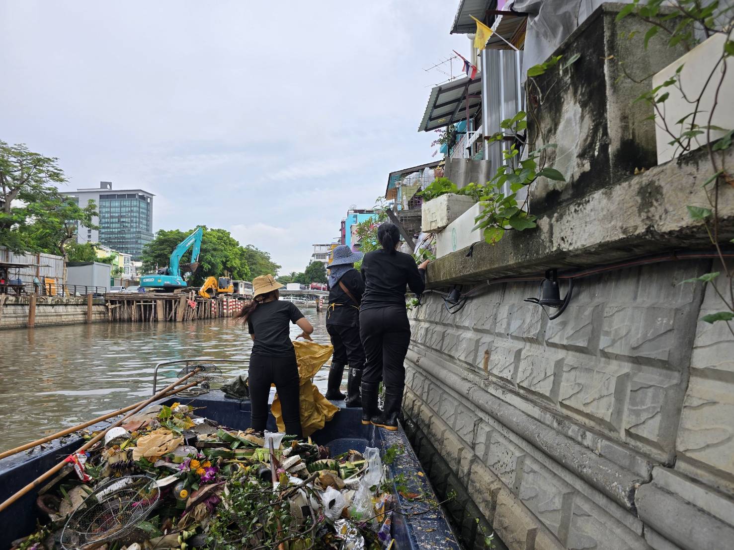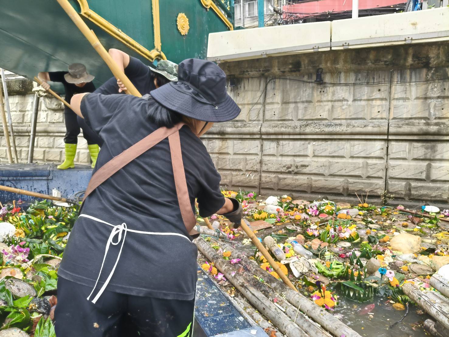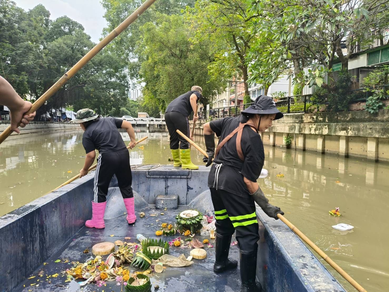 เจ้าหน้าที่ เก็บขยะช่วงสถานีสูบน้ำกรุงเกษมสะพานเจริญสวัสดิ์-สะพานนพวงศ์-สะพานกษัตริย์ศึกถึงสี่แยกมหานาค เขตปทุมวันและเขตป้อมปราบศัตรูพ่าย