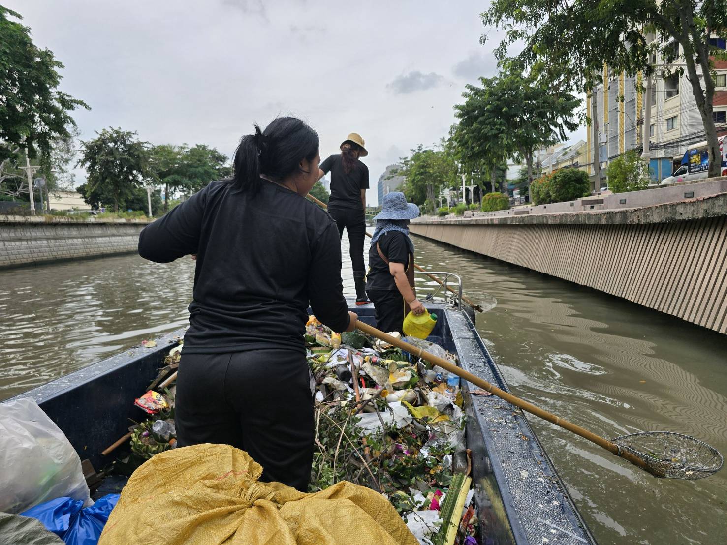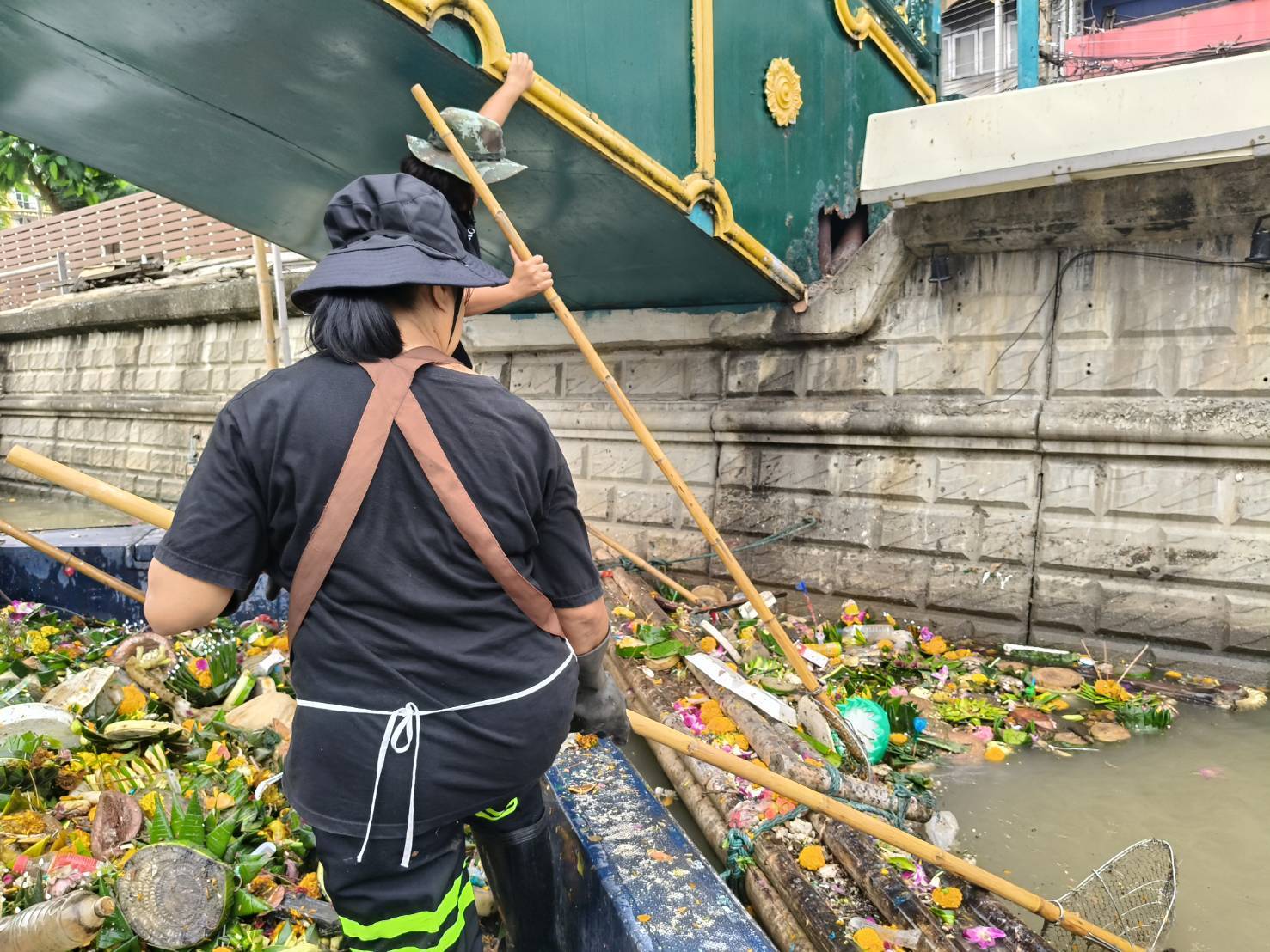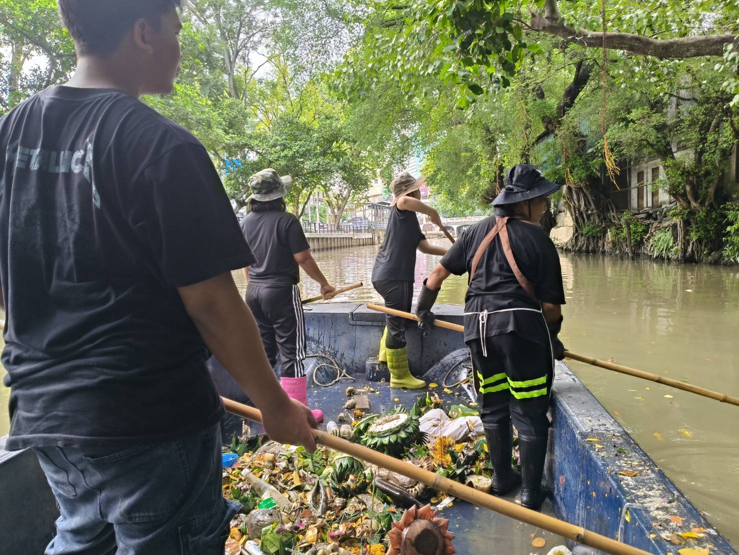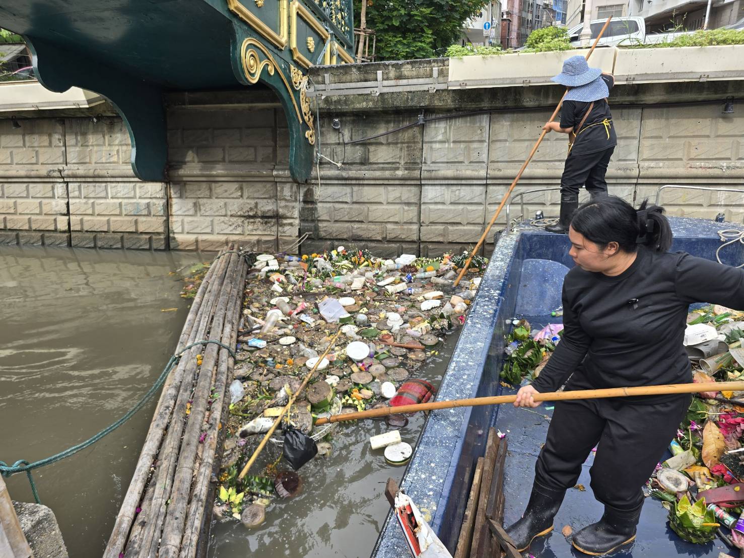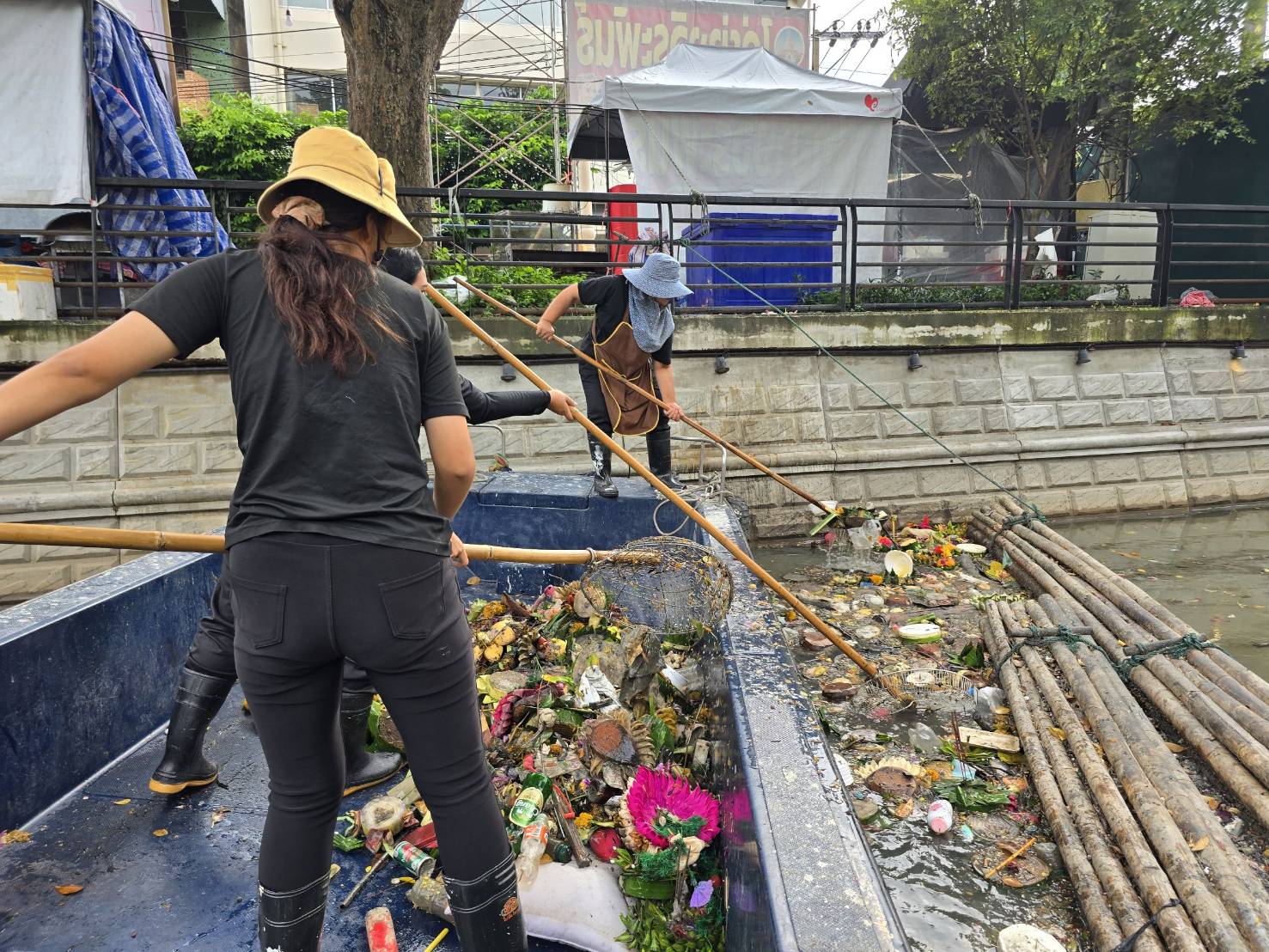 เจ้าหน้าที่ เก็บขยะช่วงสถานีสูบน้ำกรุงเกษมสะพานเจริญสวัสดิ์-สะพานนพวงศ์-สะพานกษัตริย์ศึกถึงสี่แยกมหานาค เขตปทุมวันและเขตป้อมปราบศัตรูพ่าย