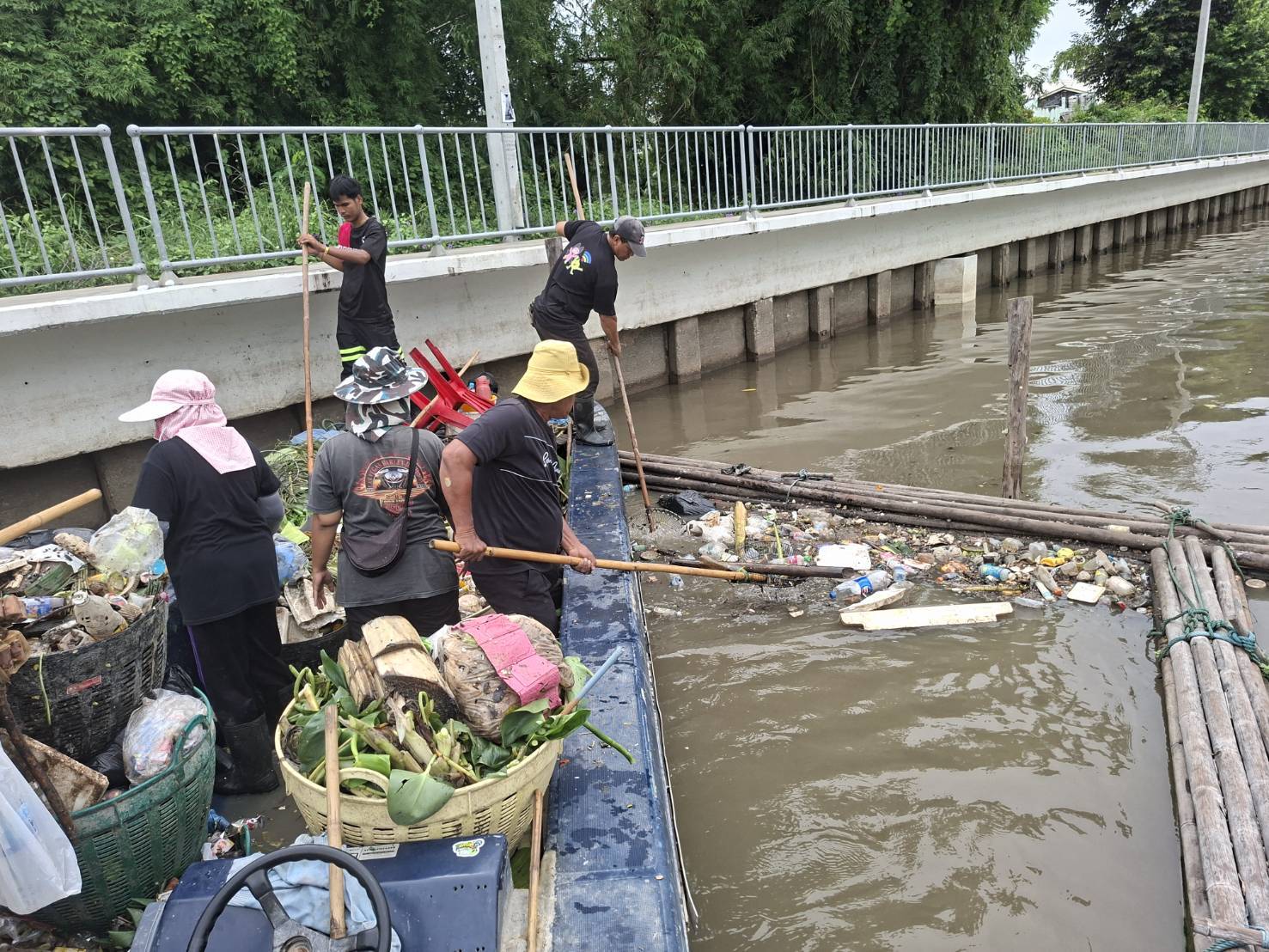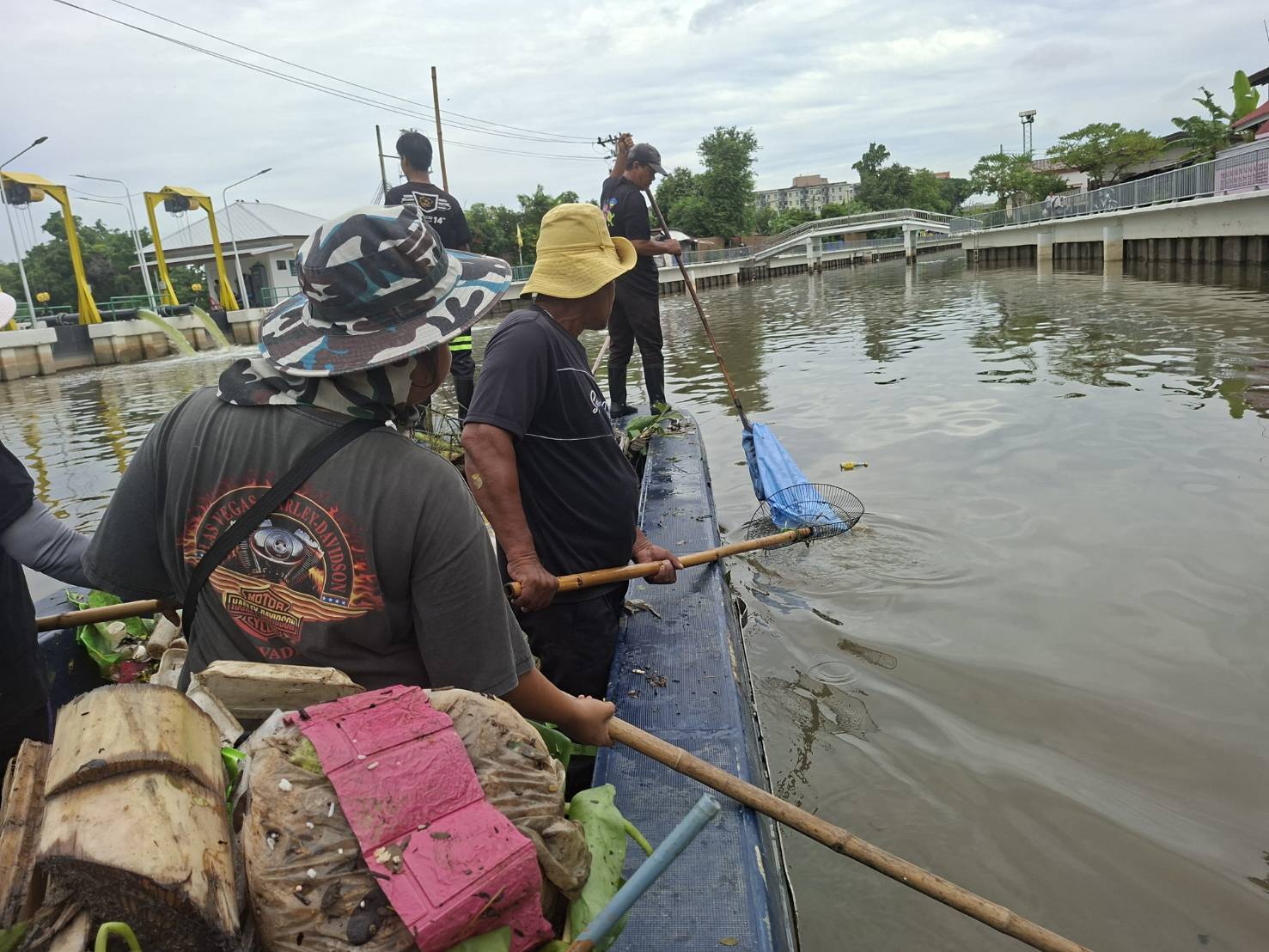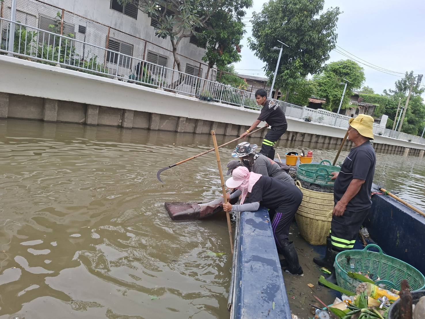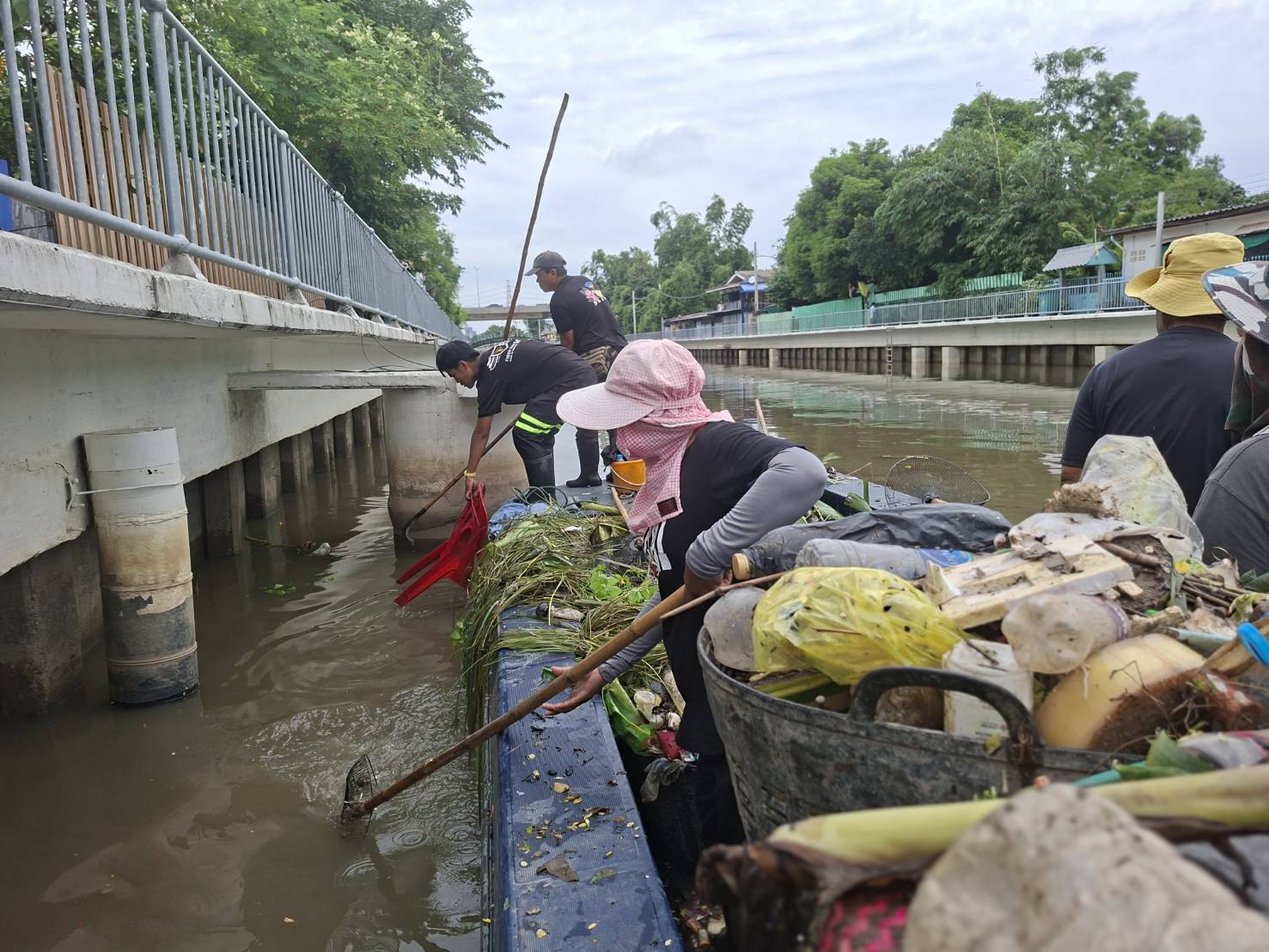 เจ้าหน้าที่ เก็บขยะและวัชพืชคลองเปรมประชากร ช่วงชุมชนตึกแดงบางซื่อเขตบางซื่อถึงสะพานงามวงศ์วานเขตจตุจักร