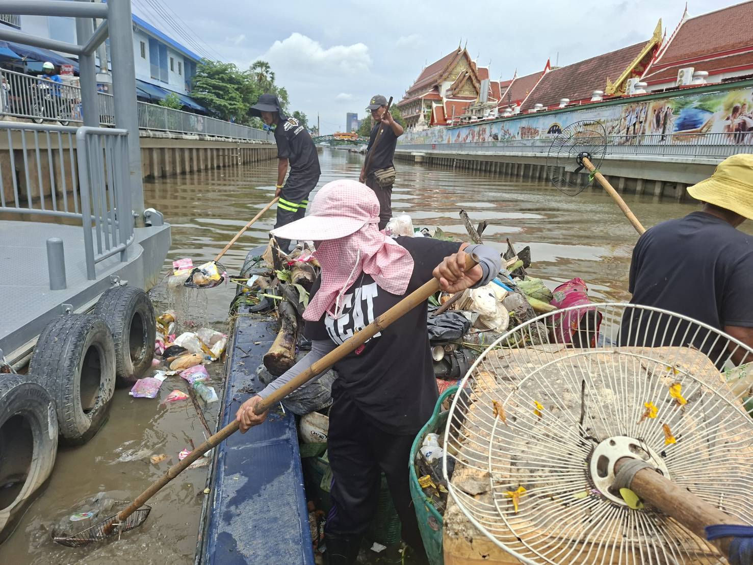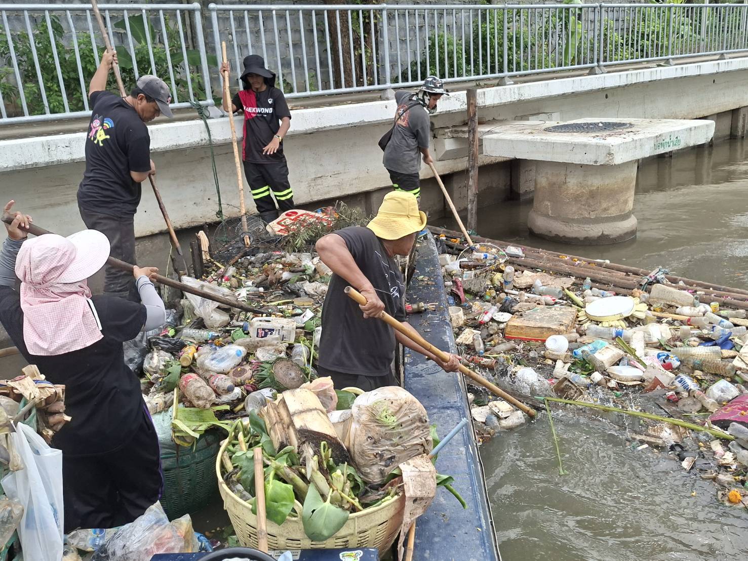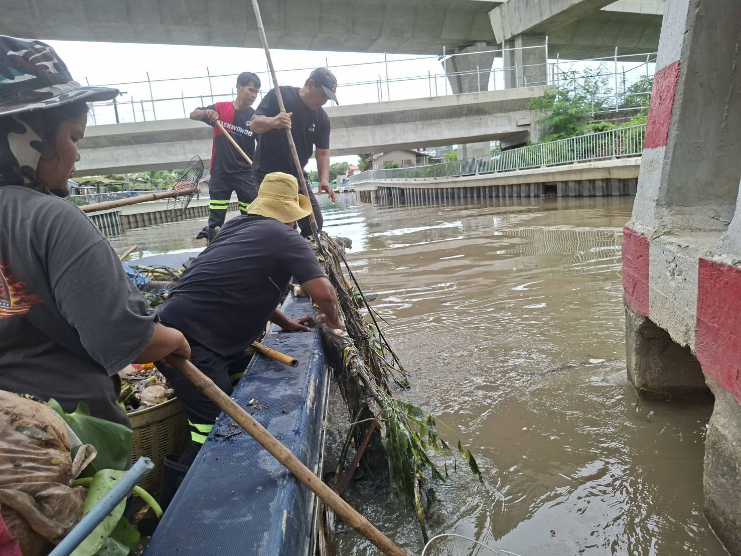 เจ้าหน้าที่ เก็บขยะและวัชพืชคลองเปรมประชากร ช่วงชุมชนตึกแดงบางซื่อเขตบางซื่อถึงสะพานงามวงศ์วานเขตจตุจักร