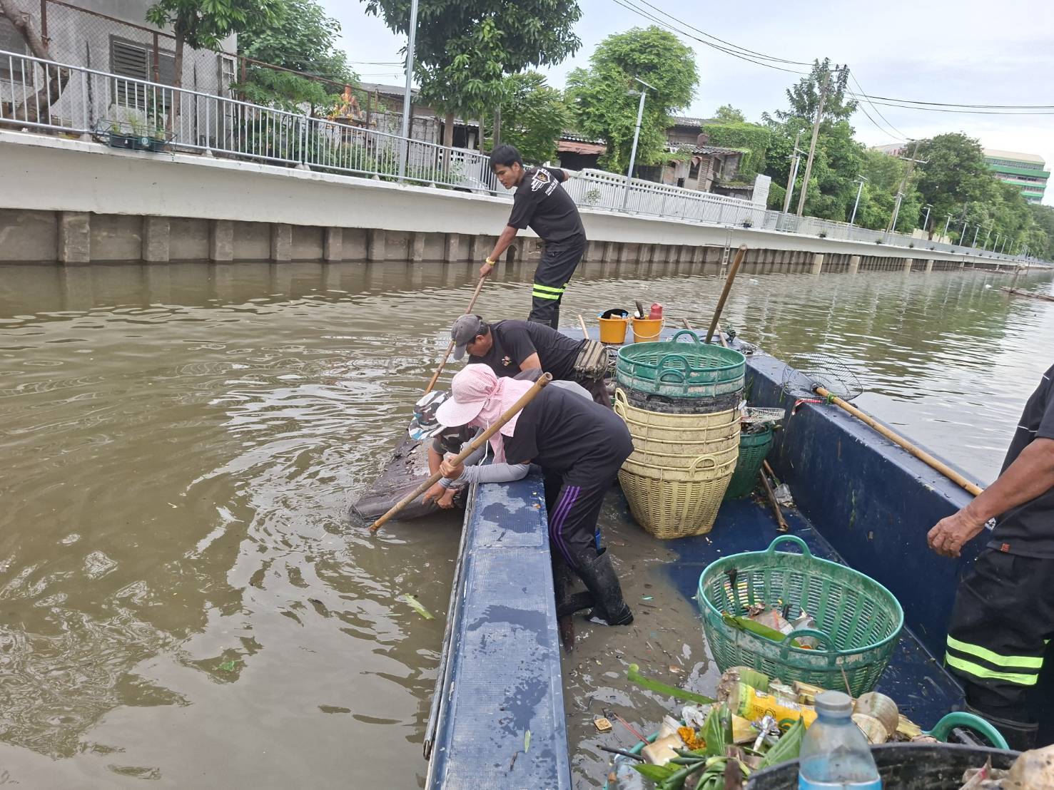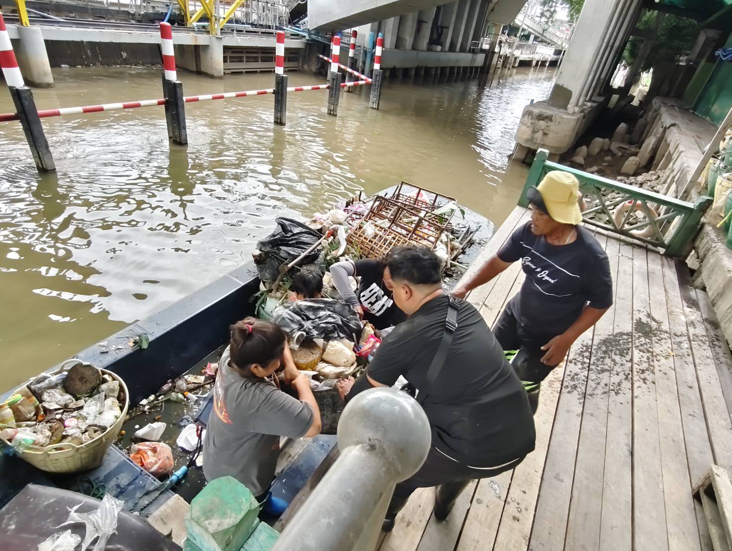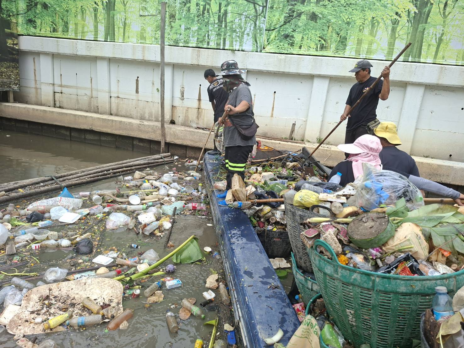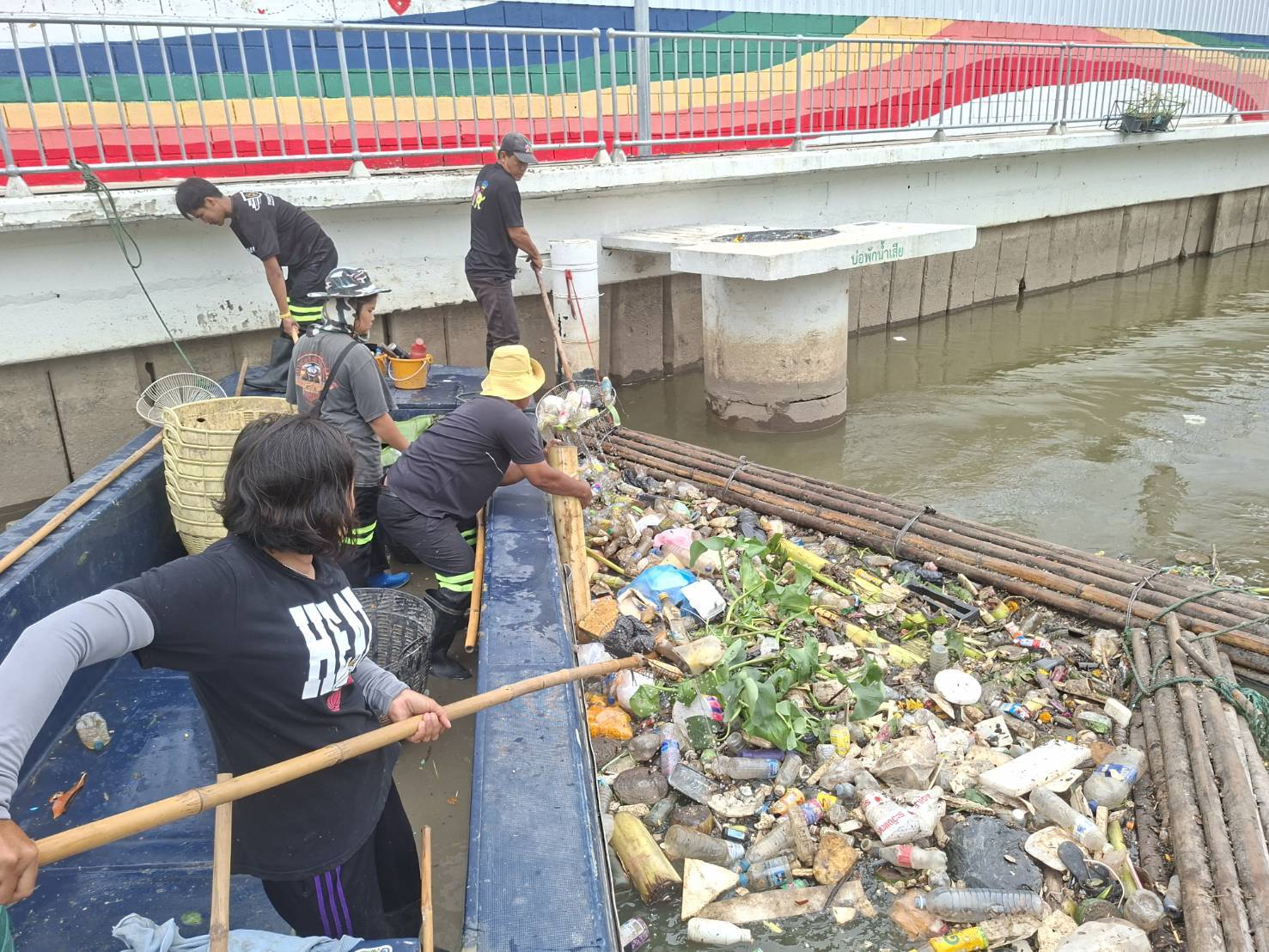 เจ้าหน้าที่ เก็บขยะและวัชพืชคลองเปรมประชากร ช่วงชุมชนตึกแดงบางซื่อเขตบางซื่อถึงสะพานงามวงศ์วานเขตจตุจักร