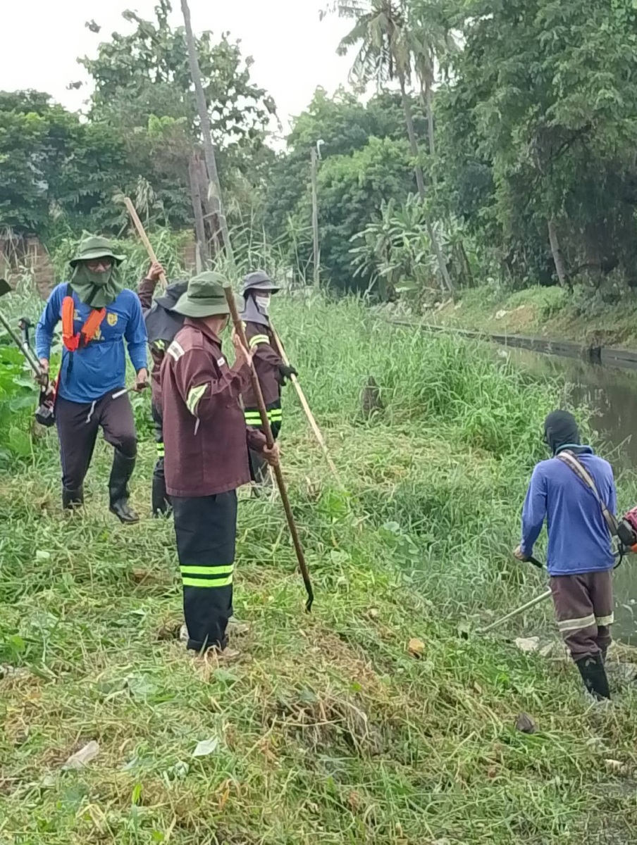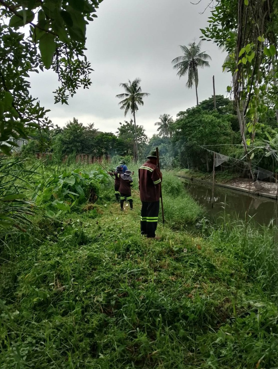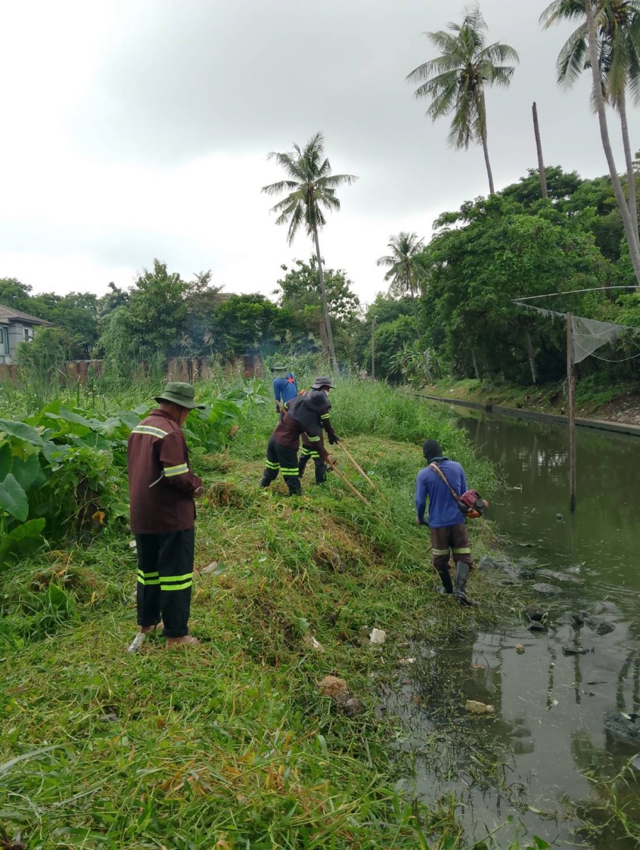 เจ้าหน้าที่ ออกปฏิบัติงาน ตัดหญ้าและกิ่งไม้เก็บวัชพืช คลองหนองใหญ่ เขตบางแค