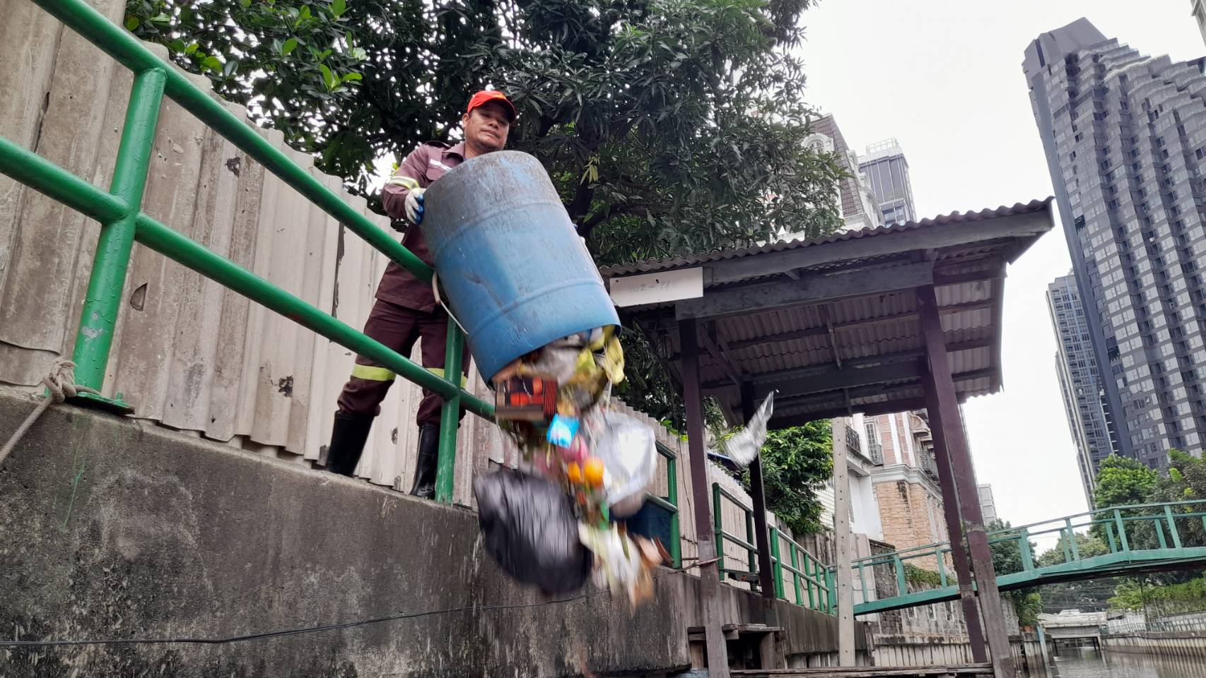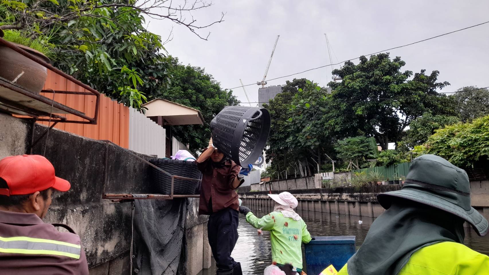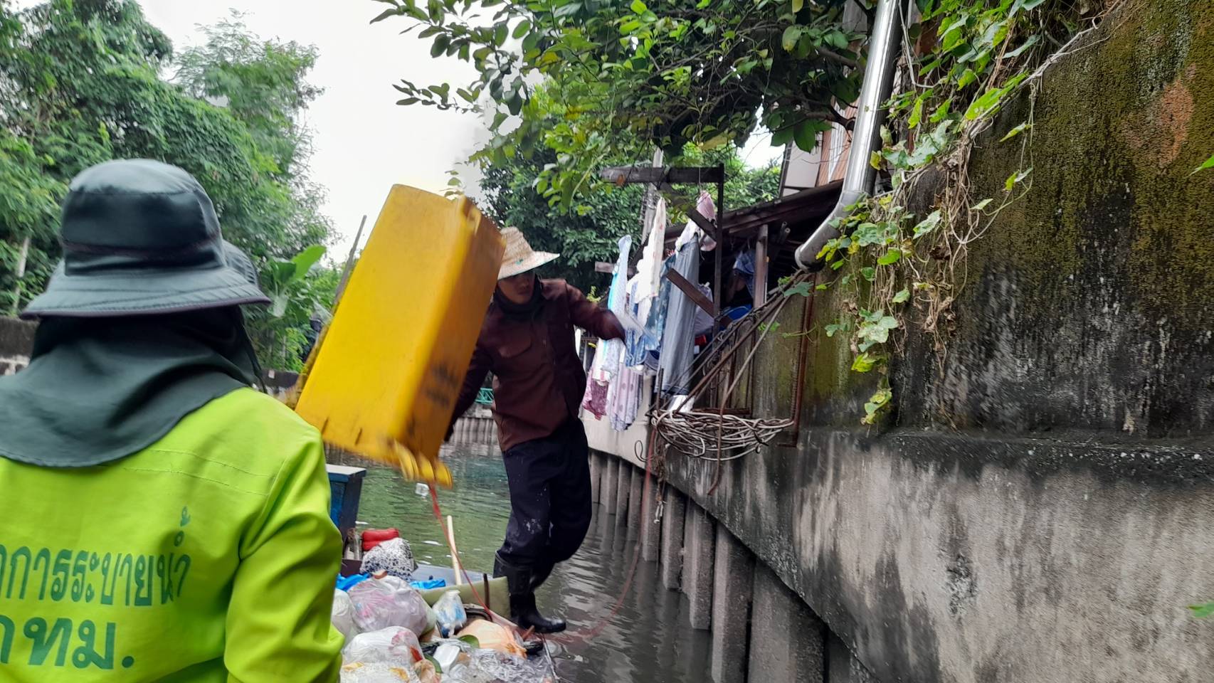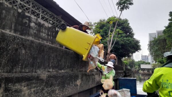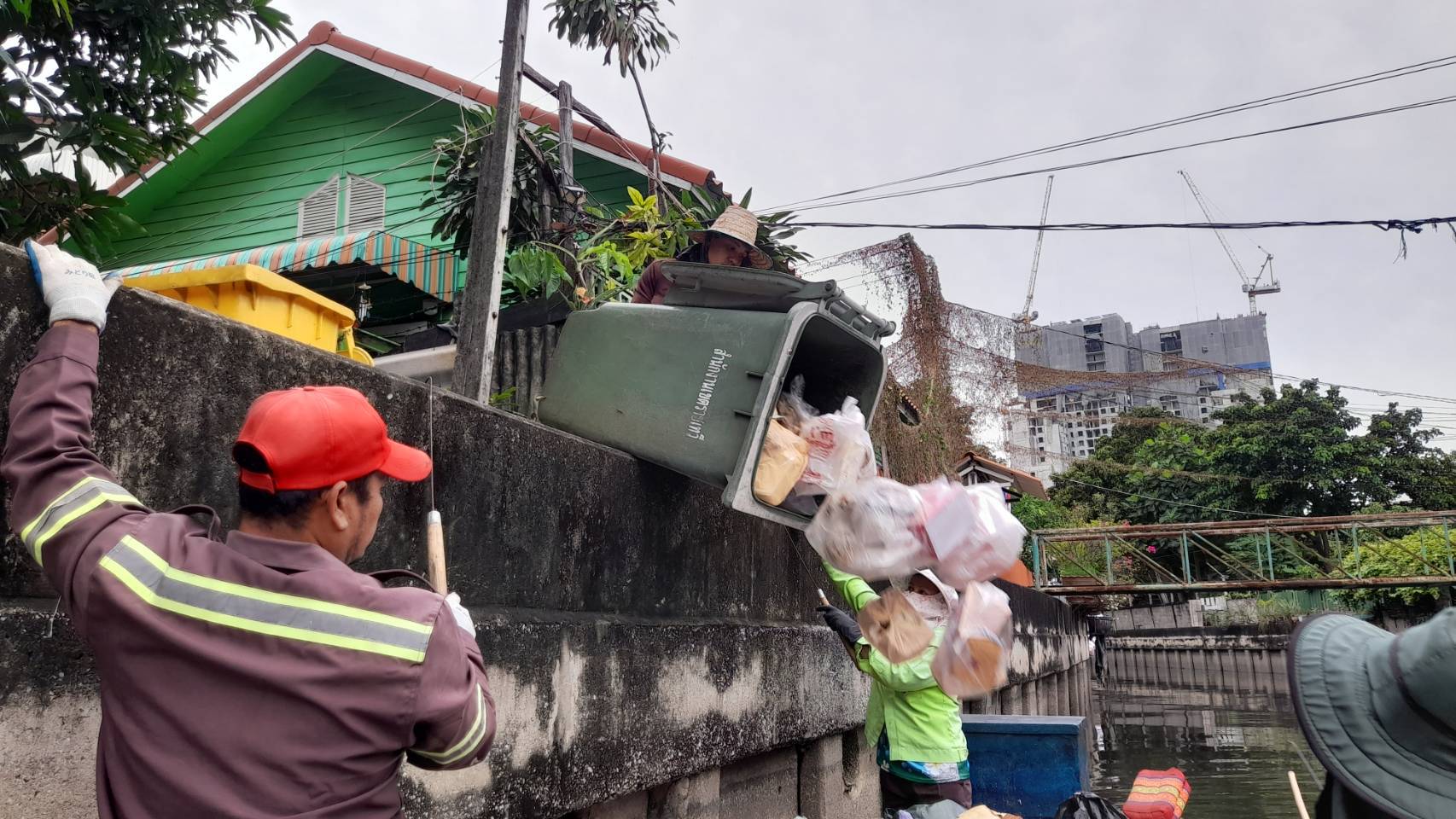 เจ้าหน้าที่ เก็บขยะแนวสันเขื่อนและตักขยะในคลองสามเสน เขตห้วยขวาง เขตดินแดงและเขตราชเทวี