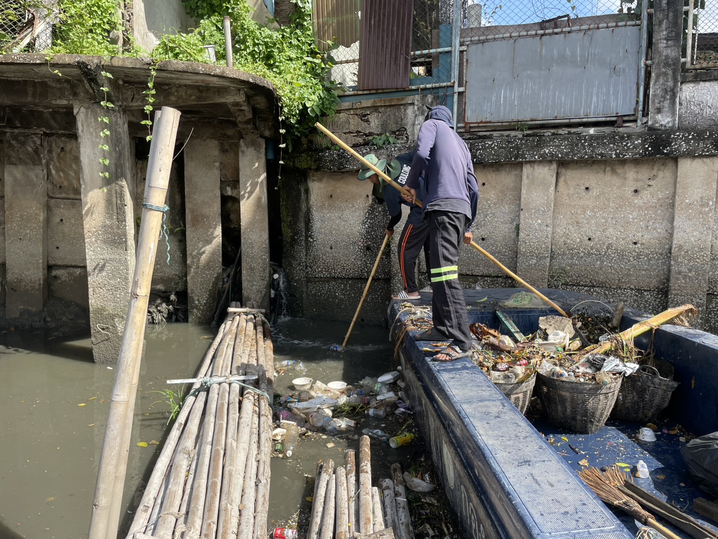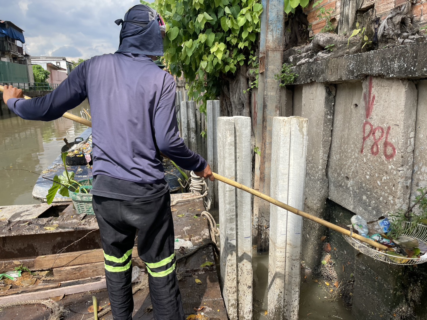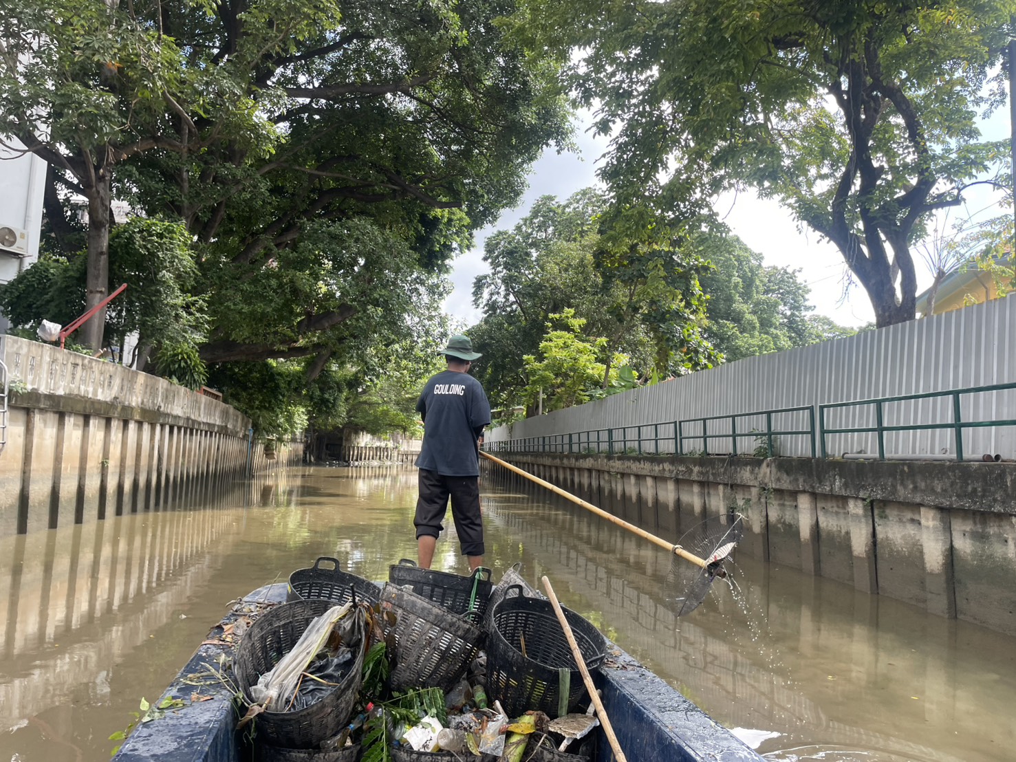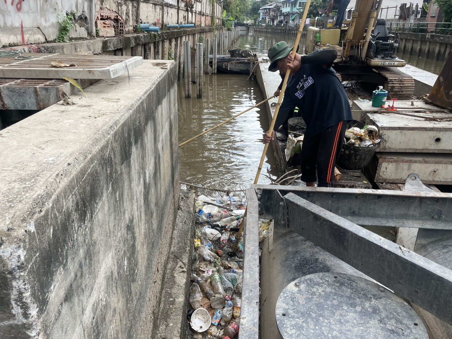 เจ้าหน้าที่ ตักขยะกำจัดวัชพืชคลองสามเสน เขตดุสิต