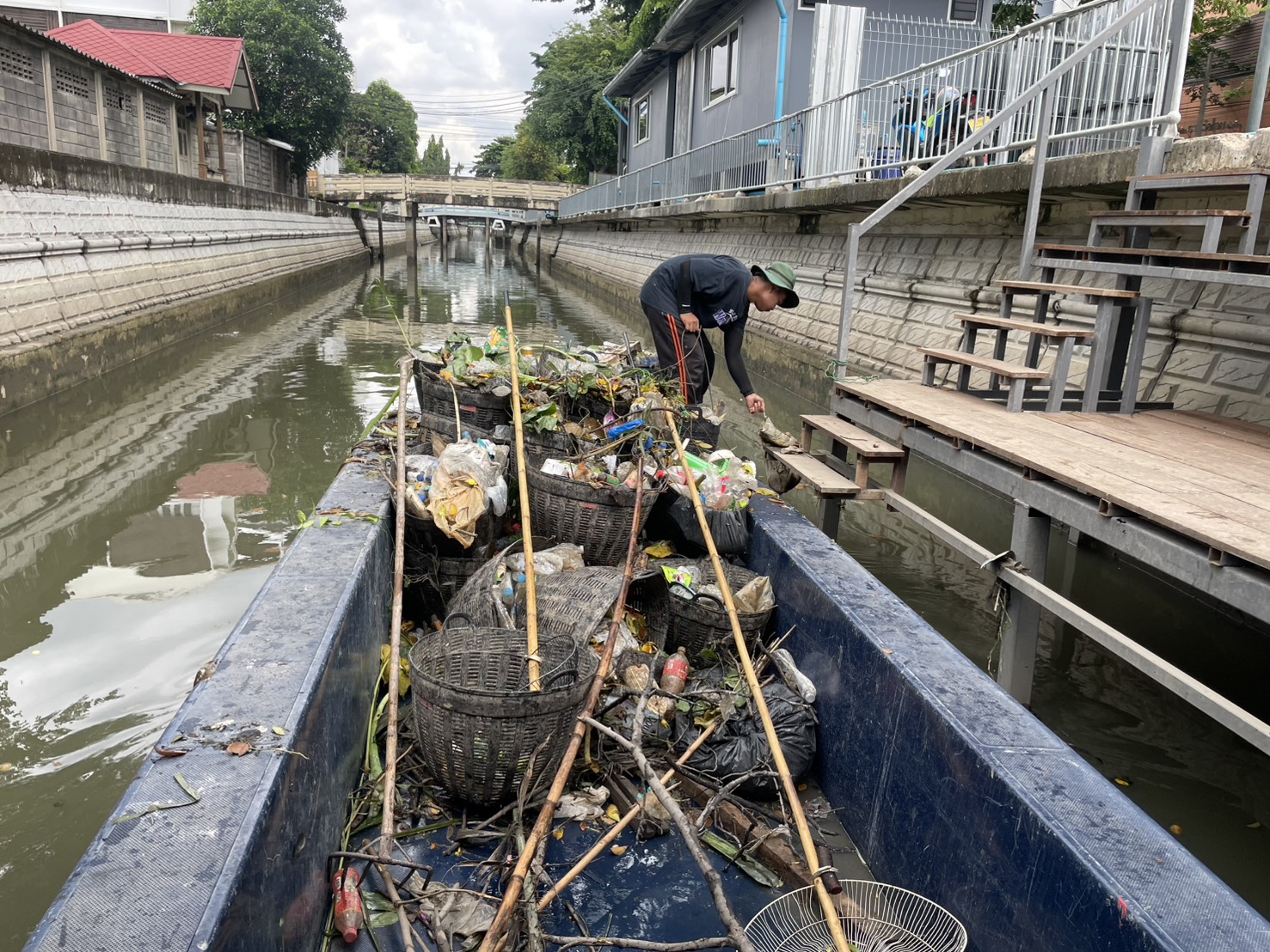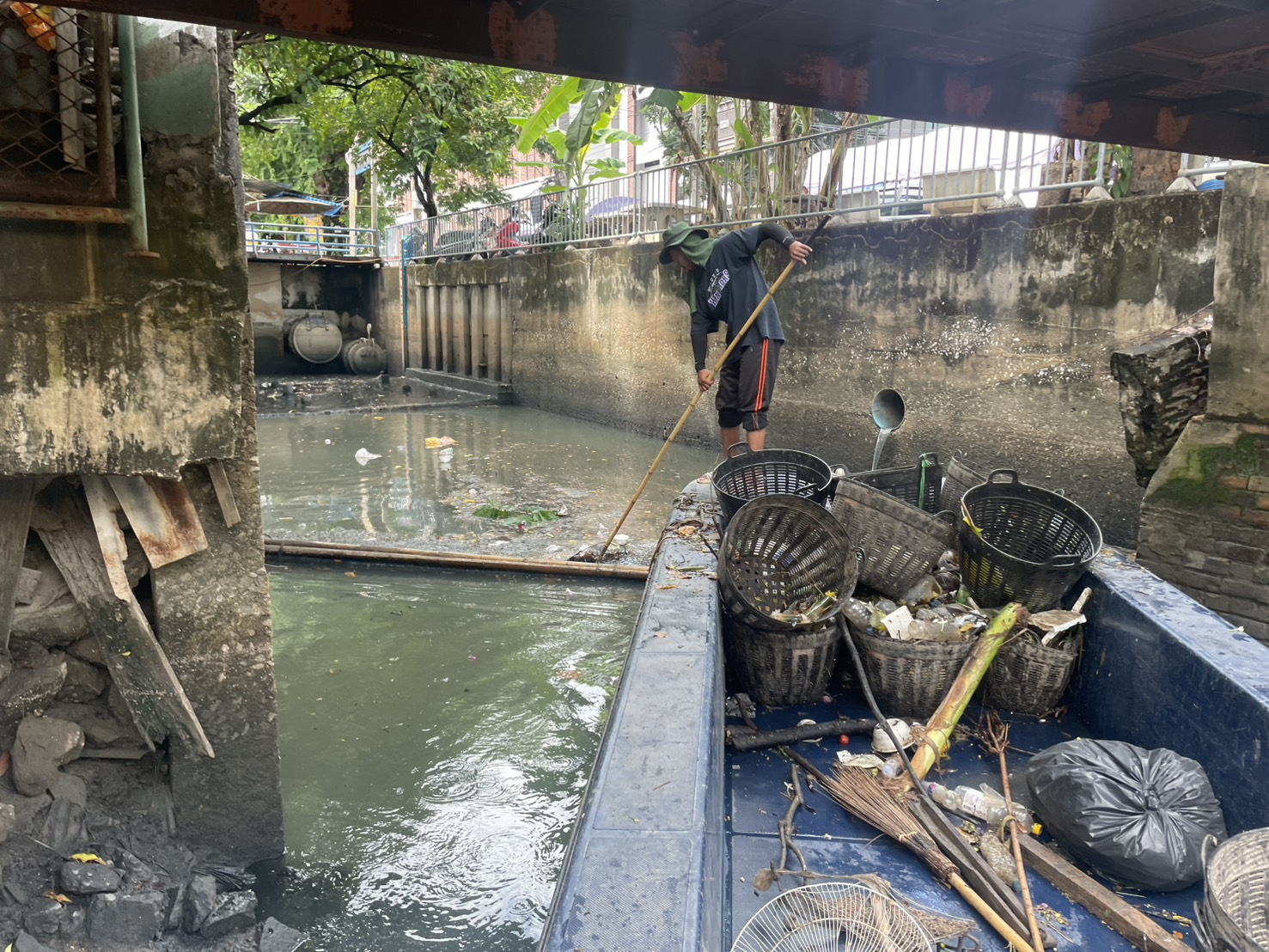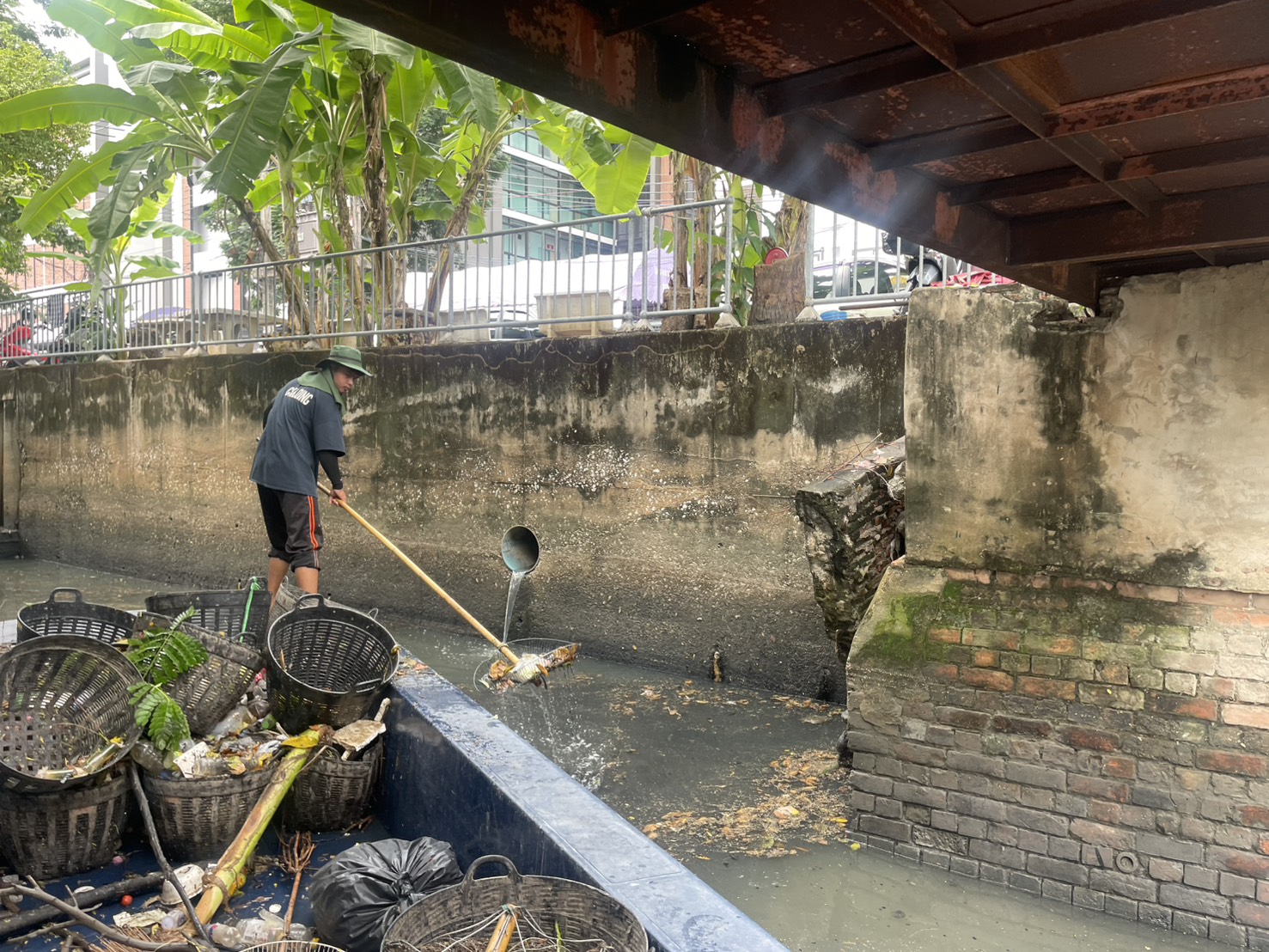 เจ้าหน้าที่ ตักขยะกำจัดวัชพืชคลองสามเสน เขตดุสิต