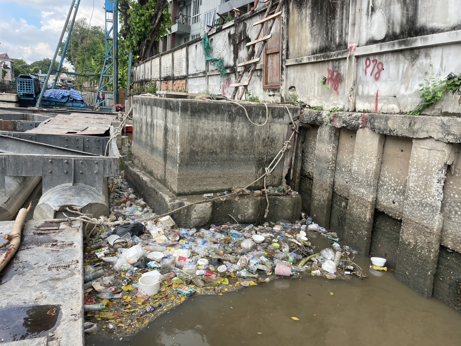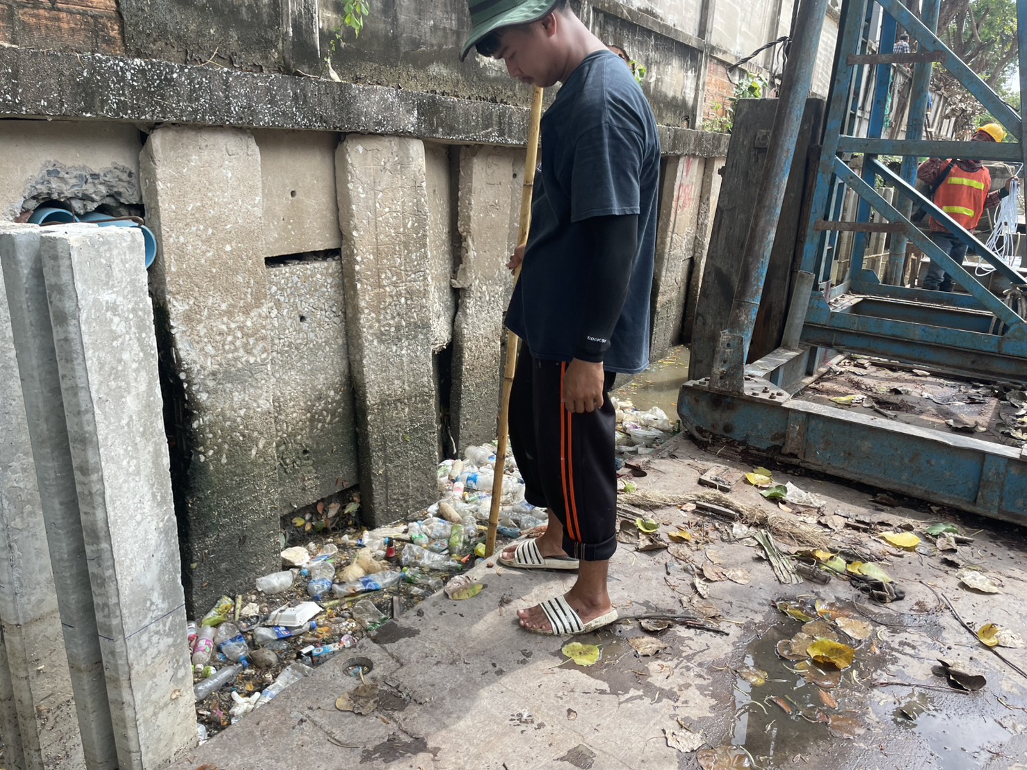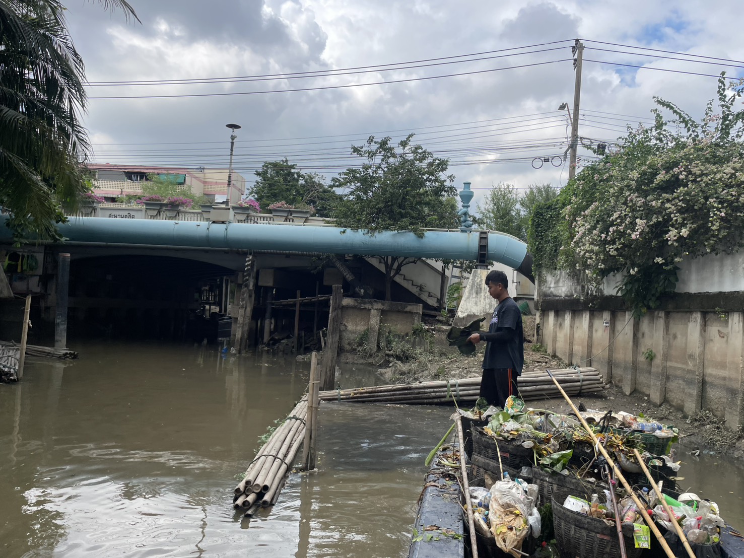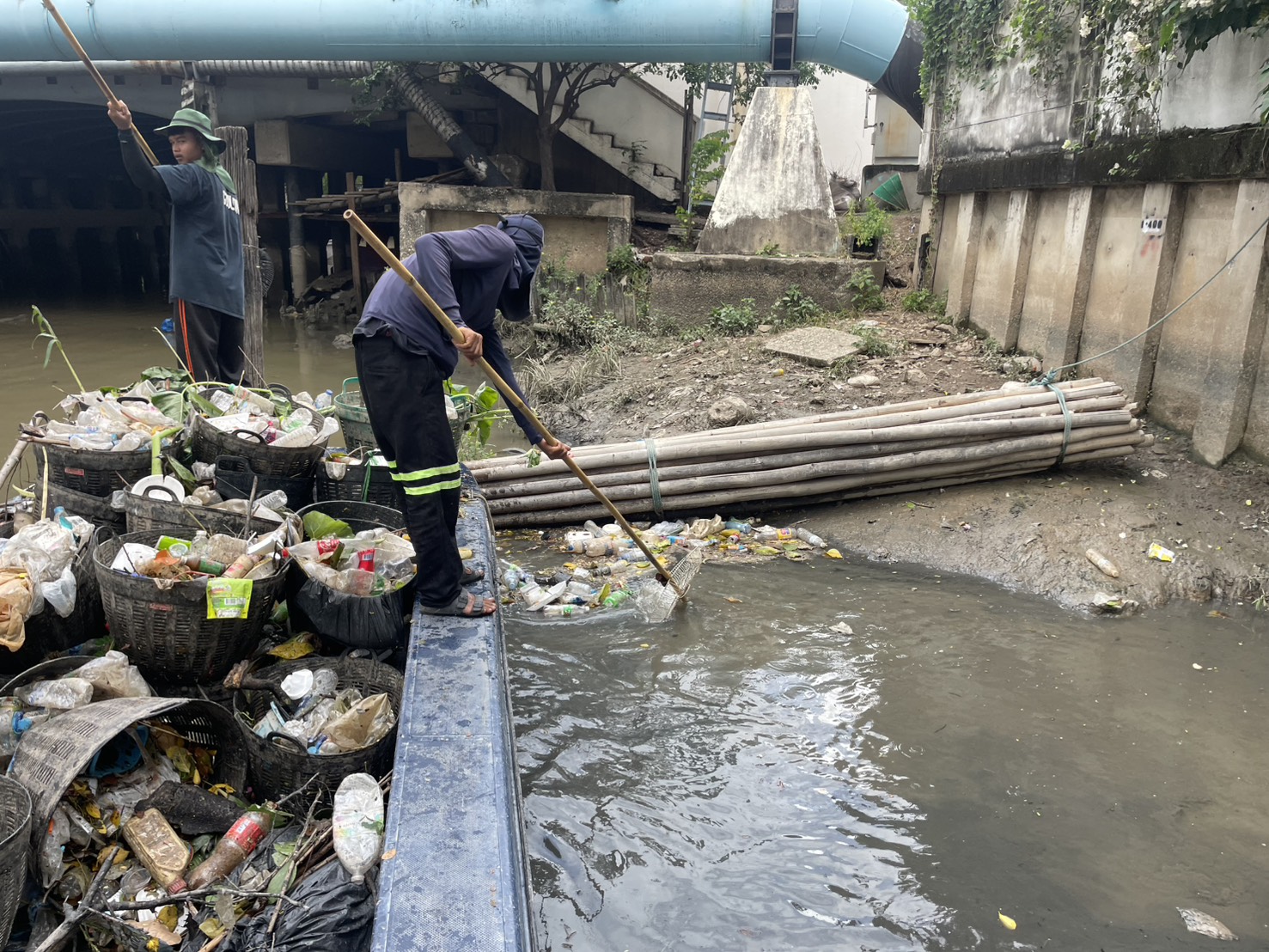 เจ้าหน้าที่ ตักขยะกำจัดวัชพืชคลองสามเสน เขตดุสิต