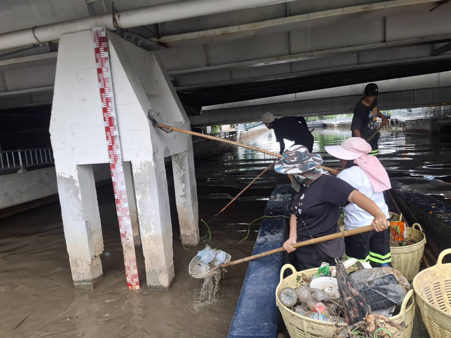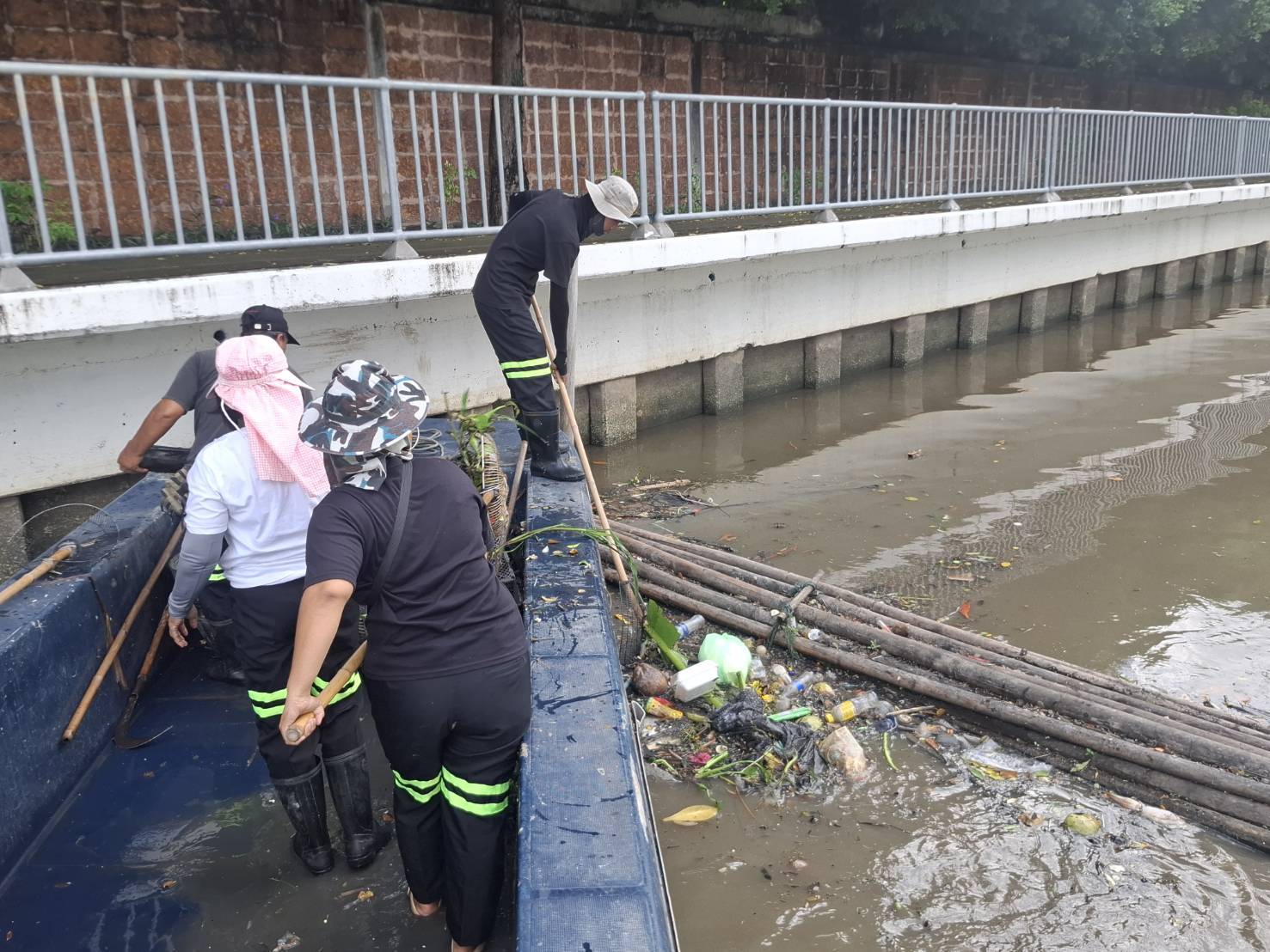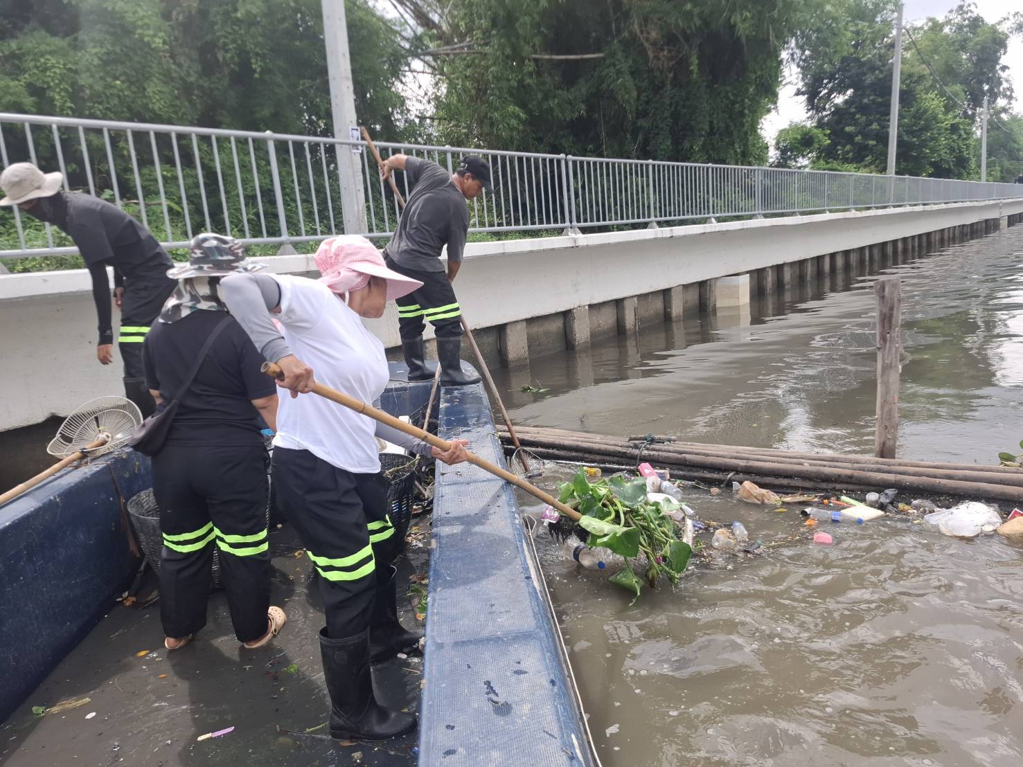 เจ้าหน้าที่ เก็บขยะและวัชพืชคลองเปรมประชากร ช่วงชุมชนตึกแดงบางซื่อเขตบางซื่อถึงสะพานงามวงศ์วานเขตจตุจักร
