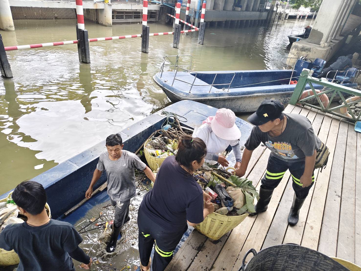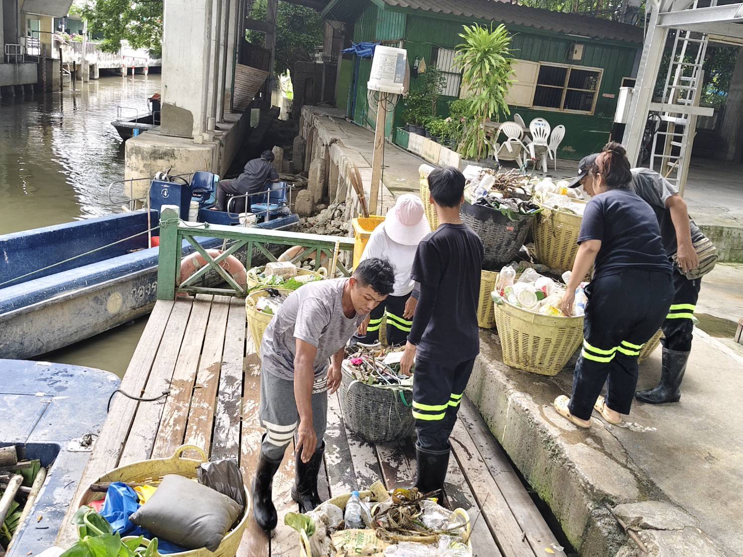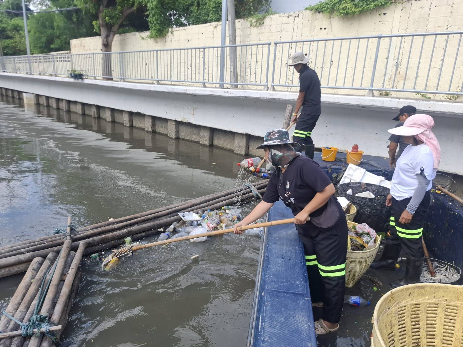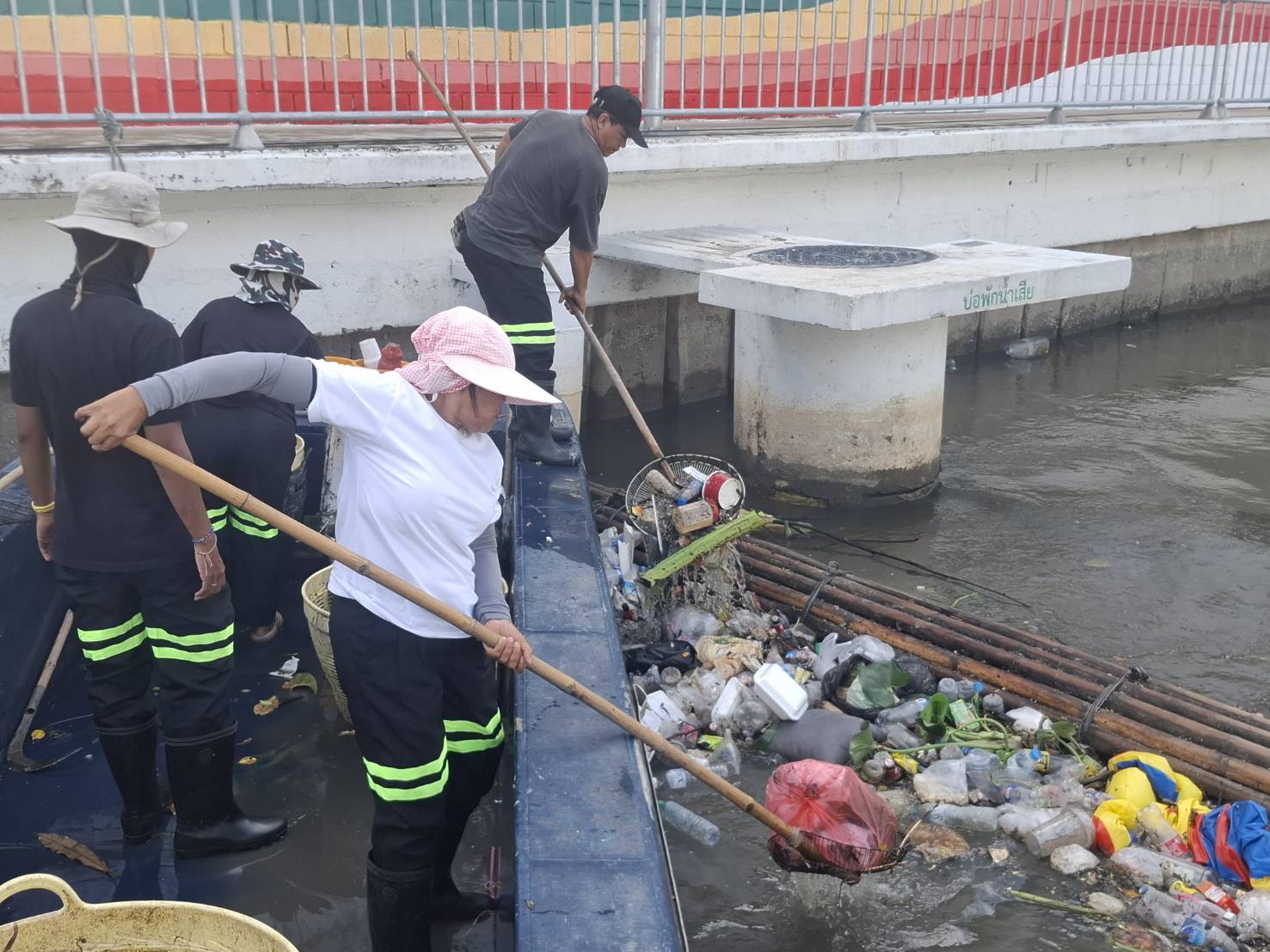 เจ้าหน้าที่ เก็บขยะและวัชพืชคลองเปรมประชากร ช่วงชุมชนตึกแดงบางซื่อเขตบางซื่อถึงสะพานงามวงศ์วานเขตจตุจักร