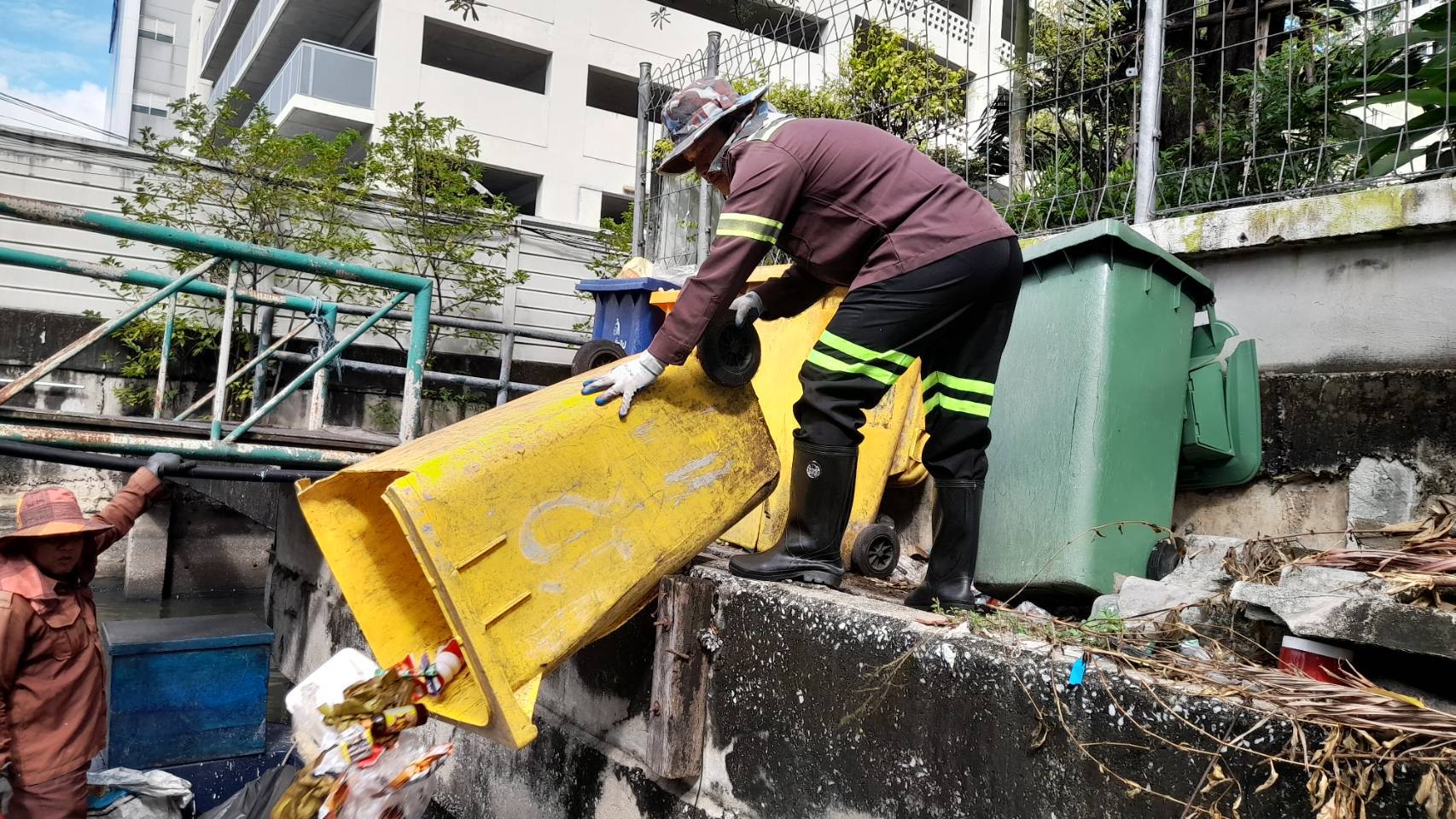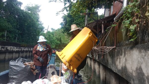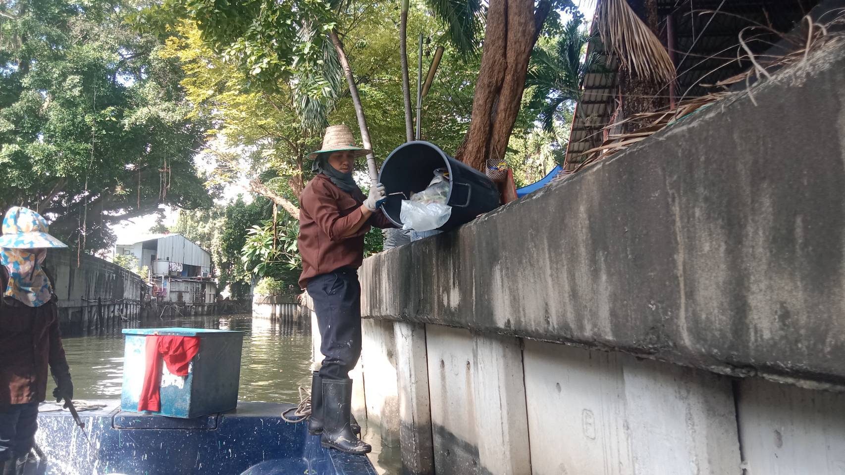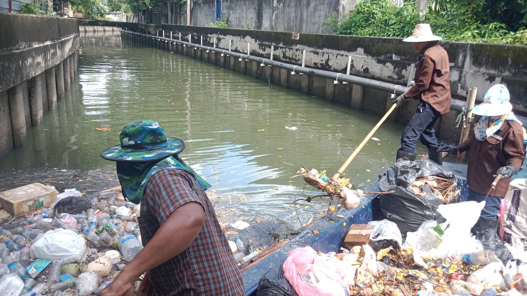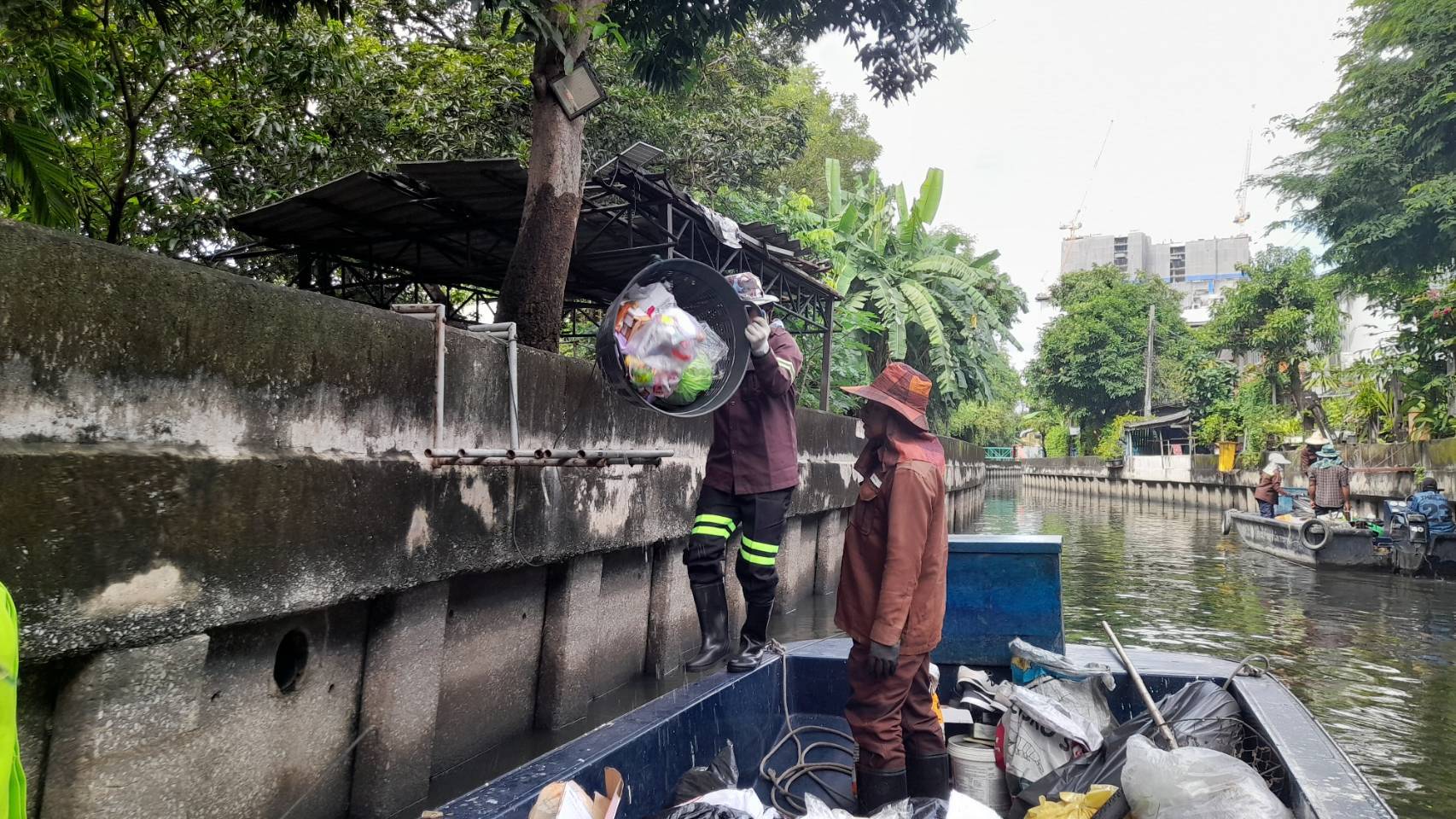 เจ้าหน้าที่ เก็บขยะแนวสันเขื่อนและตักขยะในคลองสามเสน เขตห้วยขวาง เขตดินแดงและเขตราชเทวี