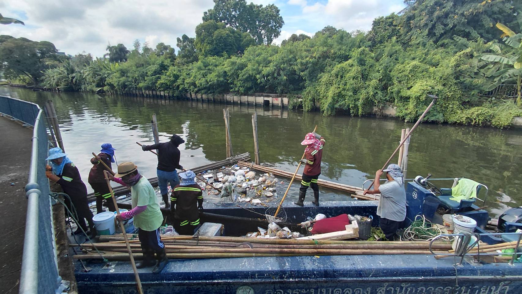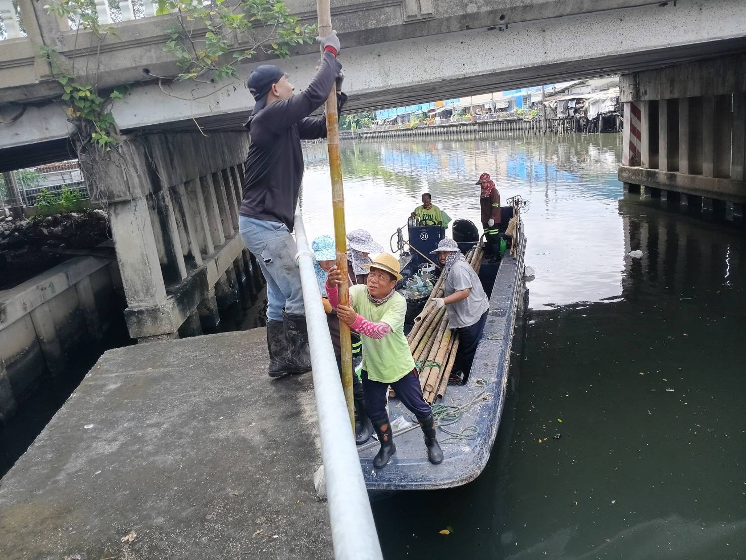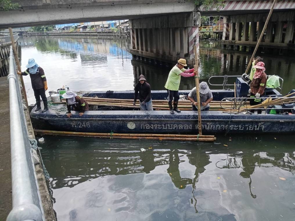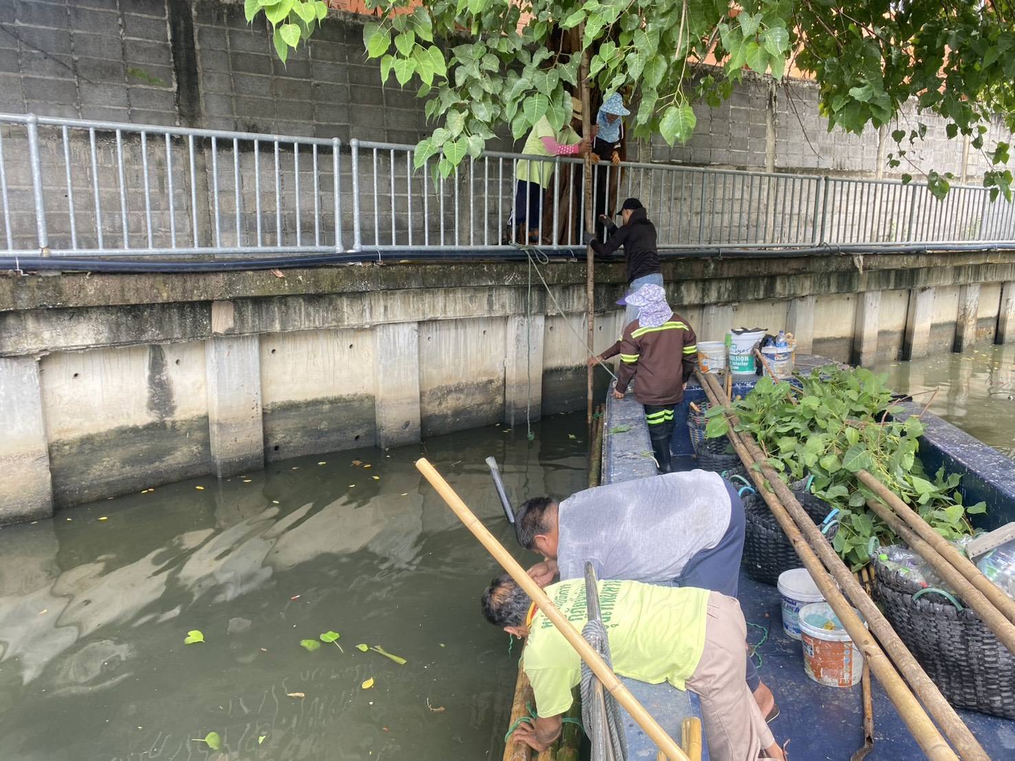 เจ้าหน้าที่ เก็บขยะและวัชพืช คลองลาดพร้าว พื้นที่เขตวังทองหลาง และเขตห้วยขวาง