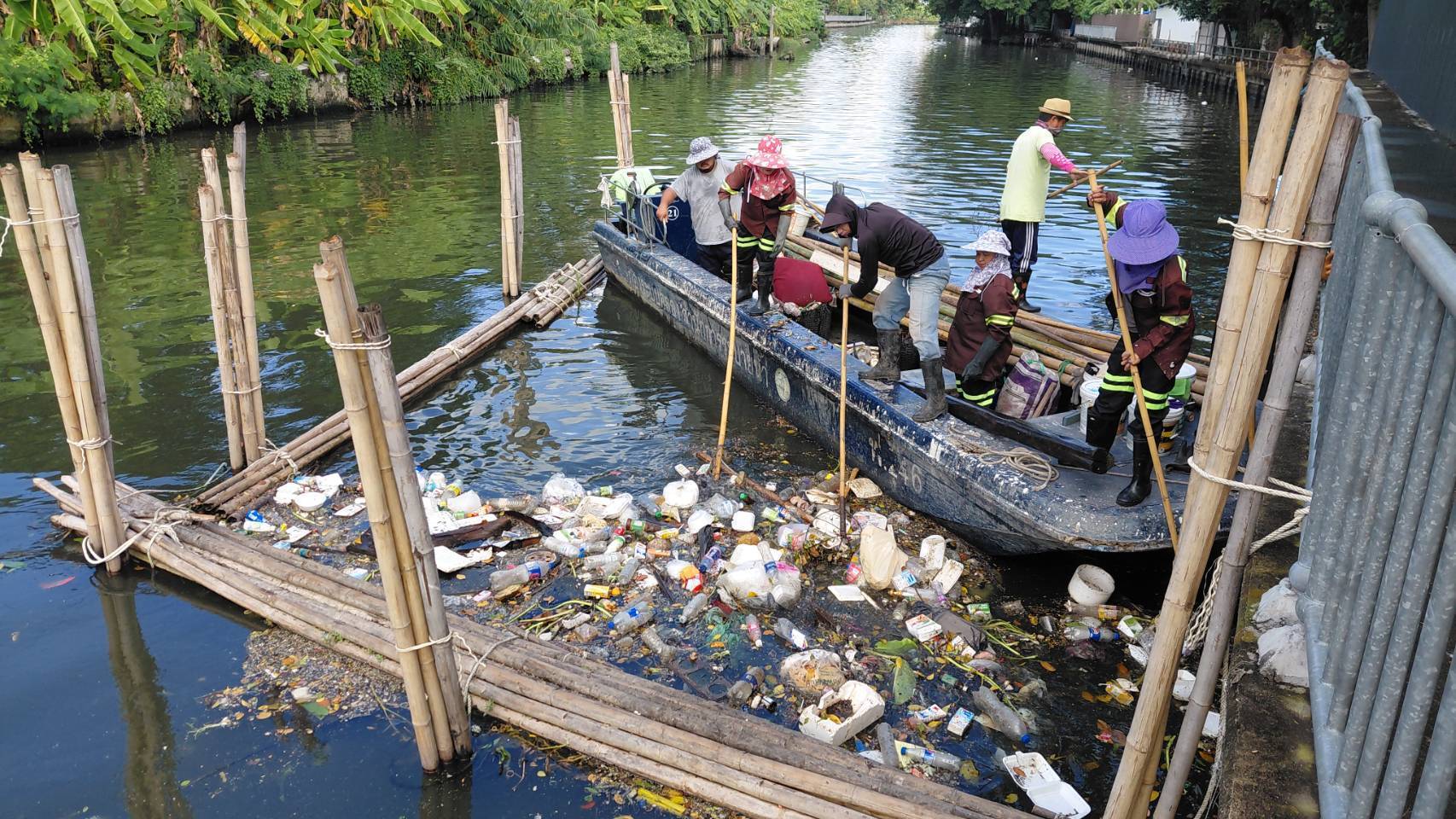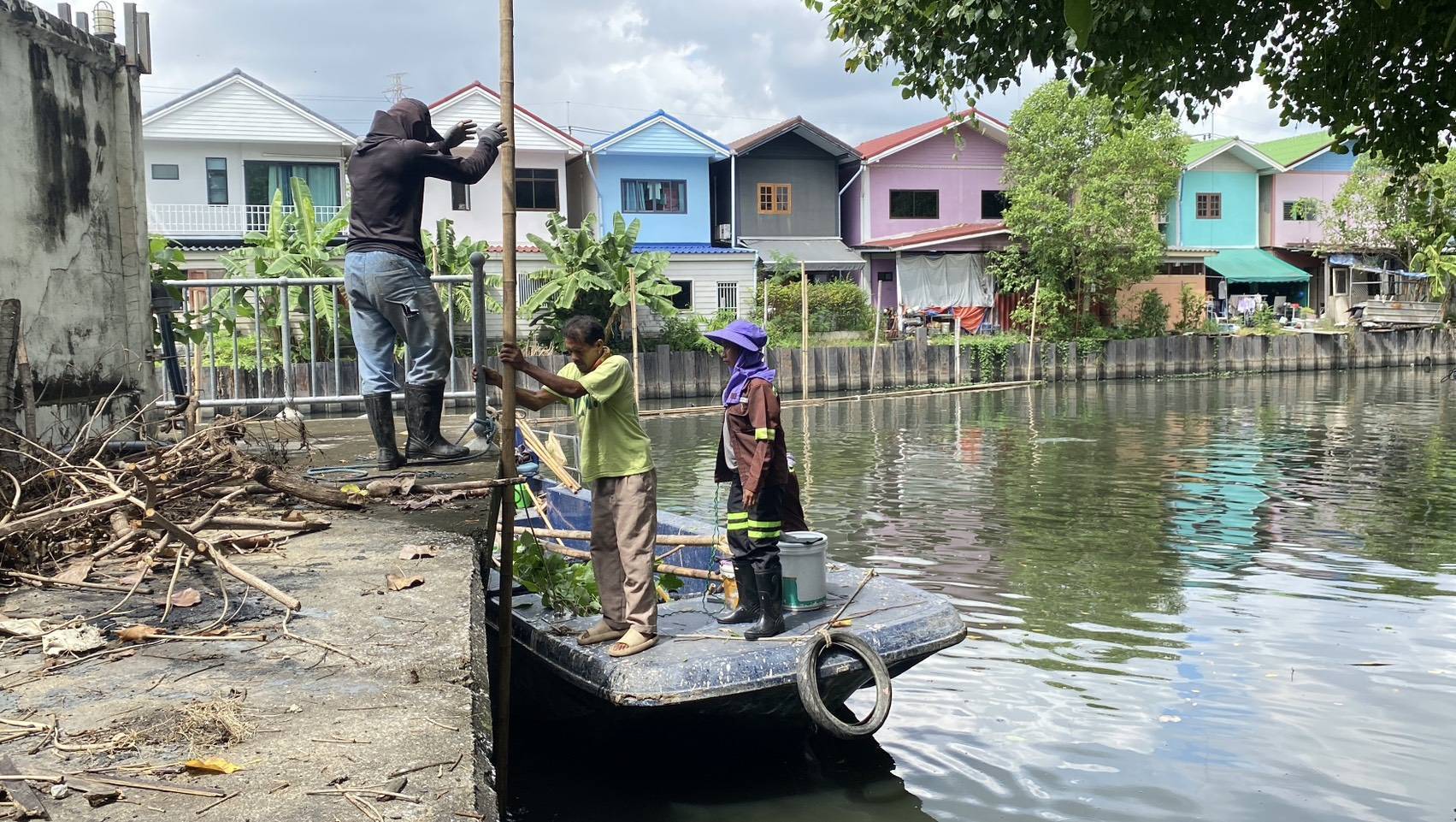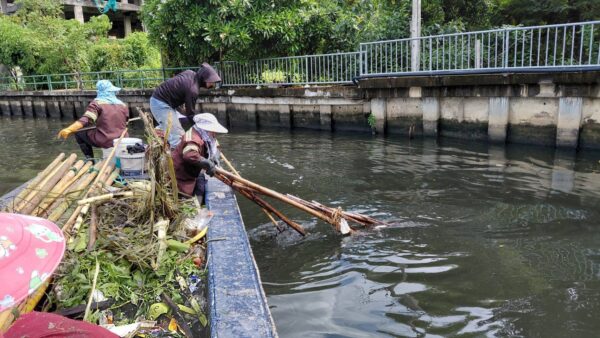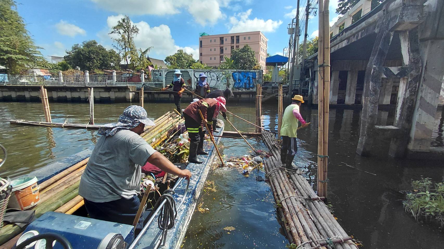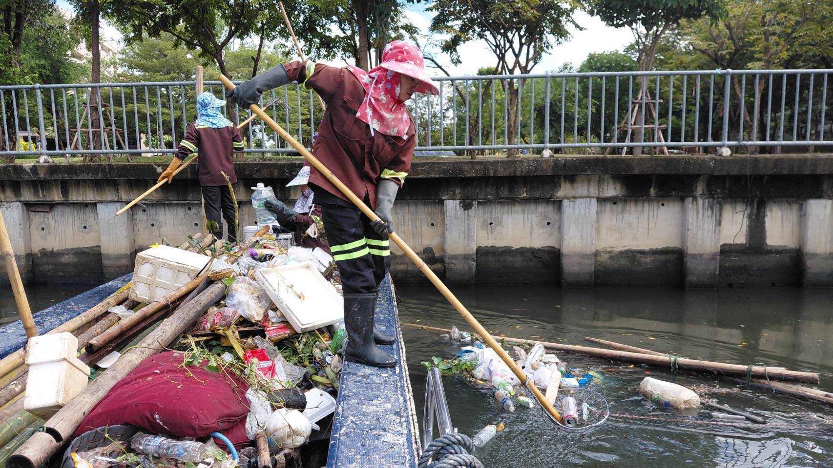 เจ้าหน้าที่ เก็บขยะและวัชพืช คลองลาดพร้าว พื้นที่เขตวังทองหลาง และเขตห้วยขวาง