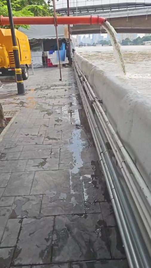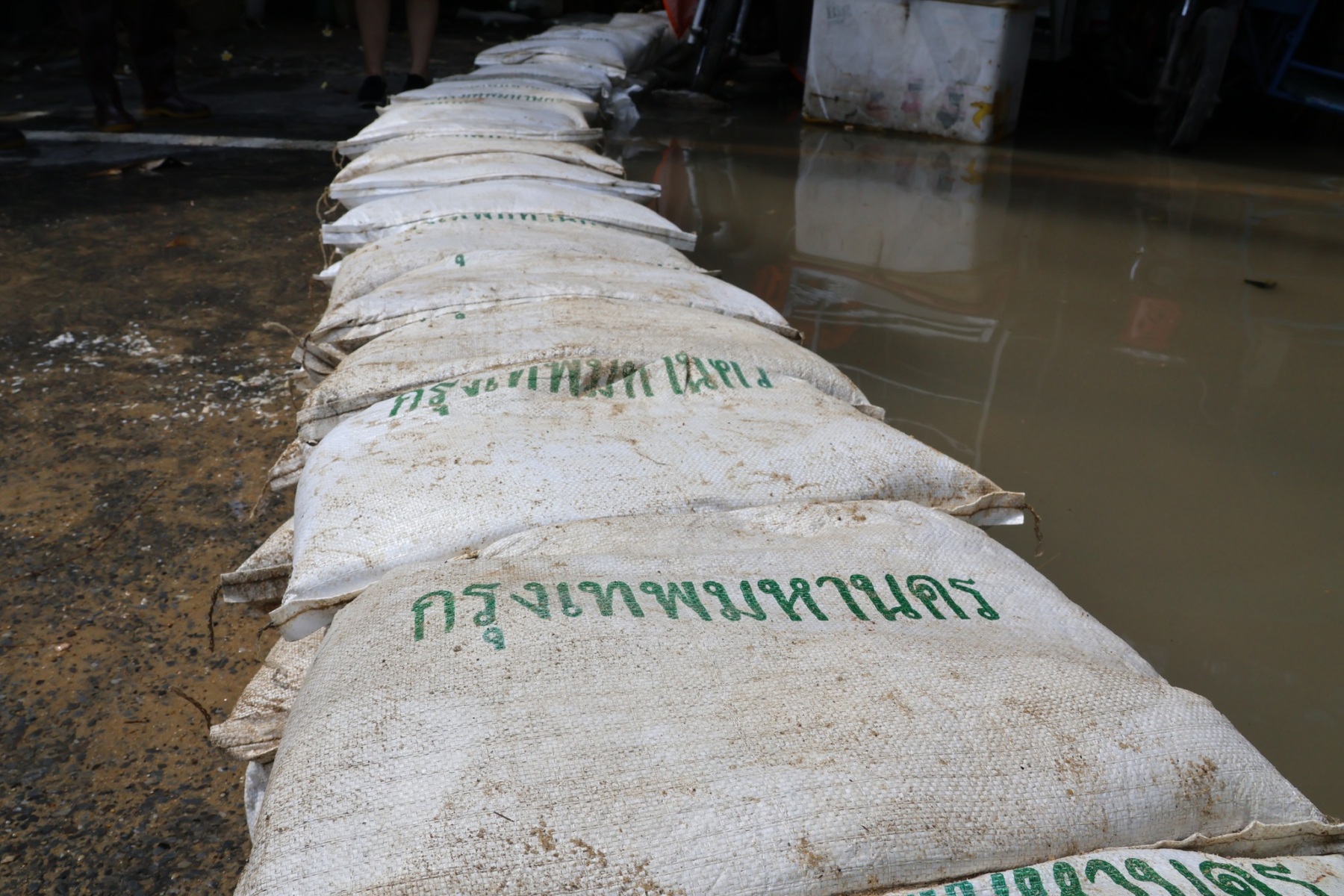 ทั้งนี้ สำนักการระบายน้ำและสำนักงานเขต ได้เรียงกระสอบทรายป้องกันน้ำทะเลหนุนและน้ำเหนือหลากแล้วเสร็จ 100% โดยมีระดับความสูง +2.40 ถึง +2.70 ม.รทก. พร้อมดูแลแนวป้องกันที่อยู่ระหว่างการก่อสร้างและแนวฟันหลอให้สามารถใช้งานได้ในภาวะฉุกเฉิน