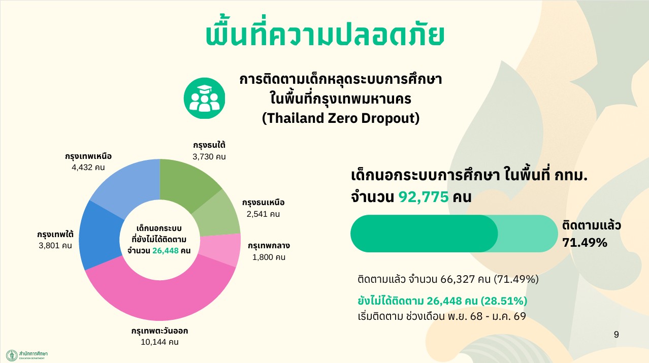 (11 พ.ย. 68) เวลา 09.30 น. นางสาวอรัญญา พรไชยะ รองปลัดกรุงเทพมหานคร ประธานการประชุมกำกับติดตามภารกิจของสำนักการศึกษา ณ ห้องศิรินาม ชั้น 3 สำนักการศึกษา เขตคลองสาน ในที่ประชุม นางสาวพิศมัย เรืองศิลป์ ผู้อำนวยการสำนักการศึกษา พร้อมด้วยหัวหน้าส่วนราชการในสังกัด และเจ้าหน้าที่ ร่วมนำเสนอผลการดำเนินงานปี 2568 ที่ผ่านมา พร้อมเสนอโครงการในปี 2569 – 2570 และความก้าวหน้าของการดำเนินโครงการต่างๆ โดยเน้นเด็กเป็นศูนย์กลาง การใช้ประโยชน์จากเทคโนโลยีเพื่อพัฒนาเด็กรอบด้าน ส่งเสริมการเรียนรู้ เรียนเล่นตามความสนใจในแต่ละช่วงอายุ เพื่อการเจริญเติบโตเต็มศักยภาพ และส่งเสริมพัฒนาการของเด็กอย่างมีประสิทธิภาพ