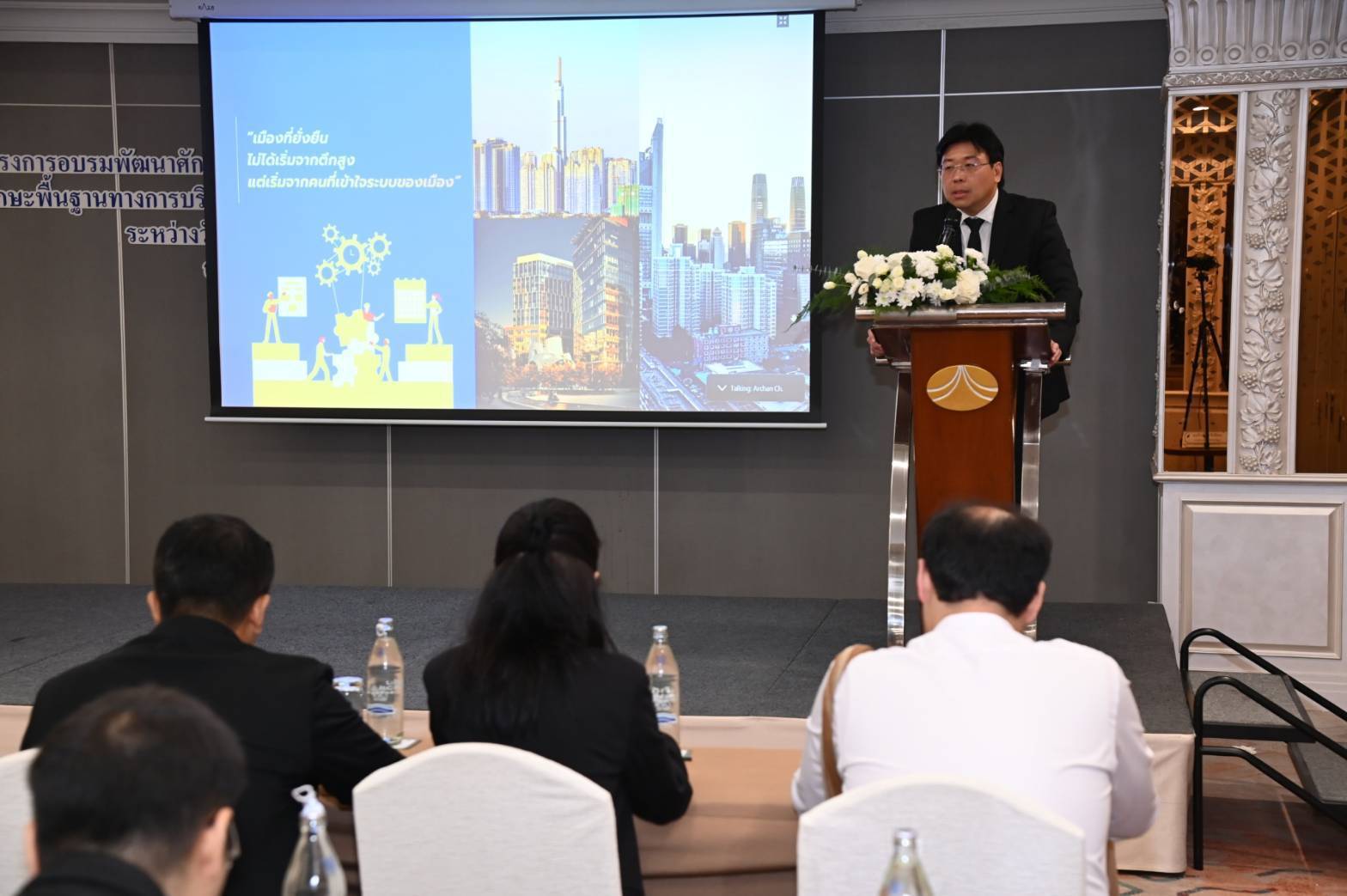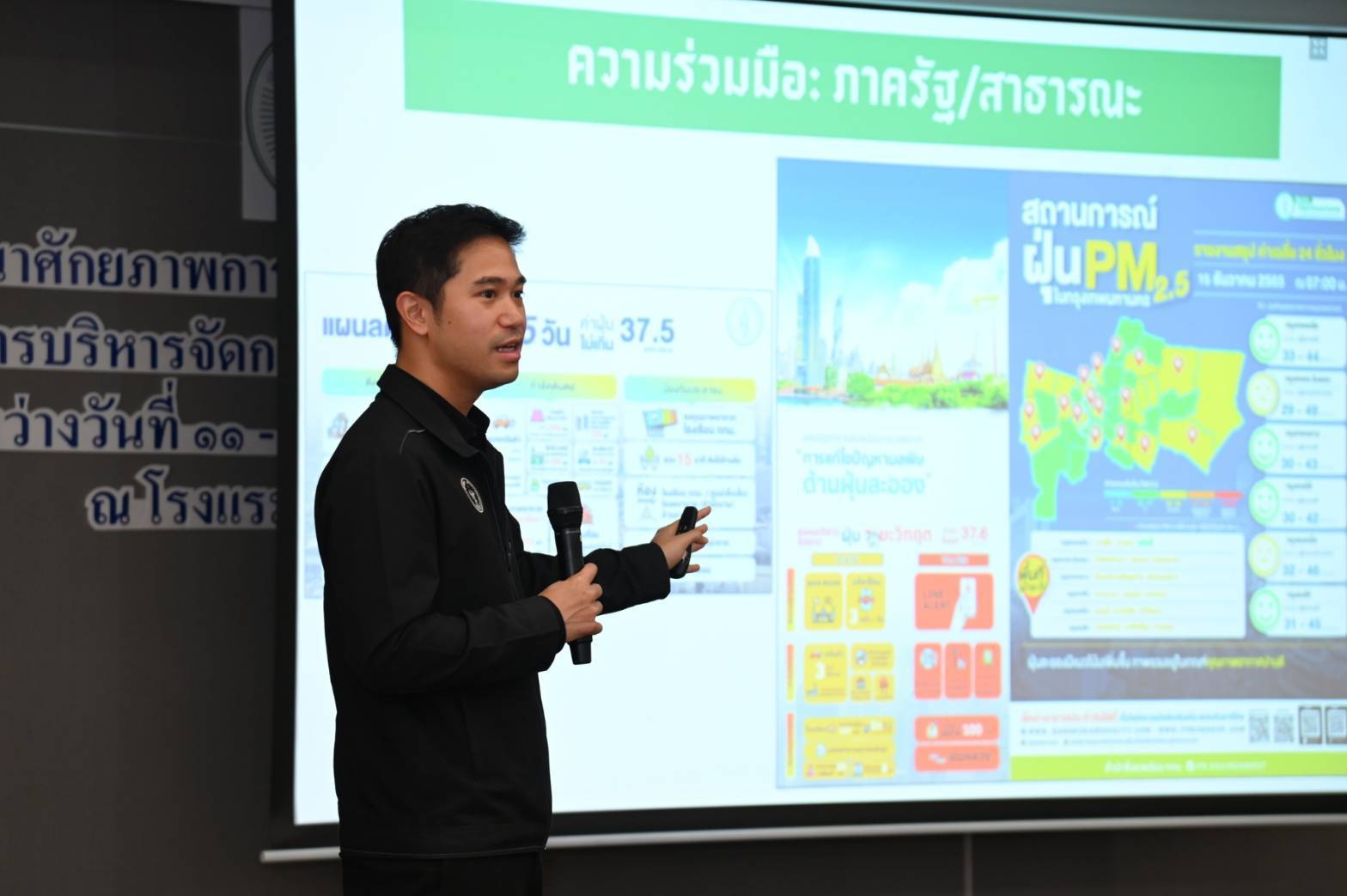 ที่ปรึกษาฯ ผู้ว่าฯ กทม. กล่าวปาฐกถาเกี่ยวกับบทบาทของผู้บริหารด้านความยั่งยืนของกรุงเทพมหานคร โดย นำเสนอแผนความยั่งยืนของกรุงเทพฯ 8 ด้าน ประกอบด้วย 1.ด้านขยะ ได้แก่ การแยกขยะและเศรษฐกิจหมุนเวียน ระบบการจัดเก็บและสุขาภิบาล และการกำจัดและการใช้ประโยชน์ของขยะ 2. ด้านคุณภาพอากาศ ได้แก่ ติดตามและเฝ้าระวัง ลดมลพิษจากแหล่งกำเนิด และป้องกันสุขภาพ 3. ด้านพื้นที่สีเขียว ได้แก่ การเข้าถึงพื้นที่สีเขียวสาธารณะ พื้นที่ร่มเงาและการดูดซับคาร์บอน และการดูแลรักษาและอนุรักษ์ต้นไม้ใหญ่ 4. ด้านการรับมือต่อการเปลี่ยนแปลงสภาพภูมิอากาศ ได้แก่ ความร้อนเมือง (Urban Heat Island) สุขภาพ ท่องเที่ยว เกษตรกรรม อาหาร และระบบการแจ้งเตือน 5. ด้านพลังงาน ประกอบด้วย การส่งเสริมพลังงานทดแทน การใช้พลังงานอย่างมีประสิทธิภาพ และการอนุรักษ์พลังงาน 6. น้ำ ประกอบด้วย การเข้าถึงน้ำสะอาด การจัดการน้ำเสีย และการบริหารจัดการด้านการระบายน้ำ 7. ด้านการขนส่ง ได้แก่ การส่งเสริมขนส่งมวลชน การเปลี่ยนผ่านสู่ขนส่งสะอาด และการวางผัง และ 8. การบริหารจัดการและความร่วมมือ ได้แก่ การศึกษาด้านสิ่งแวดล้อม ความร่วมมือระหว่างภาครัฐและเอกชน และการจัดซื้อจัดจ้างสีเขียว โดยนอกจากความร่วมมือระหว่างหน่วยงานในกรุงเทพมหานครแล้ว ยังเน้นถึงการบูรณาการความร่วมมือจากทุกภาคส่วน ทั้งภาครัฐ ภาควิชาการ ภาคธุรกิจ และประชาชน ในการดูแลสิ่งแวดล้อมในกรุงเทพฯ