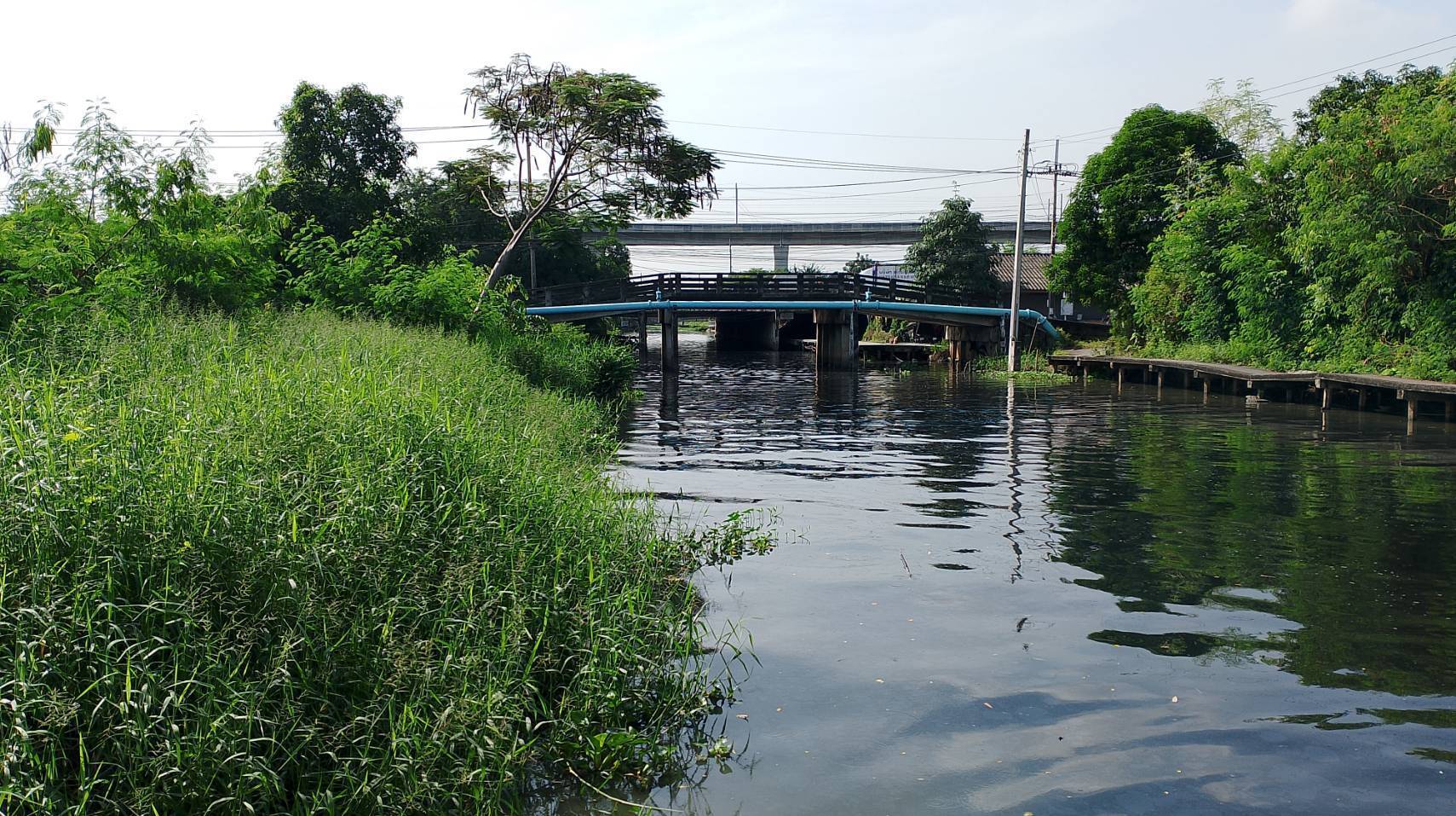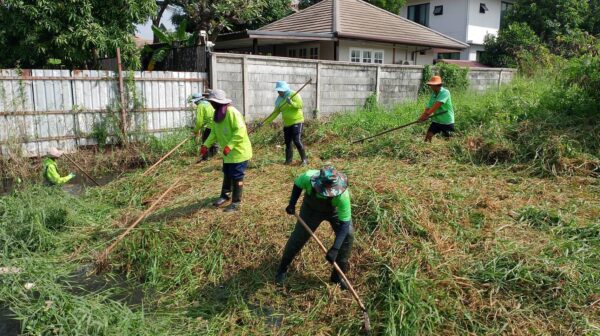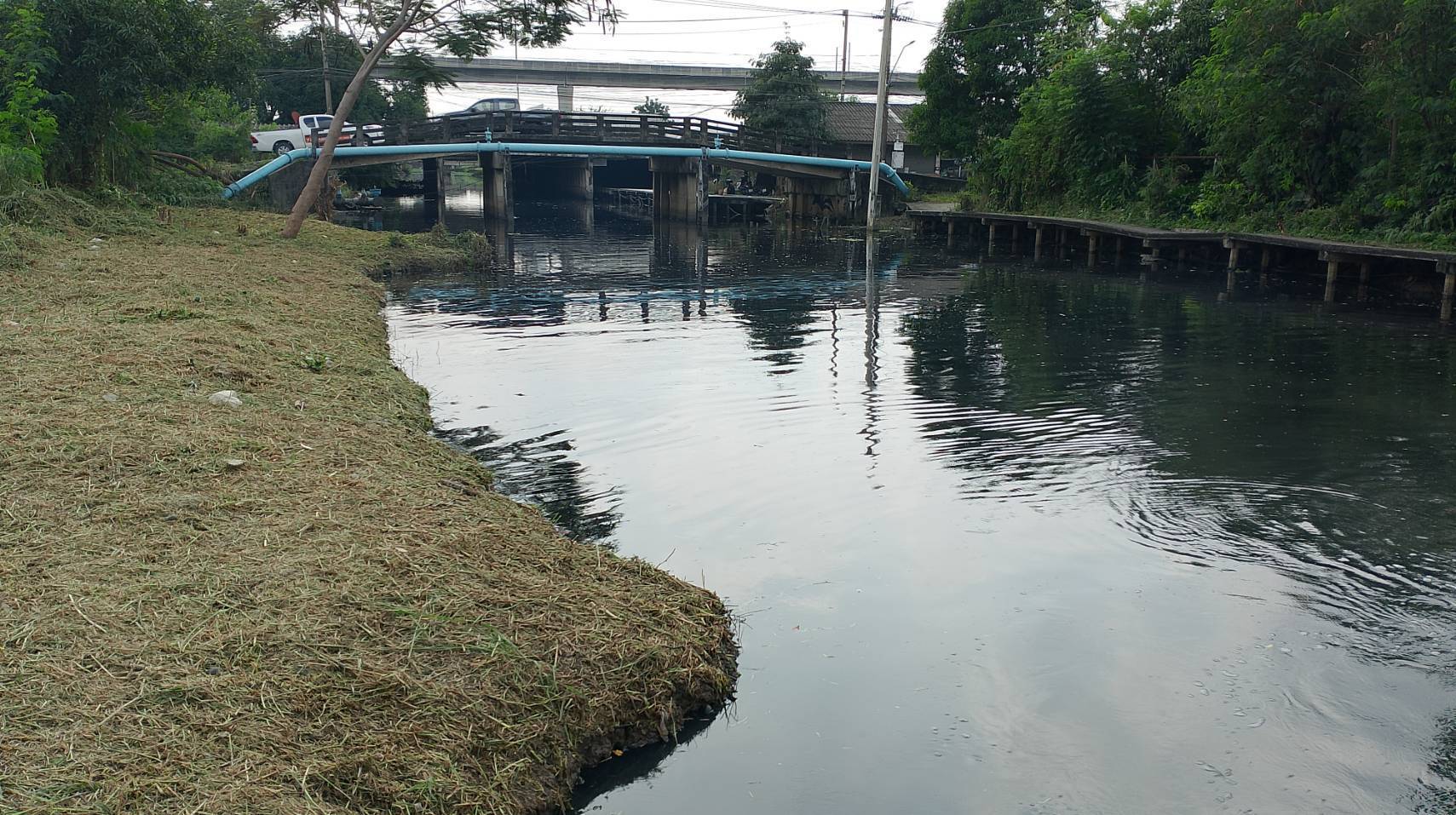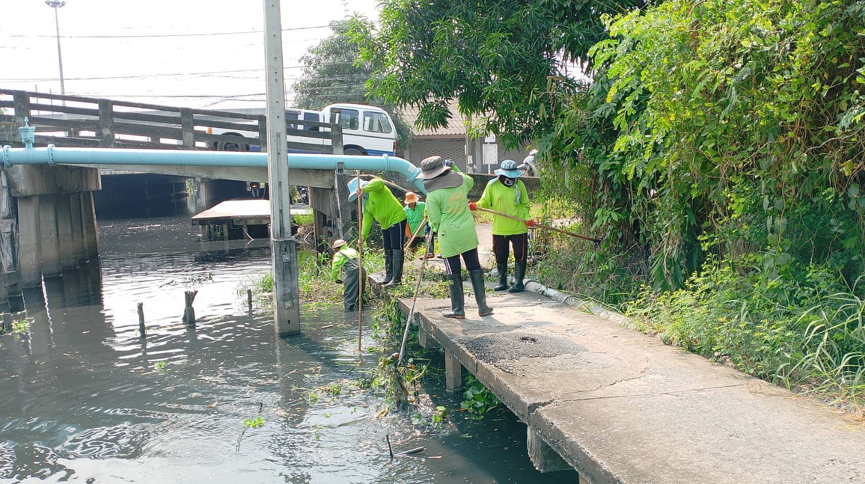 เจ้าหน้าที่ เก็บวัชพืชตัดหญ้าริมคลองหนึ่งมอเตอร์เวย์ เขตลาดกระบัง