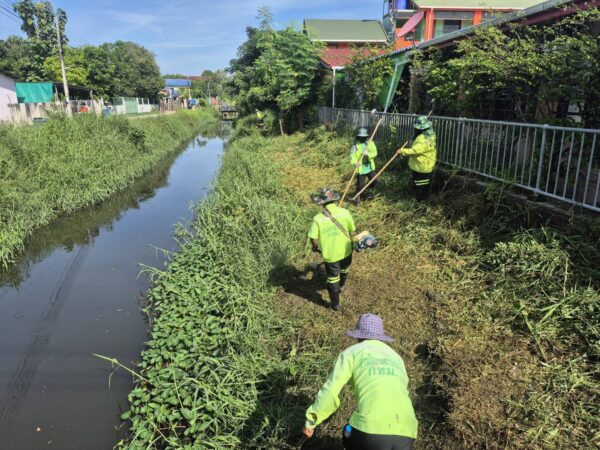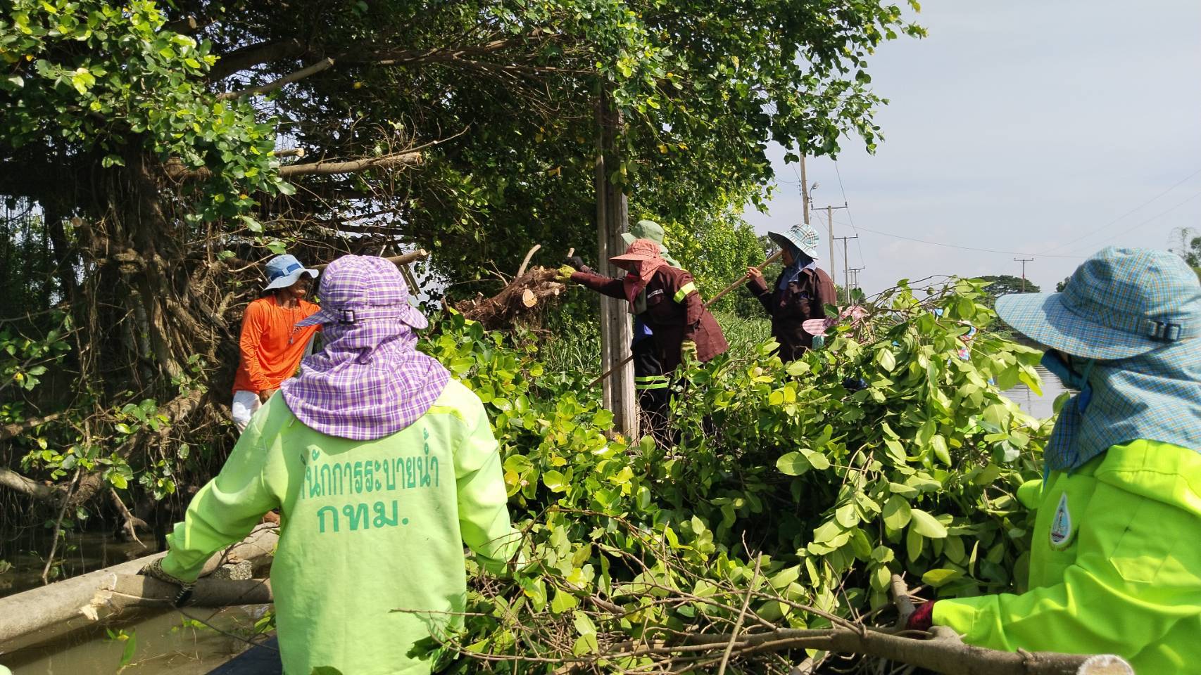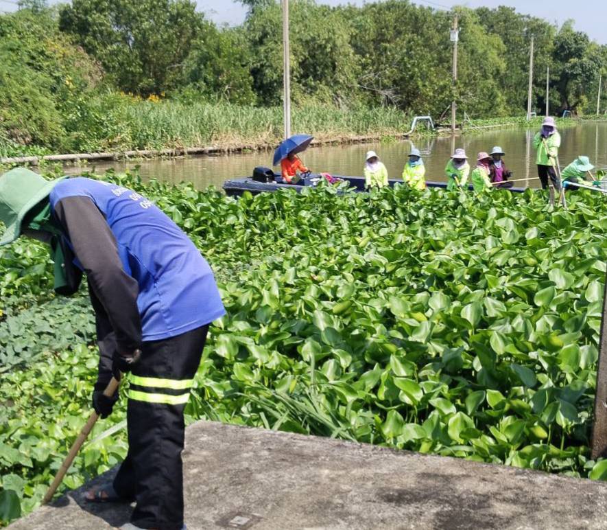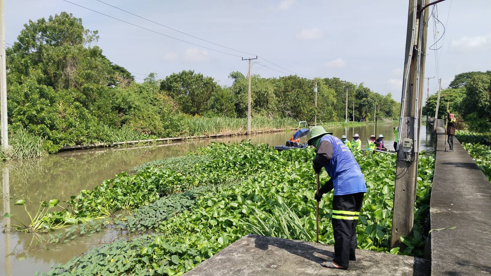 เจ้าหน้าที่ จัดเก็บวัชพืชคลองหลวงแพ่ง เขตลาดกระบัง