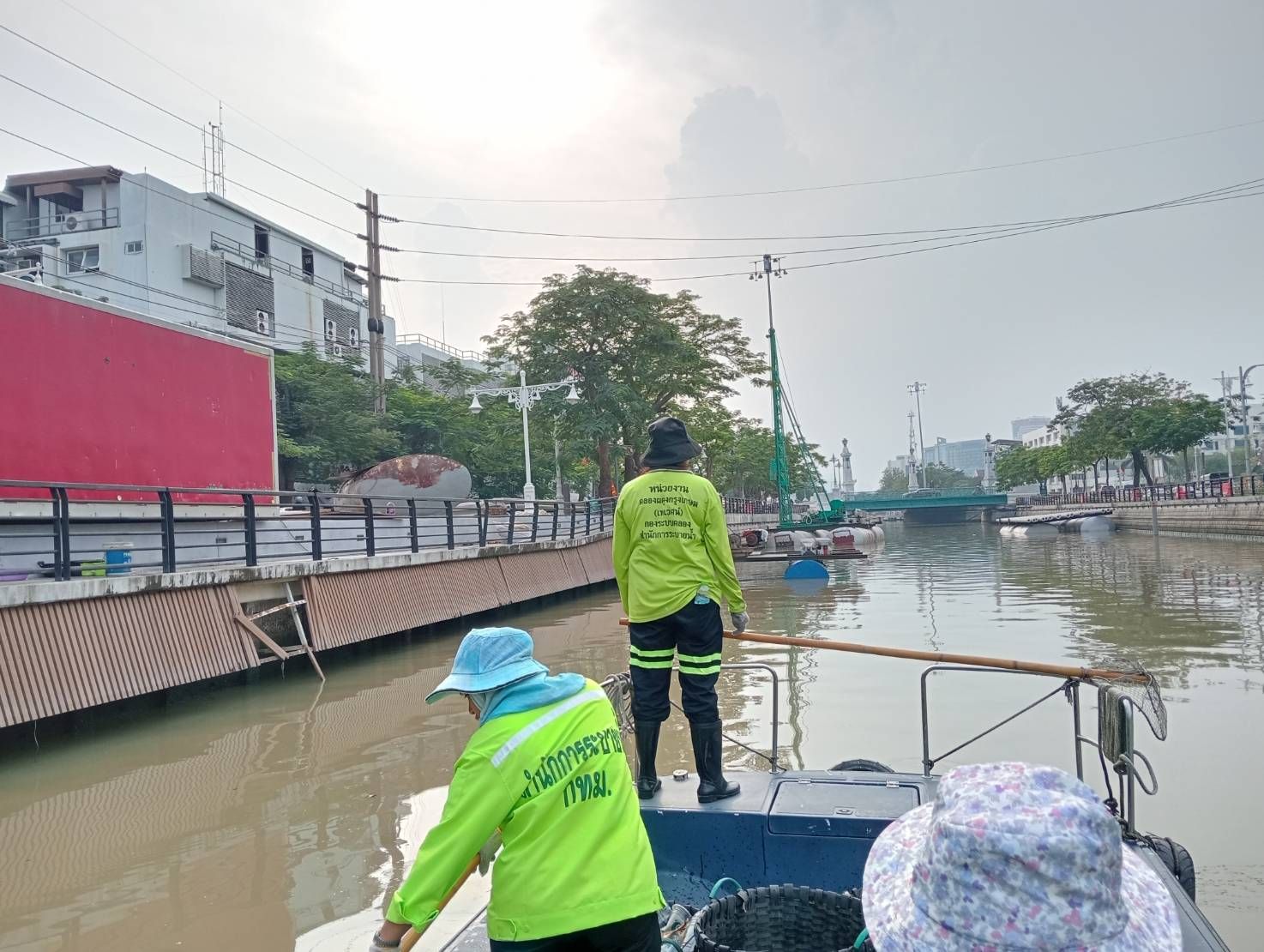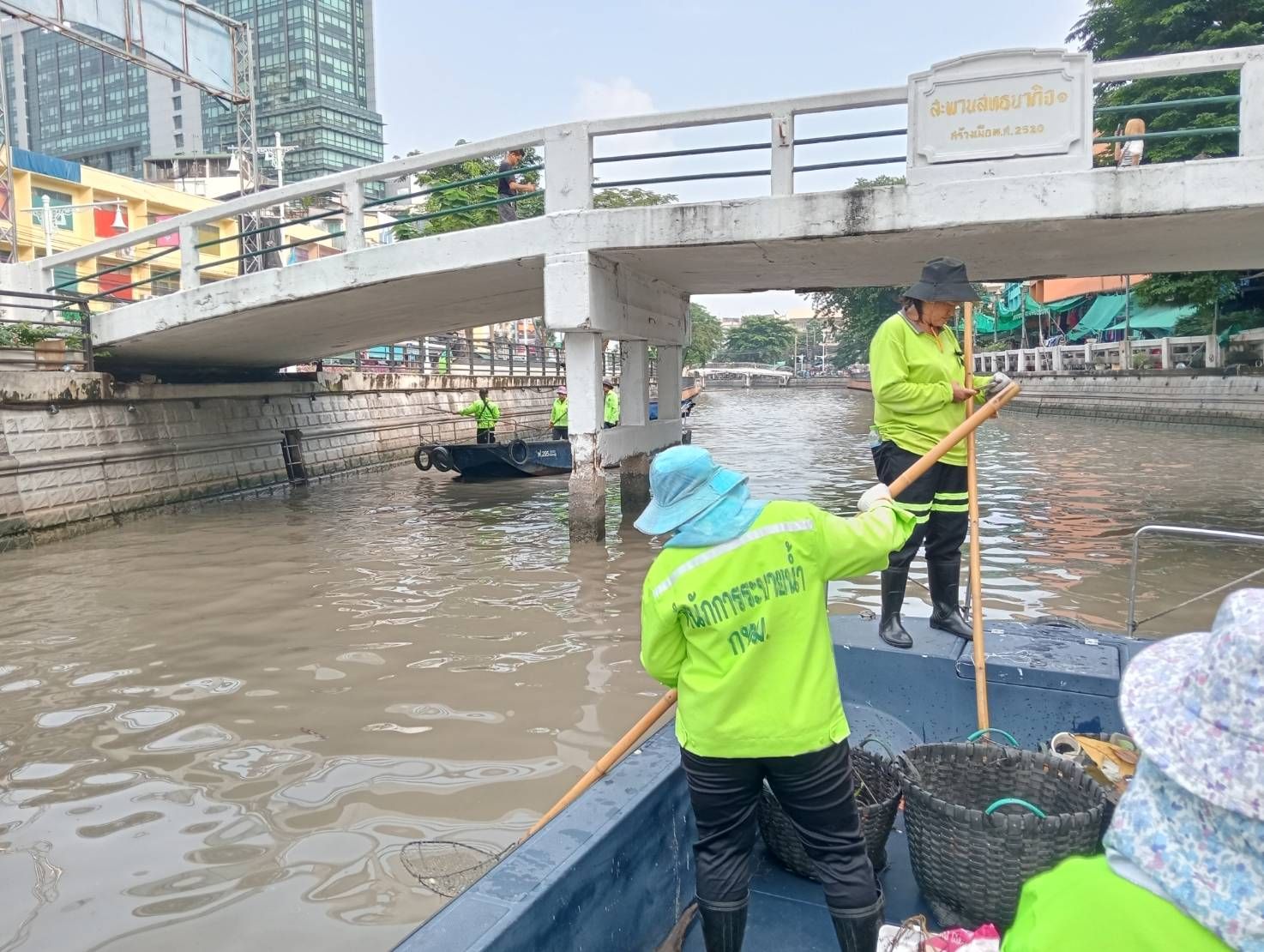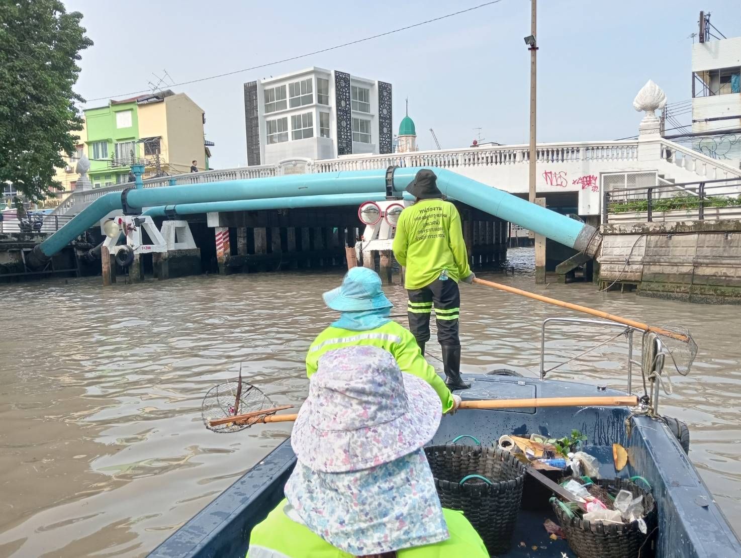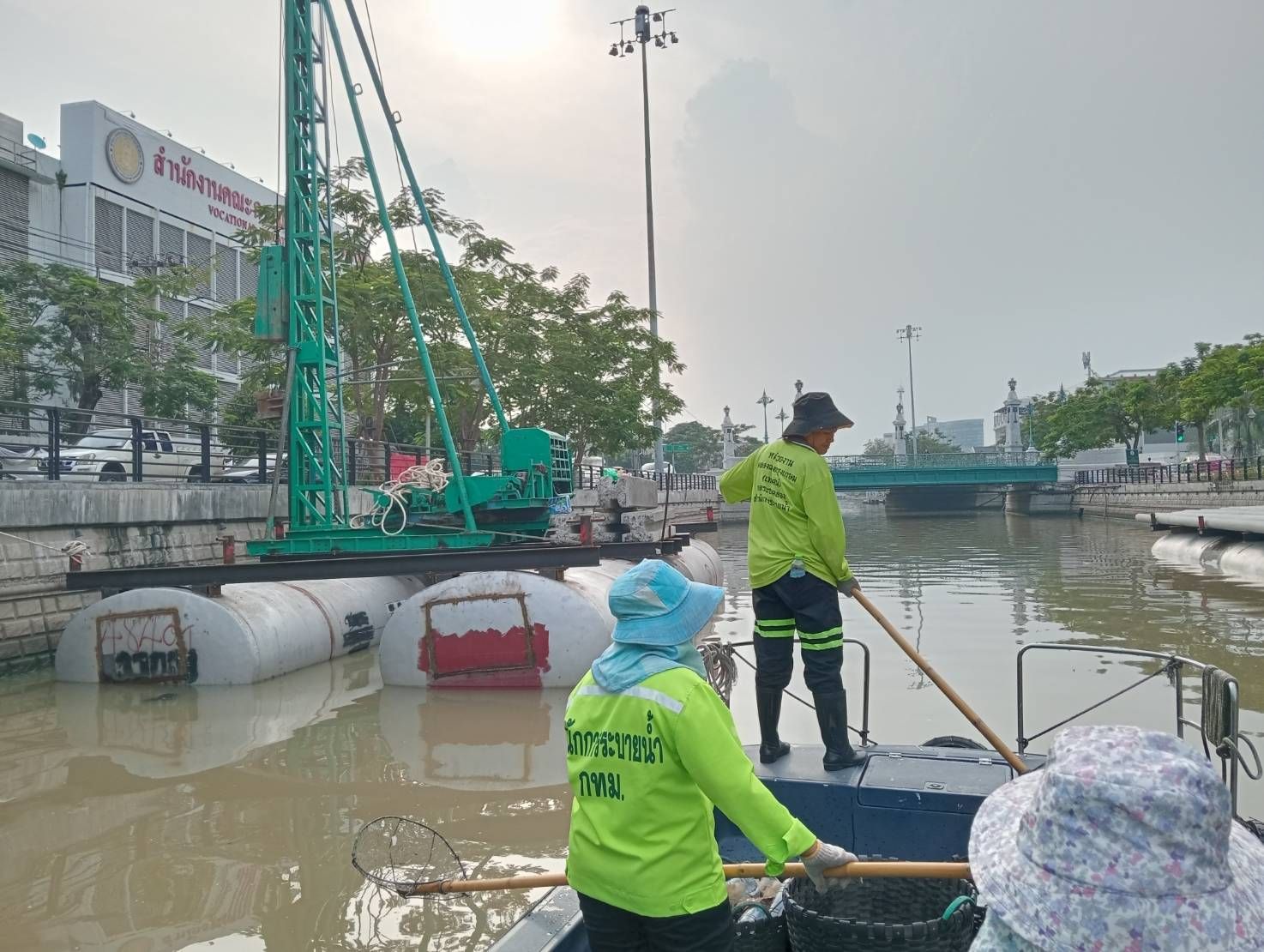 เจ้าหน้าที่ ตักเก็บขยะและวัชพืชจาก ปตร. เทเวศร์ตลอดช่วงสะพานมัฆวานถึงสี่แยกมหานาค พื้นที่เขตดุสิต เขตพระนคร เขตป้อมปราบศัตรูพ่าย