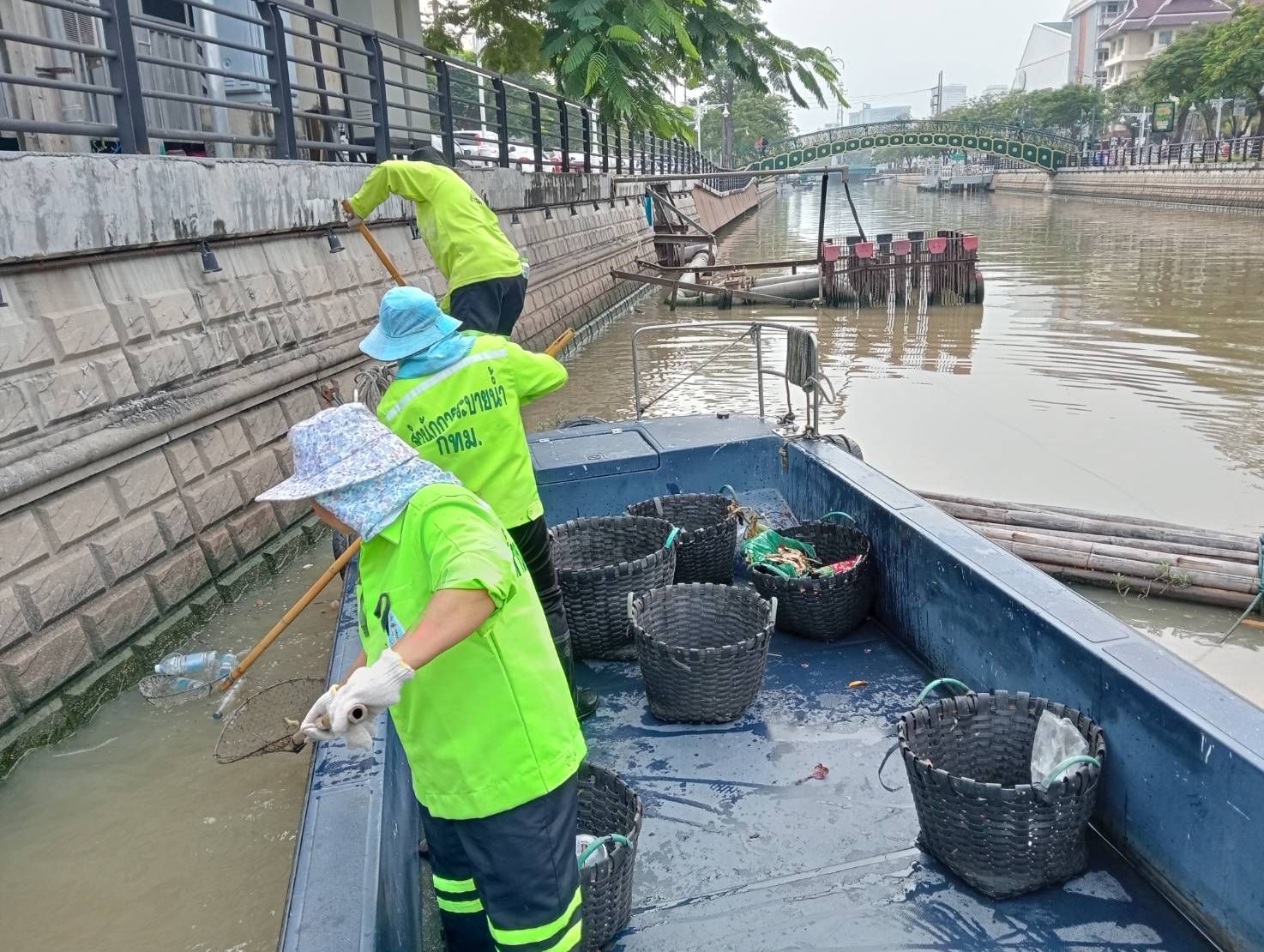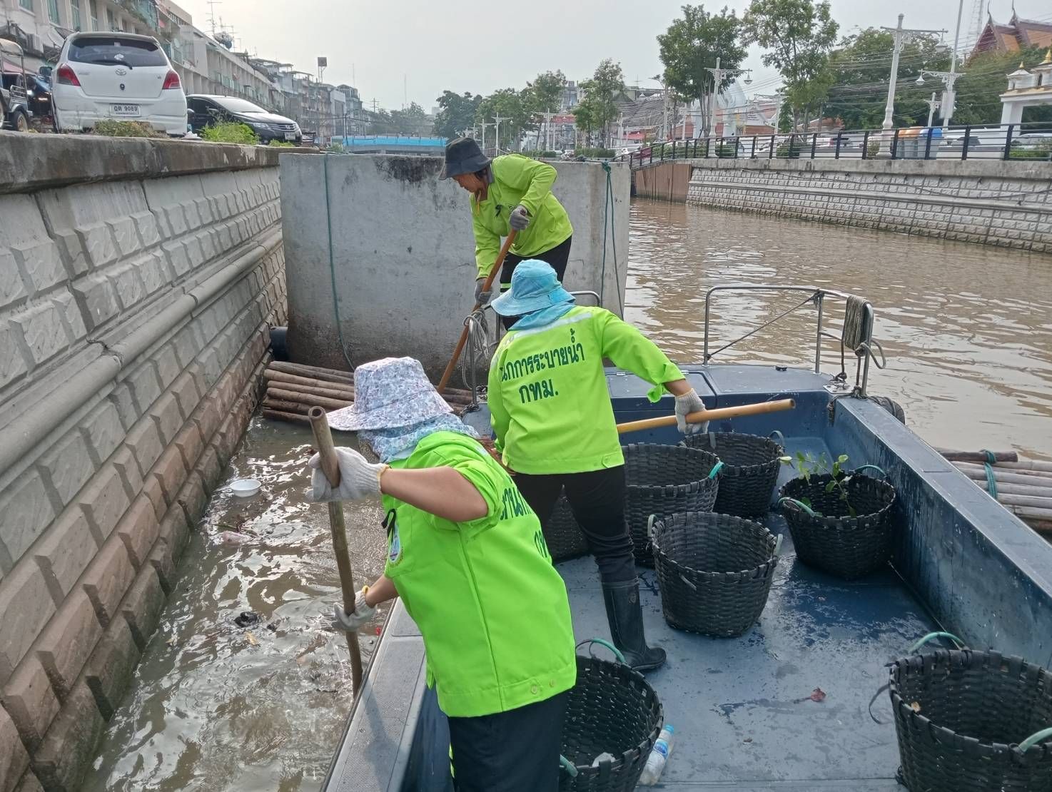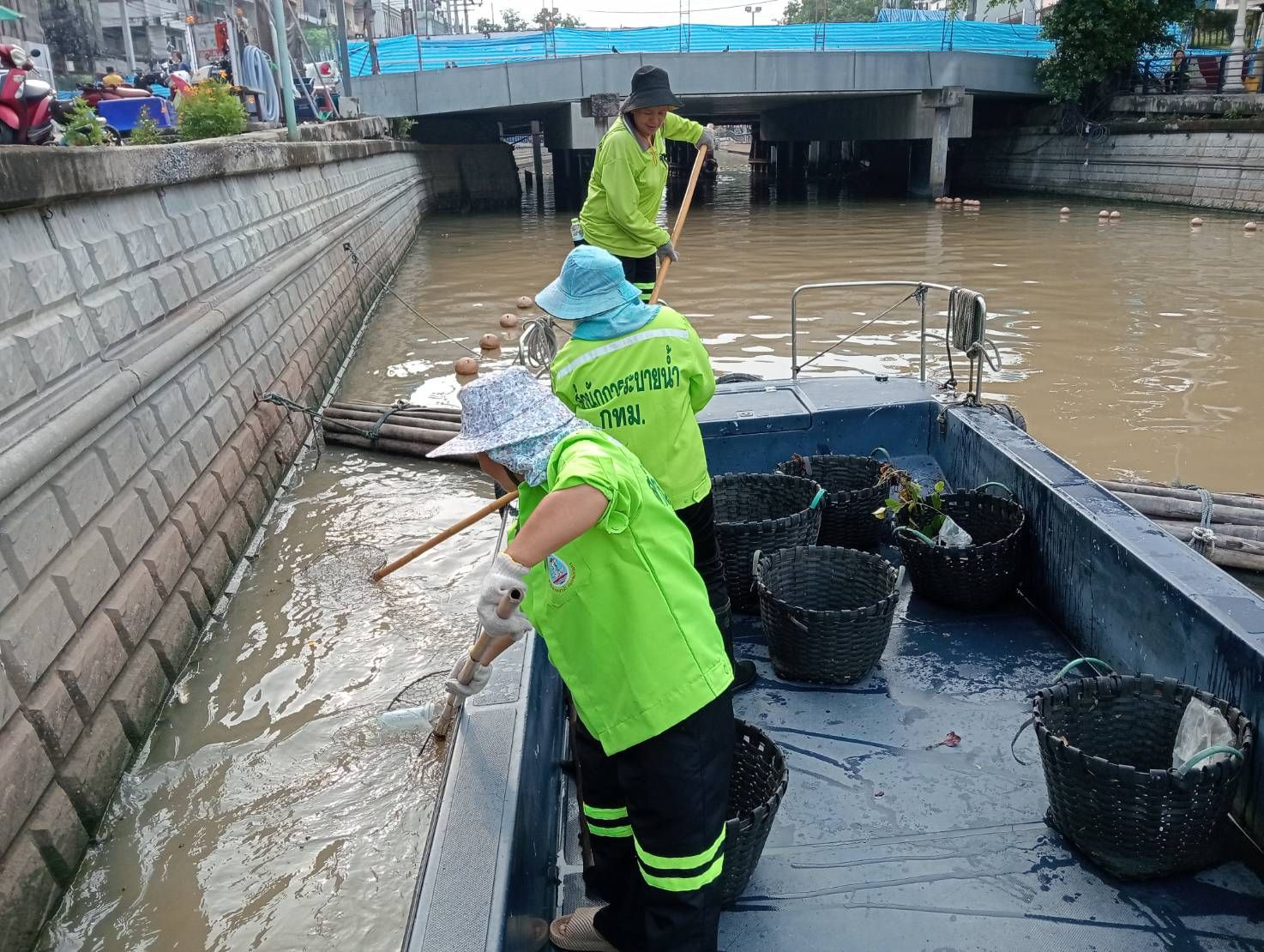 เจ้าหน้าที่ ตักเก็บขยะและวัชพืชจาก ปตร. เทเวศร์ตลอดช่วงสะพานมัฆวานถึงสี่แยกมหานาค พื้นที่เขตดุสิต เขตพระนคร เขตป้อมปราบศัตรูพ่าย