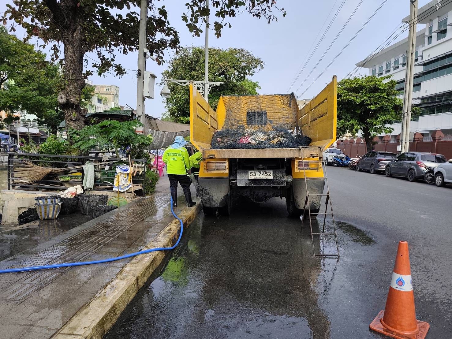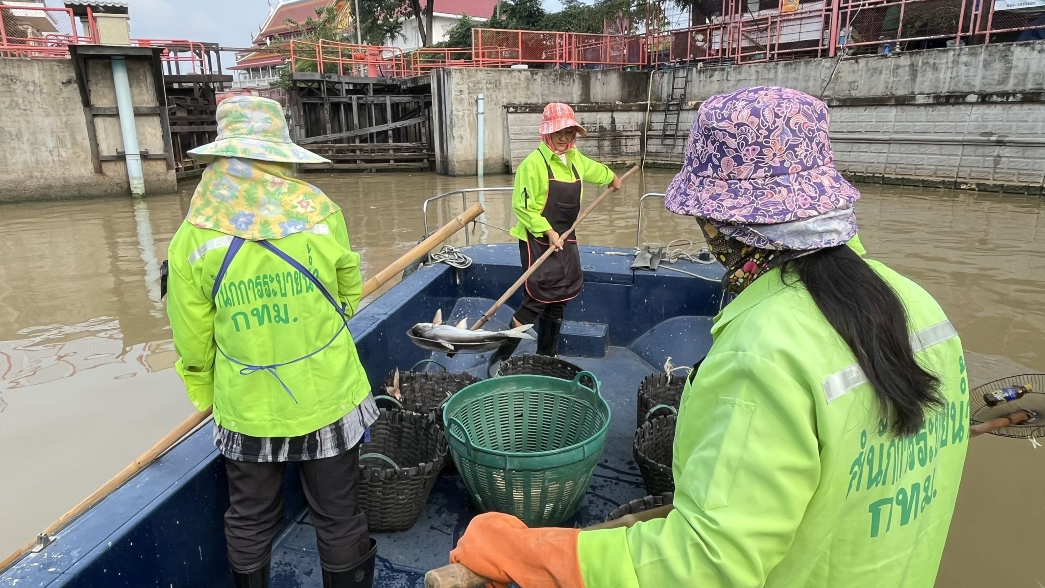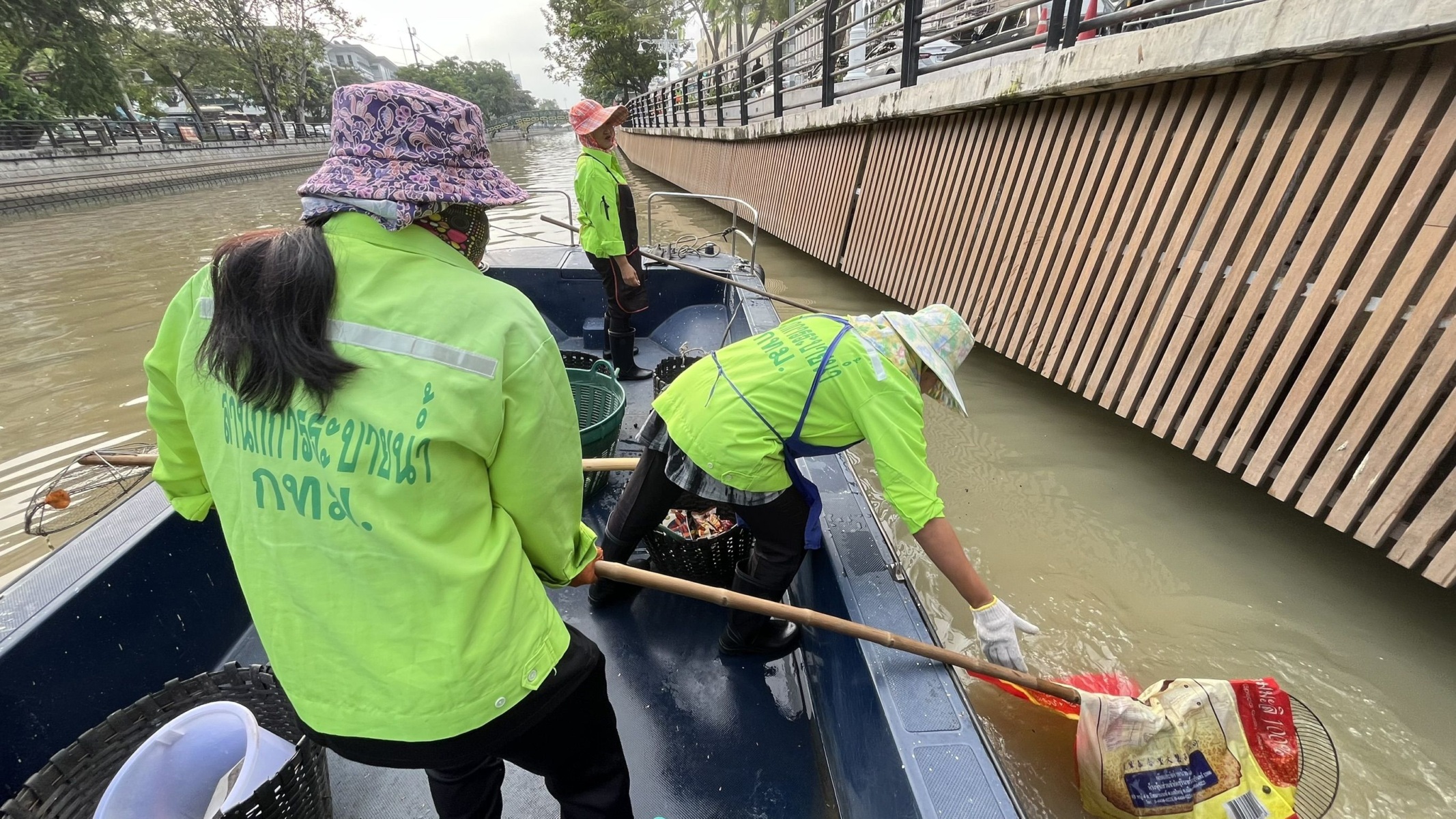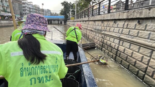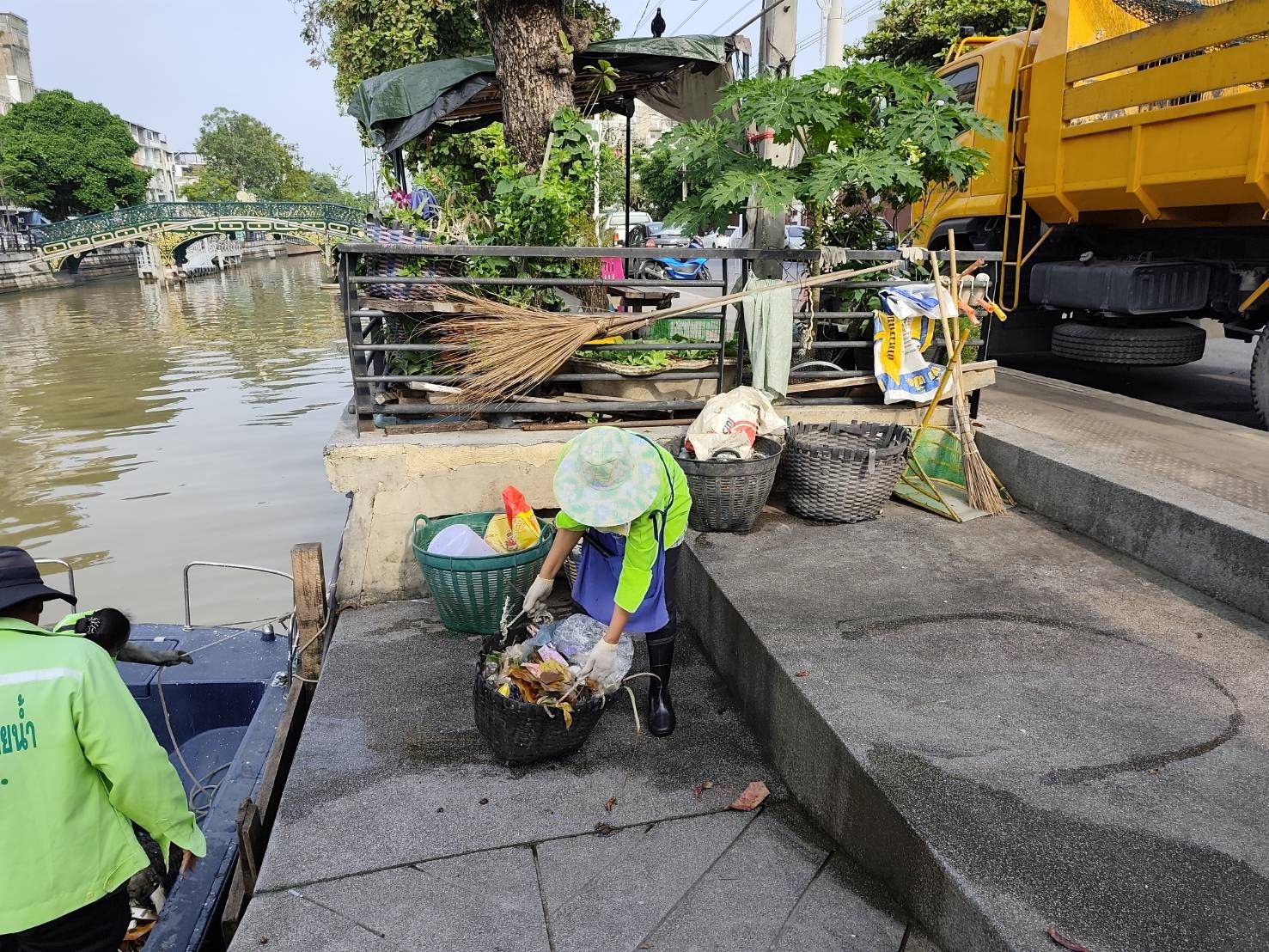 เจ้าหน้าที่ ตักเก็บขยะและวัชพืชจาก ปตร. เทเวศร์ตลอดช่วงสะพานมัฆวานถึงสี่แยกมหานาค พื้นที่เขตดุสิต เขตพระนคร เขตป้อมปราบศัตรูพ่าย