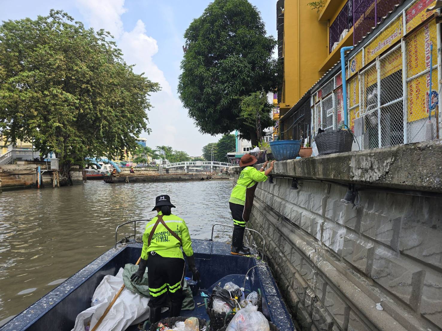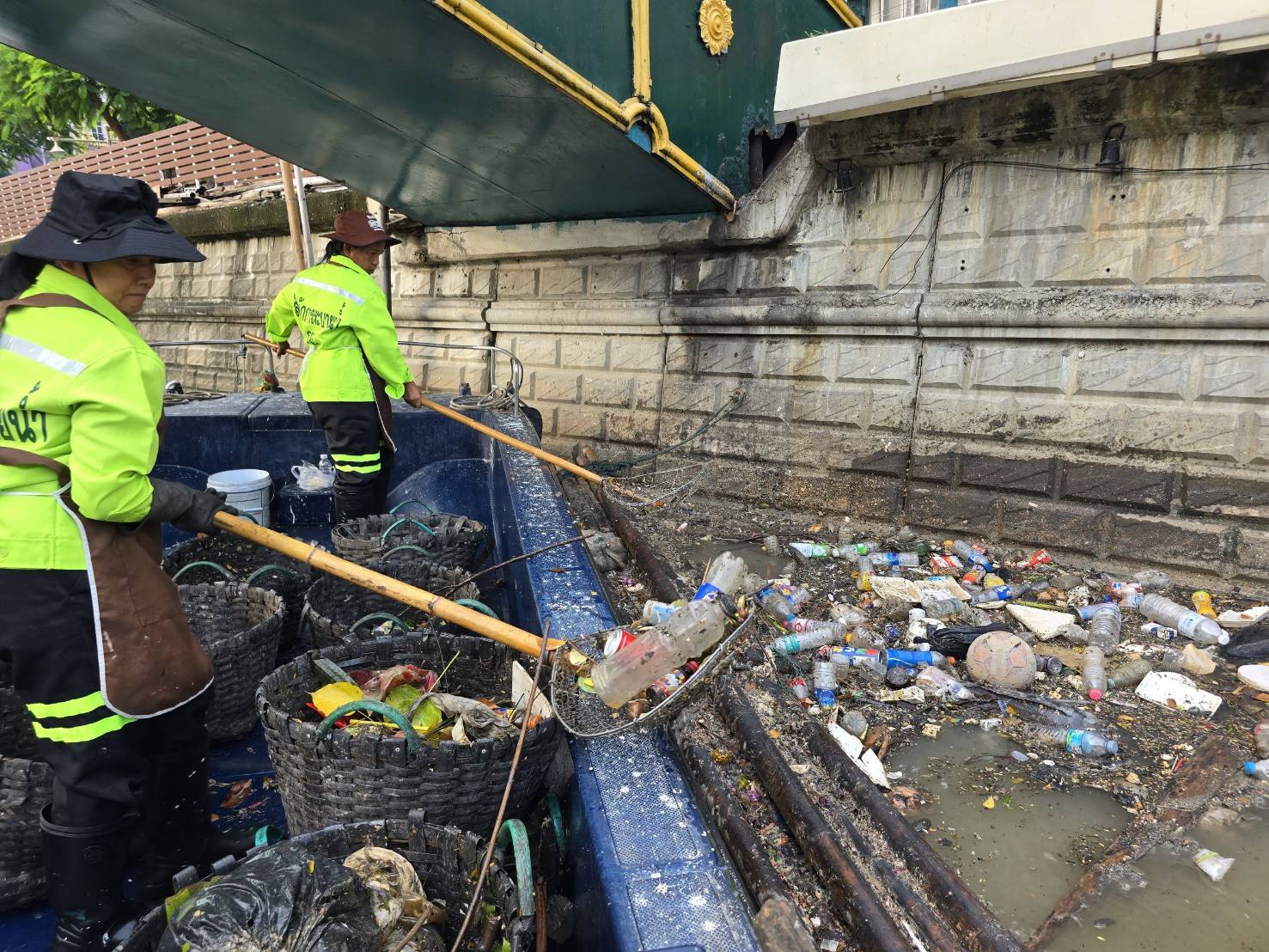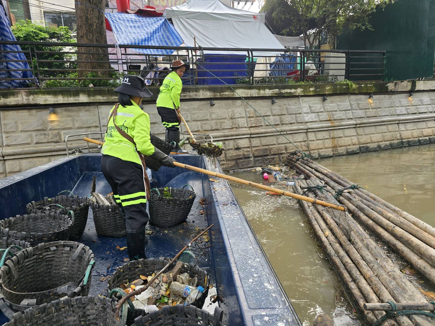 เจ้าหน้าที่ เก็บขยะช่วงสถานีสูบน้ำกรุงเกษมสะพานเจริญสวัสดิ์-สะพานนพวงศ์-สะพานกษัตริย์ศึกถึงสี่แยกมหานาค พื้นที่เขตปทุมวันและเขตป้อมปราบศัตรูพ่าย