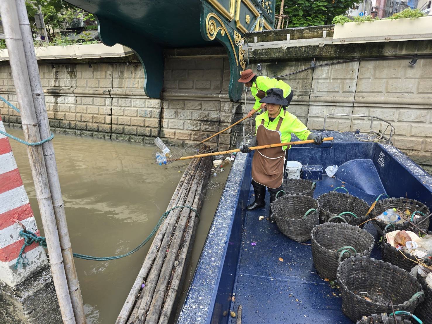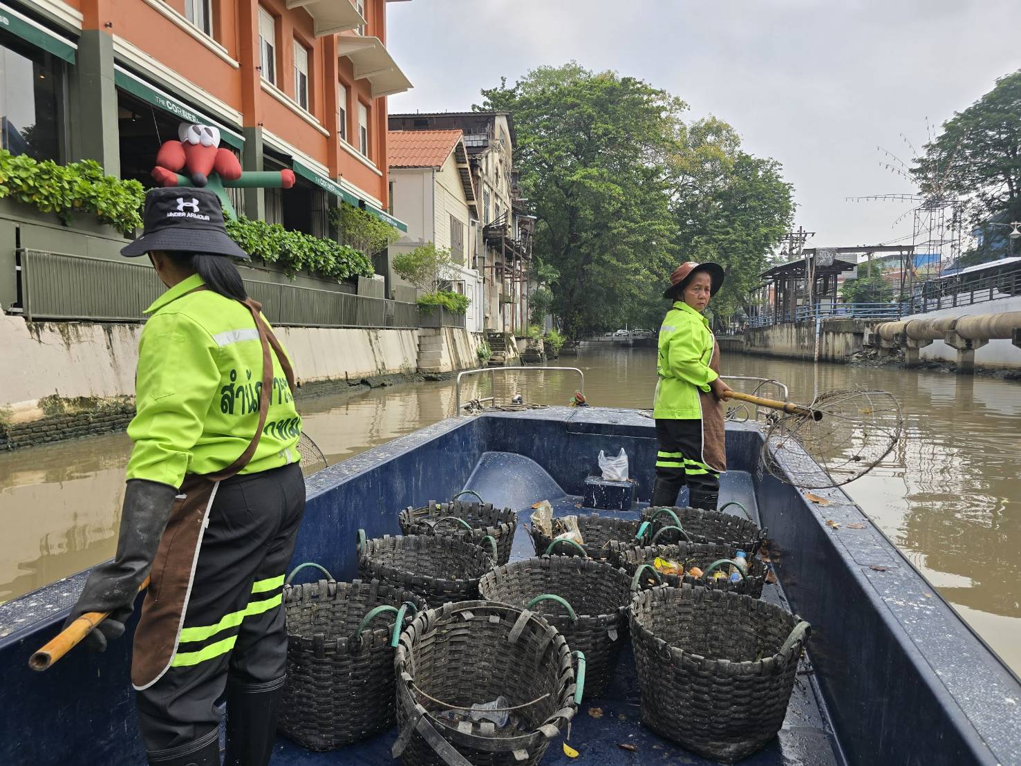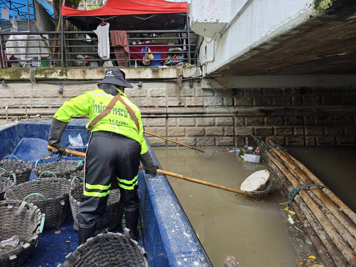 เจ้าหน้าที่ เก็บขยะช่วงสถานีสูบน้ำกรุงเกษมสะพานเจริญสวัสดิ์-สะพานนพวงศ์-สะพานกษัตริย์ศึกถึงสี่แยกมหานาค พื้นที่เขตปทุมวันและเขตป้อมปราบศัตรูพ่าย