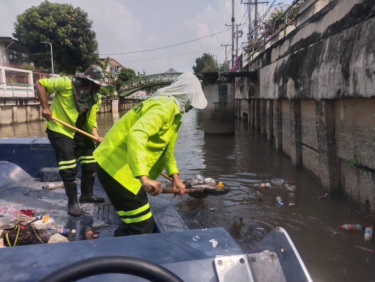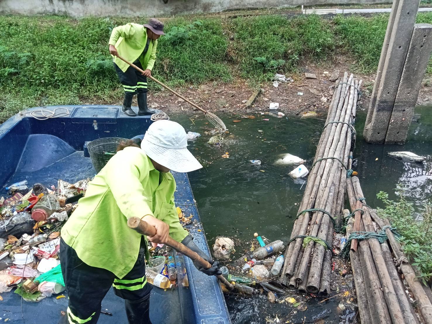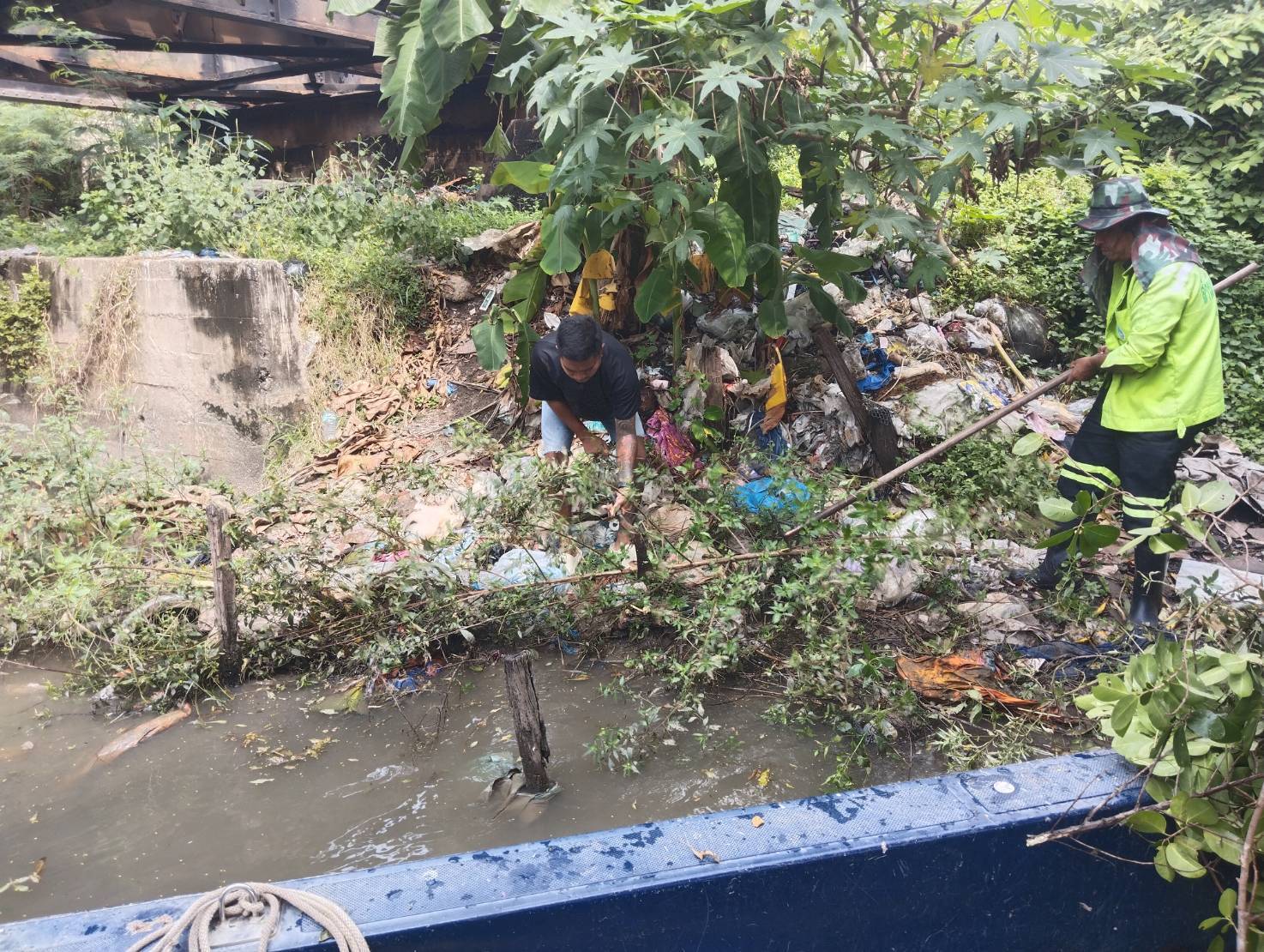 เจ้าหน้าที่ ตักขยะตัดหญ้า คลองบางซื่อช่วงประตูวัดแก้วฟ้าถึงถนนรัชดา พื้นที่เขตบางซื่อ เขตดุสิต เขตพญาไทและเขตจตุจักร