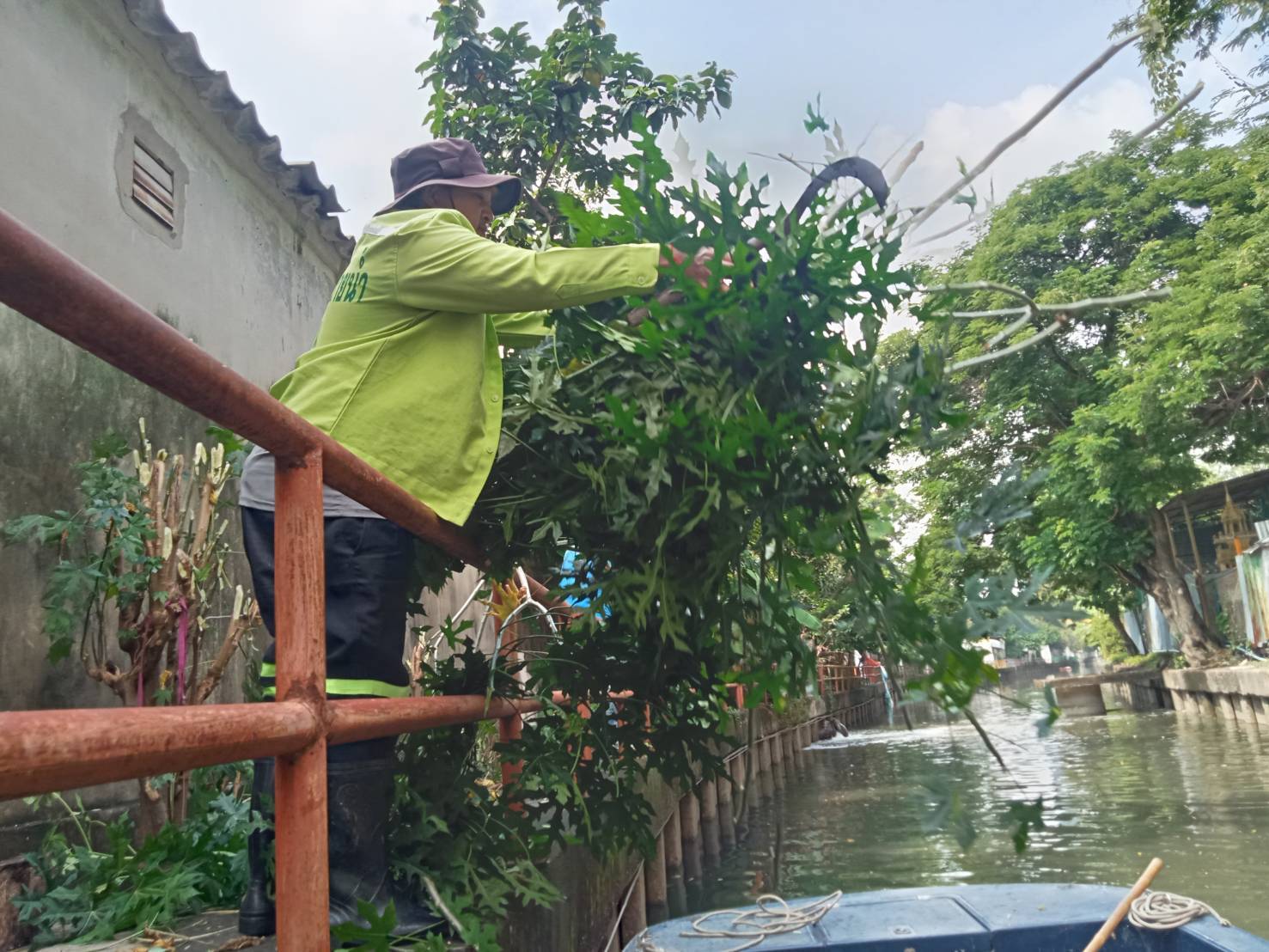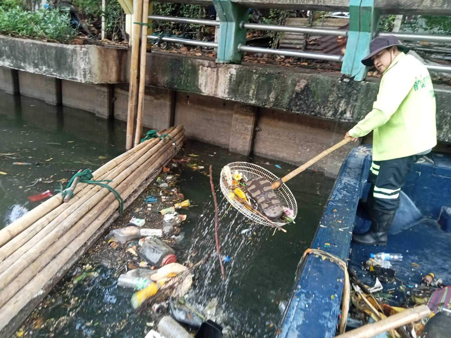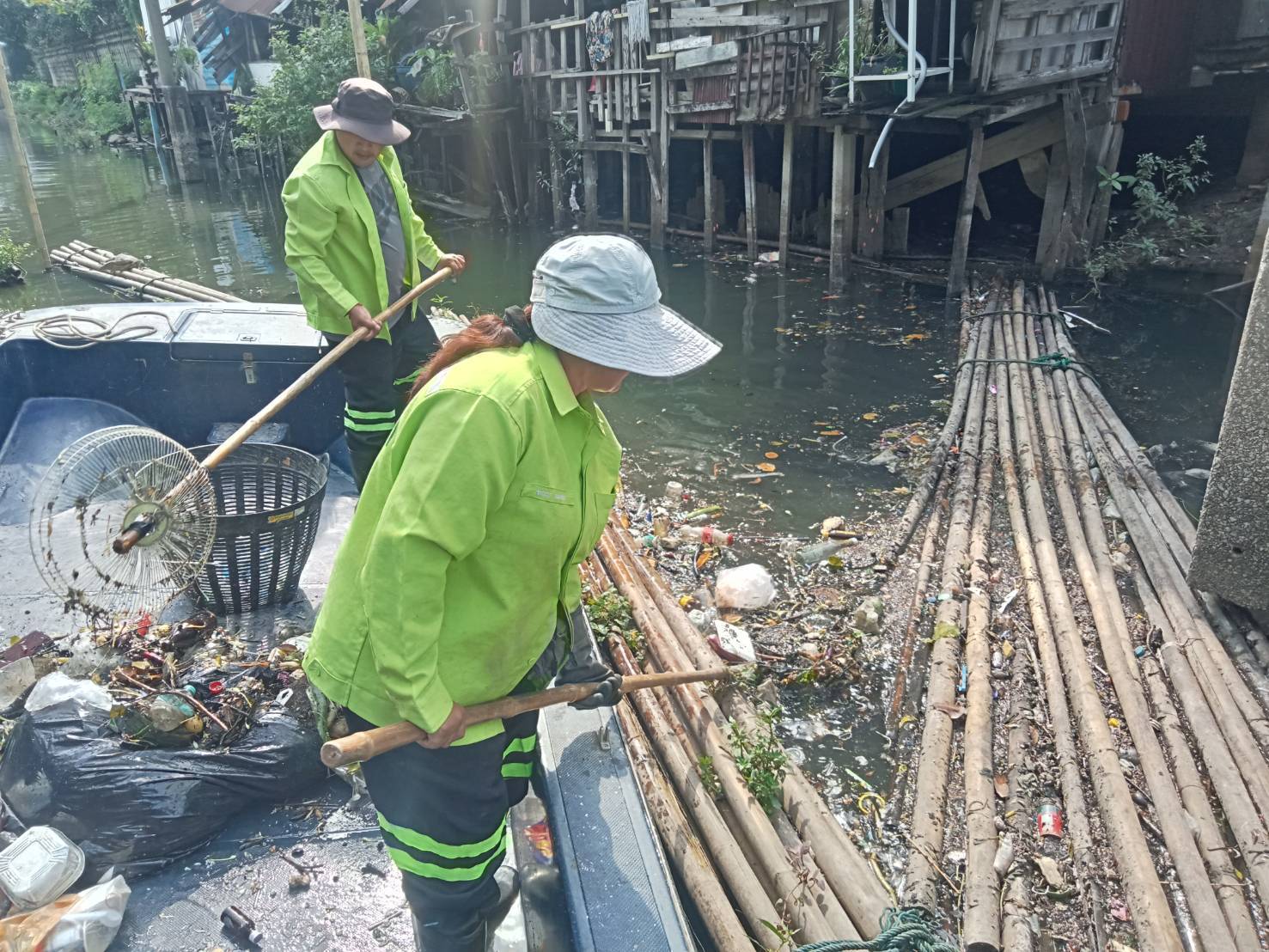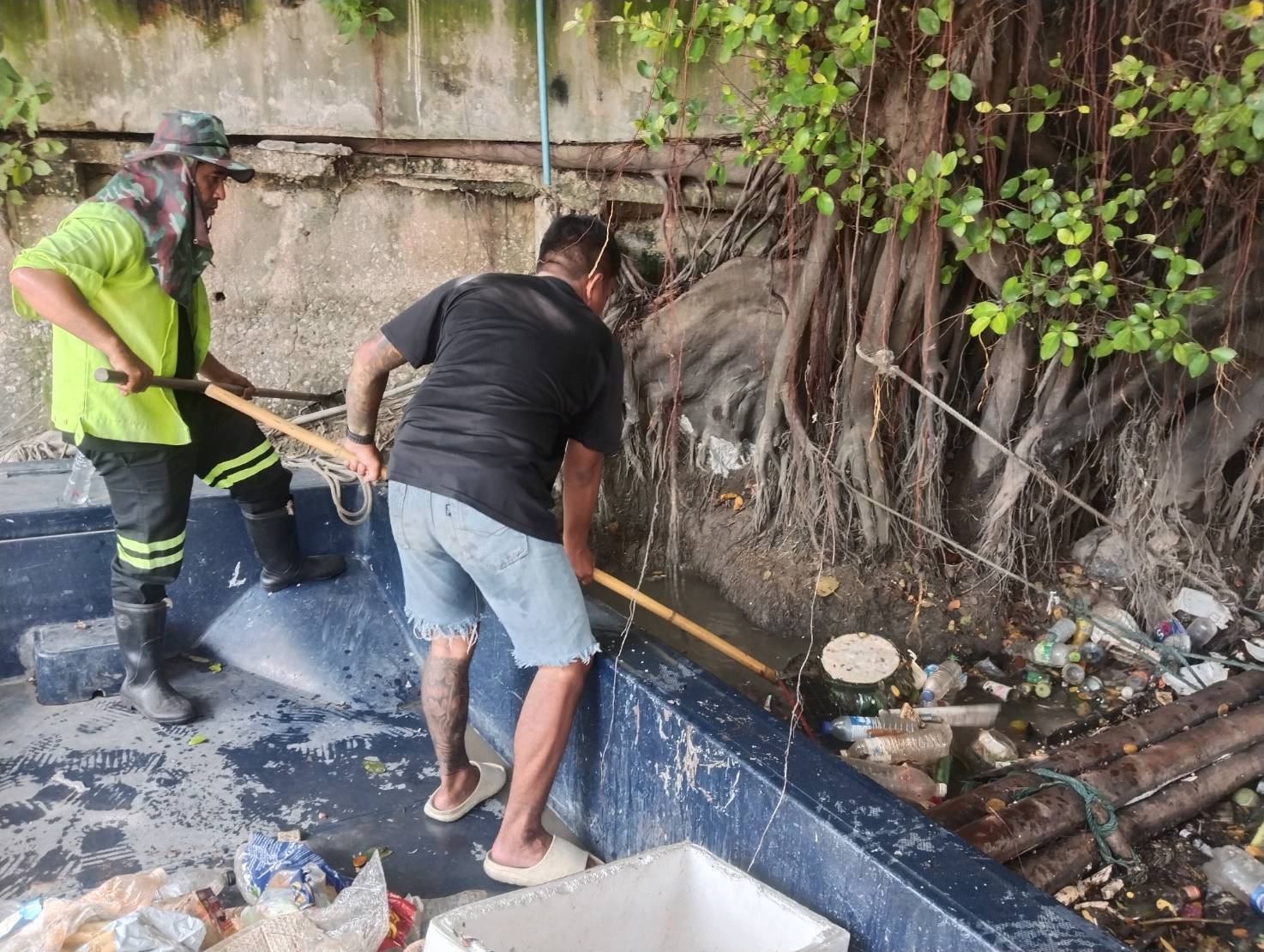 เจ้าหน้าที่ ตักขยะตัดหญ้า คลองบางซื่อช่วงประตูวัดแก้วฟ้าถึงถนนรัชดา พื้นที่เขตบางซื่อ เขตดุสิต เขตพญาไทและเขตจตุจักร