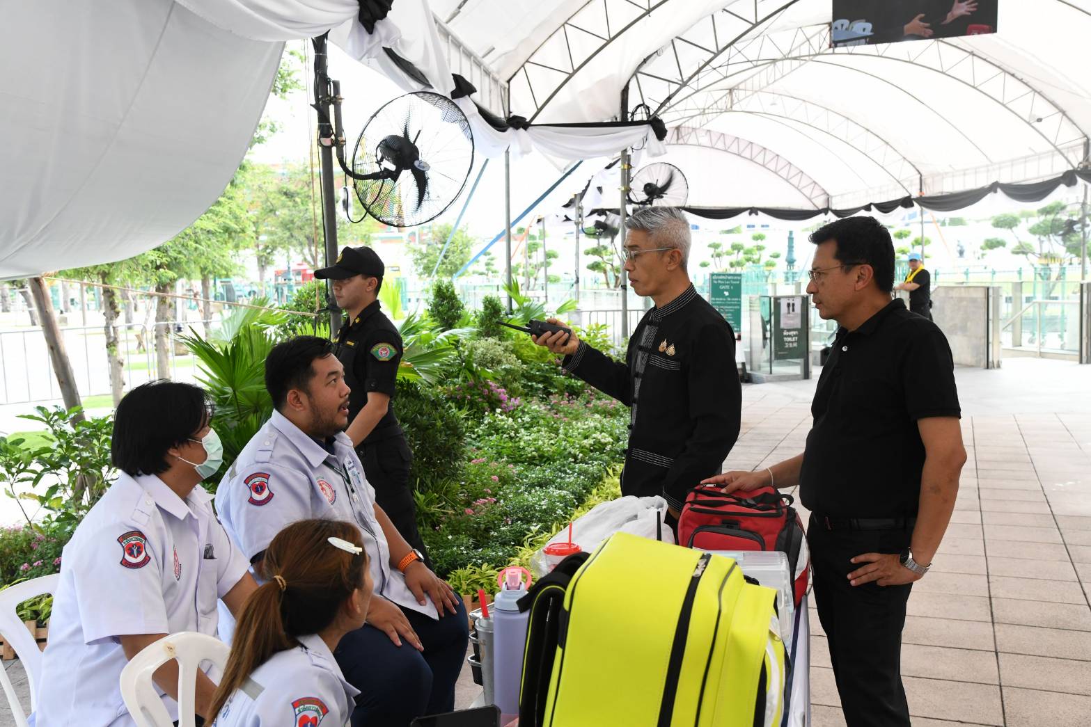ทั้งนี้ เพื่อให้การเข้ากราบถวายบังคมพระบรมศพเป็นไปด้วยความเรียบร้อยและสมพระเกียรติ กรุงเทพมหานครได้จัดเจ้าหน้าที่และจิตอาสาร่วมกันปฏิบัติหน้าที่ดูแลความเรียบร้อยและอำนวยความสะดวกอย่างรอบด้าน ทั้งการจราจร การแพทย์ฉุกเฉิน การรักษาความสะอาดและความปลอดภัย รวมถึงจัดเจ้าหน้าที่และอาสาสมัครประชาสัมพันธ์ให้แนะนำจุดบริการ จุดพักคอย และเส้นทางเข้าออกอย่างเป็นระบบ พร้อมบริการน้ำดื่ม รถสุขาเคลื่อนที่ และตู้สุขา จัดเตรียมรถวีลแชร์และรถกอล์ฟ สำหรับให้บริการผู้สูงอายุ ผู้พิการ และผู้ที่ต้องการความช่วยเหลือพิเศษ โดยมีเจ้าหน้าที่และอาสาสมัครอำนวยความสะดวกและดูแลอย่างใกล้ชิด เพื่อให้ประชาชนสามารถเข้ากราบถวายบังคมได้อย่างทั่วถึงและปลอดภัย