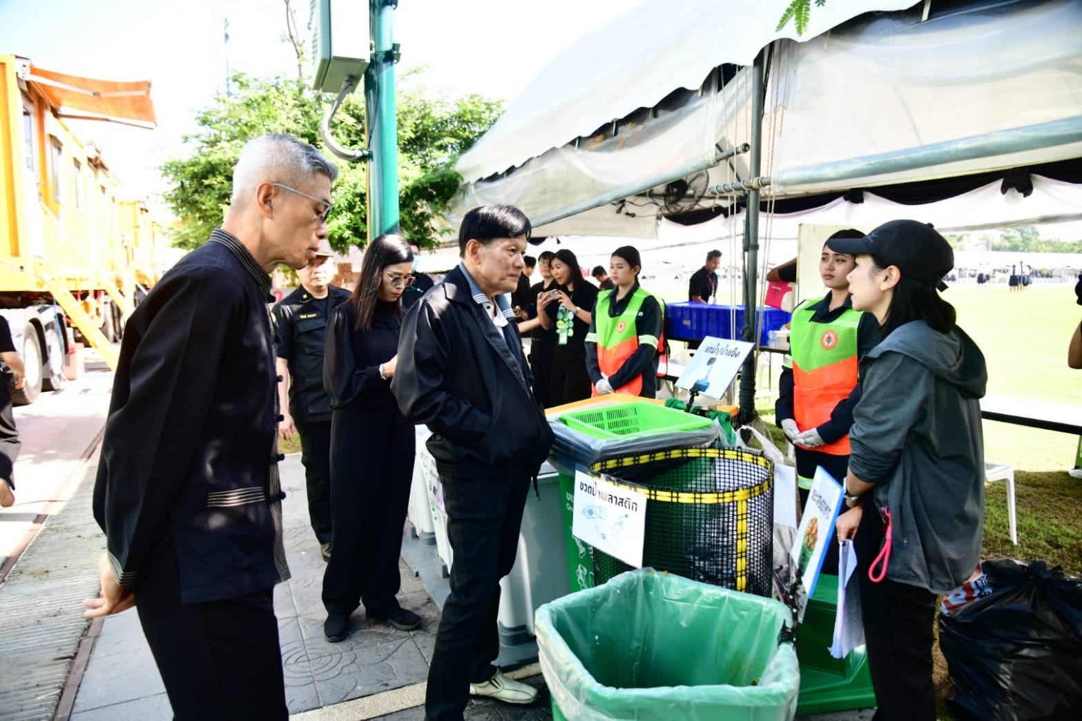 กรุงเทพมหานคร โดยสำนักสิ่งแวดล้อม กำหนดจุดทิ้งขยะมูลฝอยในพื้นที่ท้องสนามหลวง 10 จุด ประกอบด้วย บริเวณฝั่งตรงข้ามวัดมหาธาตุ 6 จุด ฝั่งโรงครัวพระราชทาน 3 จุด ป้ายรถ Shuttle Bus ถนนผ่านกลางสนามหลวง 1 จุด โดยจัดเจ้าหน้าที่ปฏิบัติงานประจำจุด ๆ ละ 3 คน ปฏิบัติงานตามรอบเวลาเช้าและบ่าย พร้อมให้คำแนะนำแก่ประชาชนในการคัดแยกขยะประเภทต่าง ๆ ตามแนวทาง “ไม่เทรวม” โดยคัดแยกขยะมูลฝอยออกเป็น 3 ประเภท ได้แก่ มูลฝอยทั่วไป จะเก็บรวบรวมนำไปกำจัดอย่างถูกสุขลักษณะ มูลฝอยรีไซเคิล สำนักงานเขตจะนำไปใช้ประโยชน์ บางส่วนนำเข้าสู่กระบวนการรีไซเคิล และมูลฝอยเศษอาหาร สำนักงานเขตจะนำไปเป็นอาหารสัตว์ ทำปุ๋ยหมักอินทรีย์ รวมถึงนำเข้าโรงงานผลิตปุ๋ยอินทรีย์ของกรุงเทพมหานคร จากการดำเนินการตั้งแต่วันที่ 26 ตุลาคม 2568 ถึงวันที่ 14 พฤศจิกายน 2568 พบว่ามีปริมาณมูลฝอยสะสมรวมทั้งสิ้น 28,563 กิโลกรัม แบ่งออกเป็น มูลฝอยทั่วไป 9,215 กิโลกรัม มูลฝอยรีไซเคิล 8,900 กิโลกรัม และมูลฝอยเศษอาหาร 10,448 กิโลกรัม ซึ่งสะท้อนให้เห็นถึงความร่วมมือของประชาชนในการคัดแยกขยะตามแนวทางที่กรุงเทพมหานครกำหนด