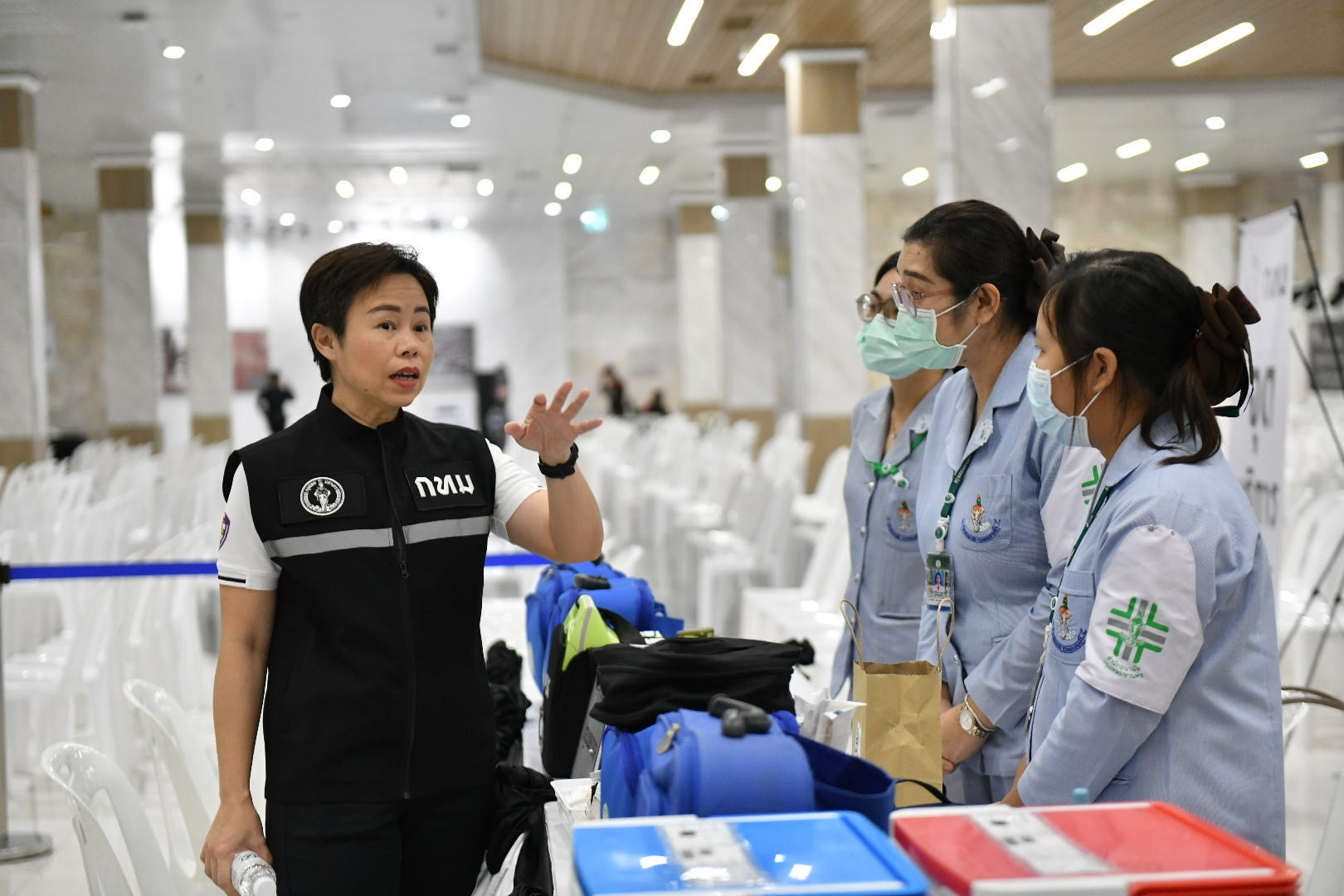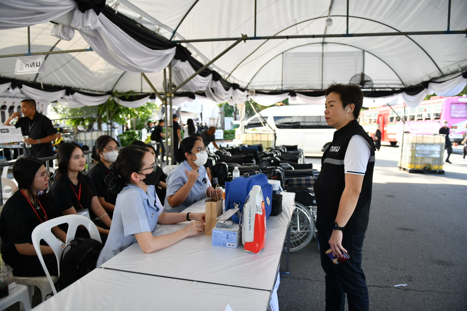 พร้อมกันนี้ รองผู้ว่าฯ ทวิดา ได้ตรวจเยี่ยมทีมอาสาสมัครสภากาชาดไทย ที่ปฏิบัติภารกิจจิตอาสา ณ เต็นท์อาหารพระราชทาน ท้องสนามหลวง และปฏิบัติหน้าที่ในการดูแลสุขภาพประชาชนเบื้องต้น