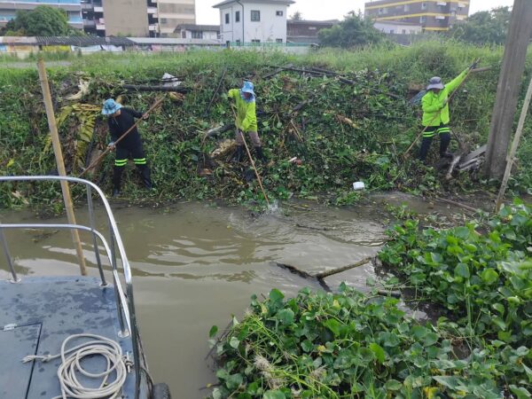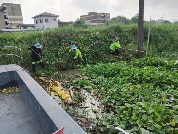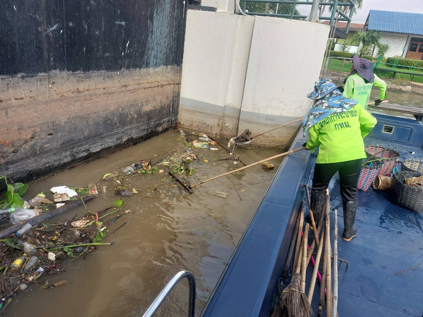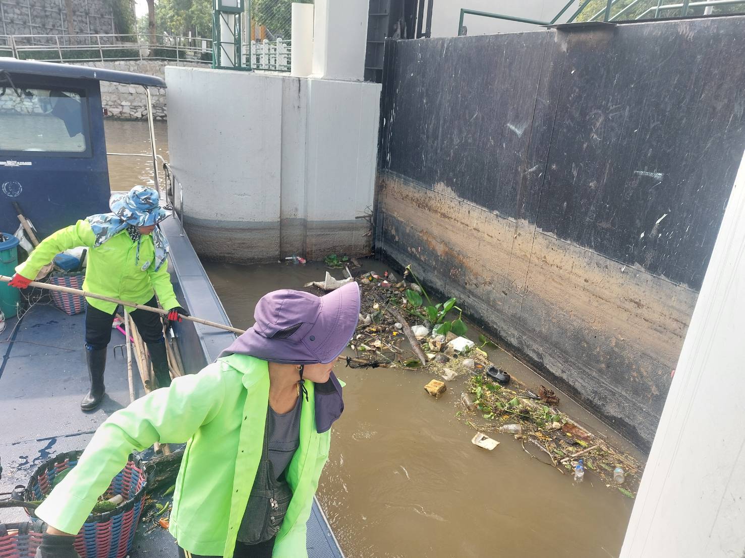 สำนักการระบายน้ำ จัดเก็บขยะและวัชพืชคลองแสนแสบ จาก ปตร.มีนบุรีถึง ปตร.หนองจอก เขตหนองจอก