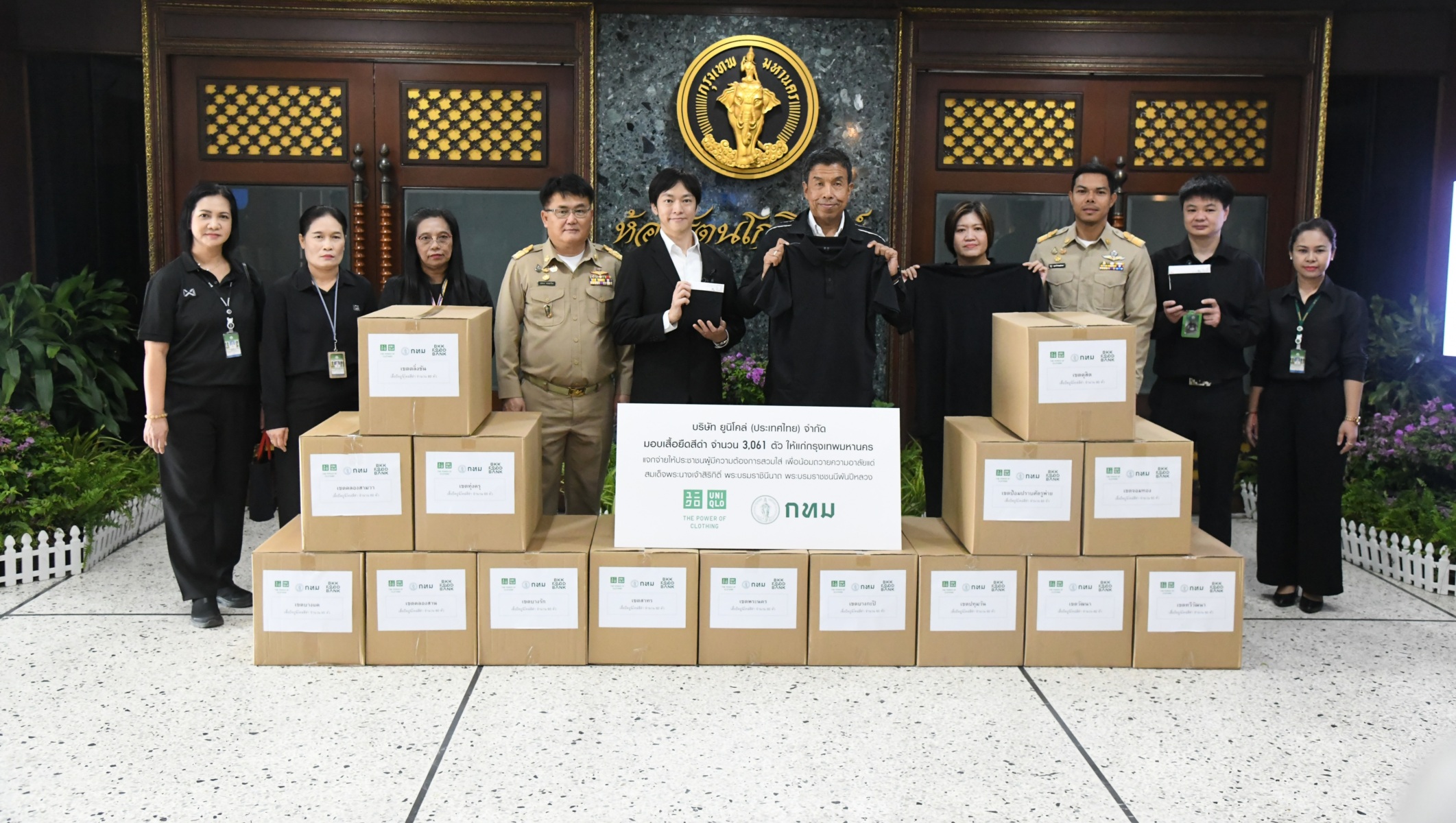 (17 พ.ย.68) เวลา 08.45 น. นายชัชชาติ สิทธิพันธุ์ ผู้ว่าราชการกรุงเทพมหานคร รับมอบเสื้อคอปก และเสื้อยืดสีดำ จำนวน 3,061 ตัว จากนายโยชิทาเกะ วาคากุวะ ประธานเจ้าหน้าที่บริหาร บริษัท ยูนิโคล่ (ประเทศไทย) จำกัด เพื่อส่งเข้า BKK Food Bank ทั้ง 50 เขตของกรุงเทพมหานคร พร้อมส่งต่อยังกลุ่มเปราะบาง ได้สวมใส่ในช่วงการไว้อาลัย การสวรรคตของสมเด็จพระนางเจ้าสิริกิติ์ พระบรมราชินีนาถ พระบรมราชชนนีพันปีหลวง โดยผู้ว่าฯ ชัชชาติ กล่าวขอบคุณทางยูนิโคล่ที่ได้มอบเสื้อดำให้กับทางกทม. ซึ่งกทม. ก็จะแจกจ่ายให้กับประชาชนกลุ่มเปราะบางอย่างทั่วถึง