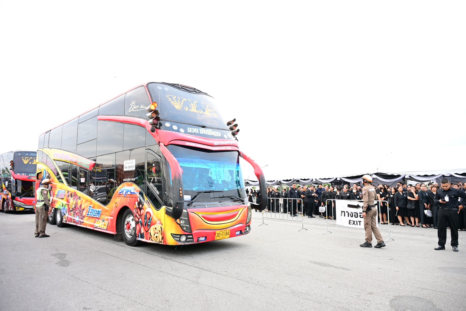 ด้านการเดินทาง ได้ร่วมกับกระทรวงคมนาคม จัดรถ ขสมก. เดินรถใน 16 เส้นทาง รวมทั้งเรือข้ามฟากและเรือด่วนเจ้าพระยา ให้บริการรับ–ส่งฟรี รวมถึงร่วมกับ กสทช. และ NT เปิดให้บริการสายด่วน 1818 โทรฟรี เพื่อให้ข้อมูลและคำแนะนำแก่ประชาชนเกี่ยวกับการเข้ากราบถวายบังคมพระบรมศพ ทั้งเรื่องเส้นทาง การแต่งกาย ช่วงเวลาเข้ากราบ และการร่วมบริจาคสิ่งของหรืออาหาร