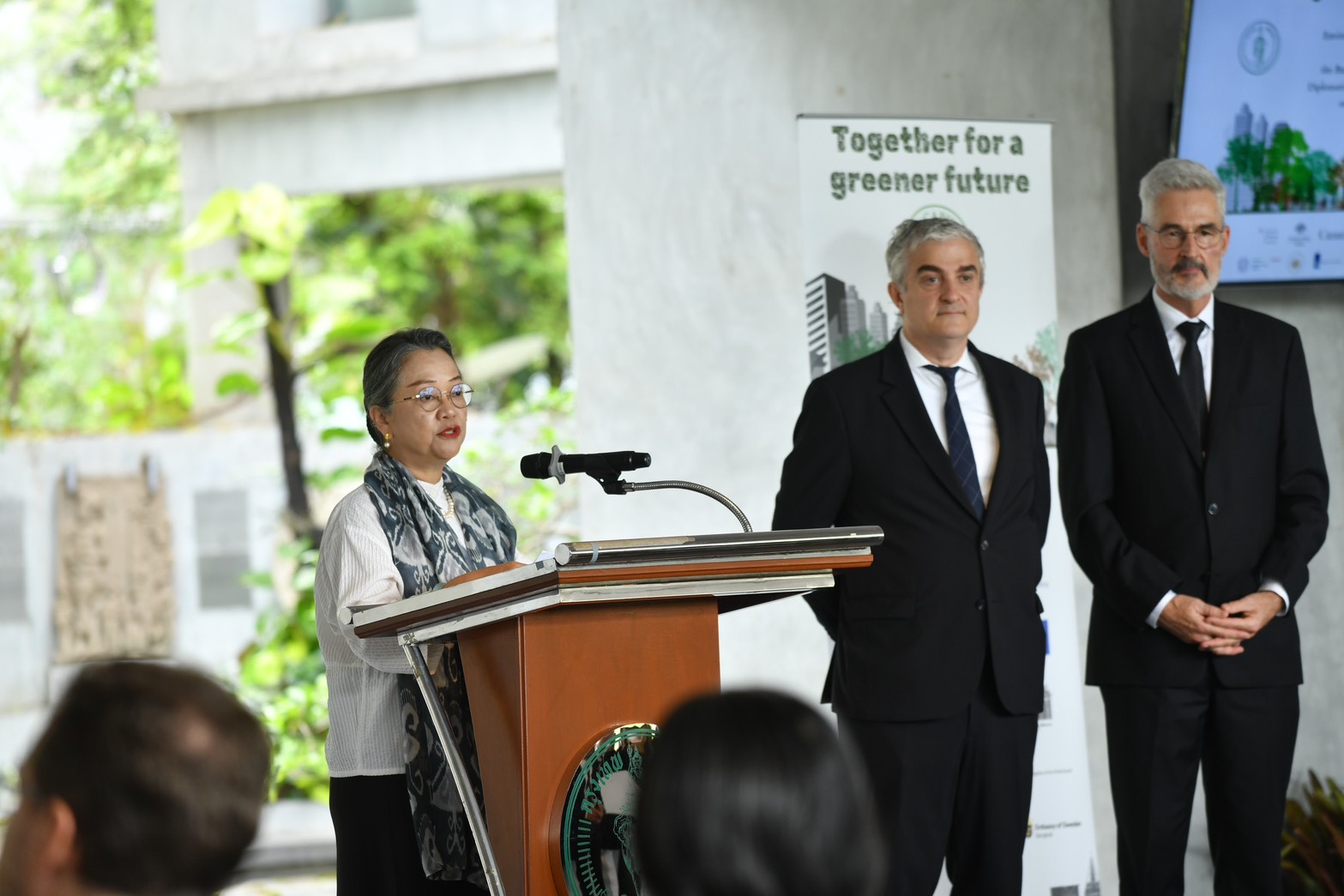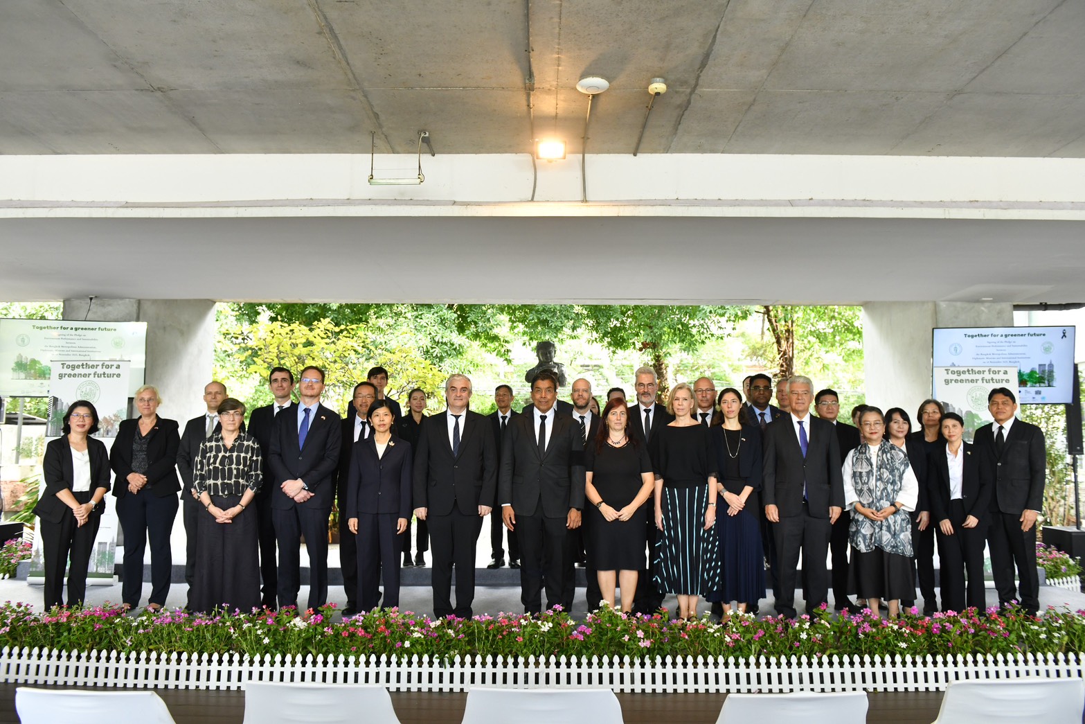 ในการนี้ ได้รับเกียรติจากเอกอัครราชทูตเดนมาร์ก เอกอัครราชทูตสวิตเซอร์แลนด์ เลขาธิการบริหารของ UNESCAP และผู้ว่าราชการกรุงเทพมหานคร กล่าวเปิดงาน โดยผู้ว่าราชการกรุงเทพมหานคร เอกอัครราชทูตหรือ ผู้แทนสถานเอกอัครราชทูตทั้ง 15 แห่ง และเลขาธิการบริหารของ UNESCAP ร่วมลงนามในคำปฏิญาณดังกล่าว จากนั้น ผู้ร่วมลงนามฯ ได้ร่วมกันปลูกต้นประดู่แดง (Monkey Flower Tree) จำนวน 17 ต้น ณ สวนวชิรเบญจทัศ (สวนรถไฟ) เพื่อเป็นสัญลักษณ์ของการริเริ่มโครงการ Eco-Capitals Forum 2025 และแสดงความร่วมมือ ด้านสิ่งแวดล้อมระหว่างกัน