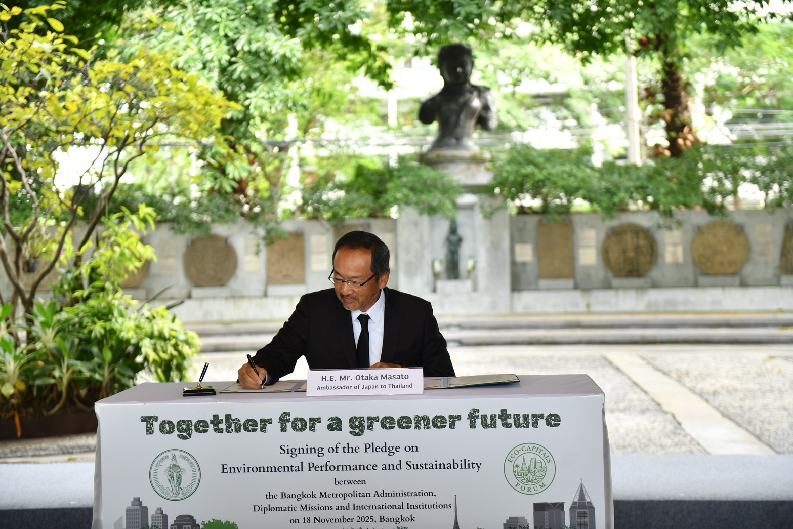 (18 พ.ย. 68) เวลา 08.30 น. นายชัชชาติ สิทธิพันธุ์ ผู้ว่าราชการกรุงเทพมหานคร พร้อมด้วยเอกอัครราชทูต 15 แห่ง และ UNESCAP ลงนามคำปฏิญาณด้านสิ่งแวดล้อมและความยั่งยืนภายใต้โครงการ Eco-Capitals Forum ณ หอจดหมายเหตุพุทธทาส อินทปัญโญ (สวนโมกข์กรุงเทพฯ) และร่วมปลูกต้นประดู่แดง ณ สวนวชิรเบญจทัศ (สวนรถไฟ)