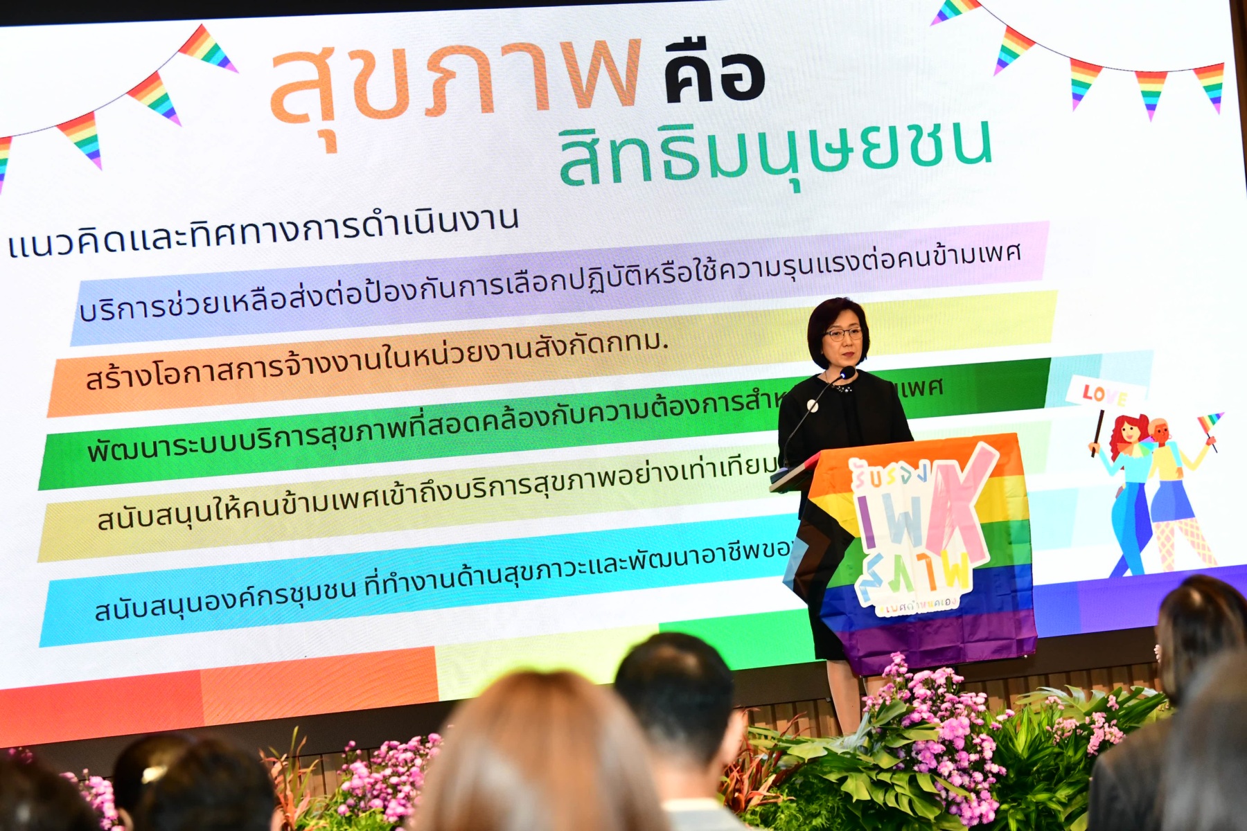 ด้าน แพทย์หญิงนภัสชล ฐานะสิทธิ์ รองผู้อำนวยการสำนักอนามัย กรุงเทพมหานคร ได้กล่าวปาฐกถาพิเศษถึงการดำเนินงานของ กทม. เพื่อให้เป็นเมืองที่ปลอดภัยและเป็นมิตรต่อความหลากหลายทางเพศ ตามวิสัยทัศน์ของผู้ว่าราชการกรุงเทพมหานคร อาทิ การสร้างพื้นที่ปลอดภัยในโรงเรียนนำร่อง การสนับสนุนกิจกรรมต่าง ๆ เช่น Pride Month การสร้างโอกาสการจ้างงานโดยไม่มีการเลือกปฏิบัติต่อบุคลากรที่มีความหลากหลายทางเพศ การสนับสนุนการจดทะเบียนสมรสเท่าเทียมซึ่งมีผู้มาใช้บริการแล้วกว่า 2,000 คู่ และการให้บริการด้านสุขภาพ ที่สำคัญคือ การจัดตั้ง Pride Clinic ซึ่งปัจจุบันมี 31 แห่ง ได้แก่ โรงพยาบาลสังกัดกรุงเทพมหานคร 11 แห่ง และศูนย์บริการสาธารณสุขอีก 20 แห่ง โดยให้บริการดูแลสุขภาพแบบบูรณาการทั้งสุขภาพกายและสุขภาพจิต มีการคัดกรองภาวะเครียด ภาวะซึมเศร้า หรือปัญหาความทุกข์ใจในเรื่องเพศ การให้คำปรึกษาด้านฮอร์โมน การตรวจระดับฮอร์โมน และการรับฮอร์โมนในราคาที่เป็นมิตร บริการตรวจคัดกรองและรักษาโรคติดต่อทางเพศสัมพันธ์ ให้คำปรึกษาหรือการส่งต่อไปยังโรงพยาบาลสำหรับผู้ที่ต้องการบริการด้านศัลยกรรม และเพื่อเป็นการเคารพอัตลักษณ์ทางเพศ Pride Clinic ยังสนับสนุนให้มีการใช้คำว่า “คุณ” แทนคำนำหน้าชื่อในการให้บริการ