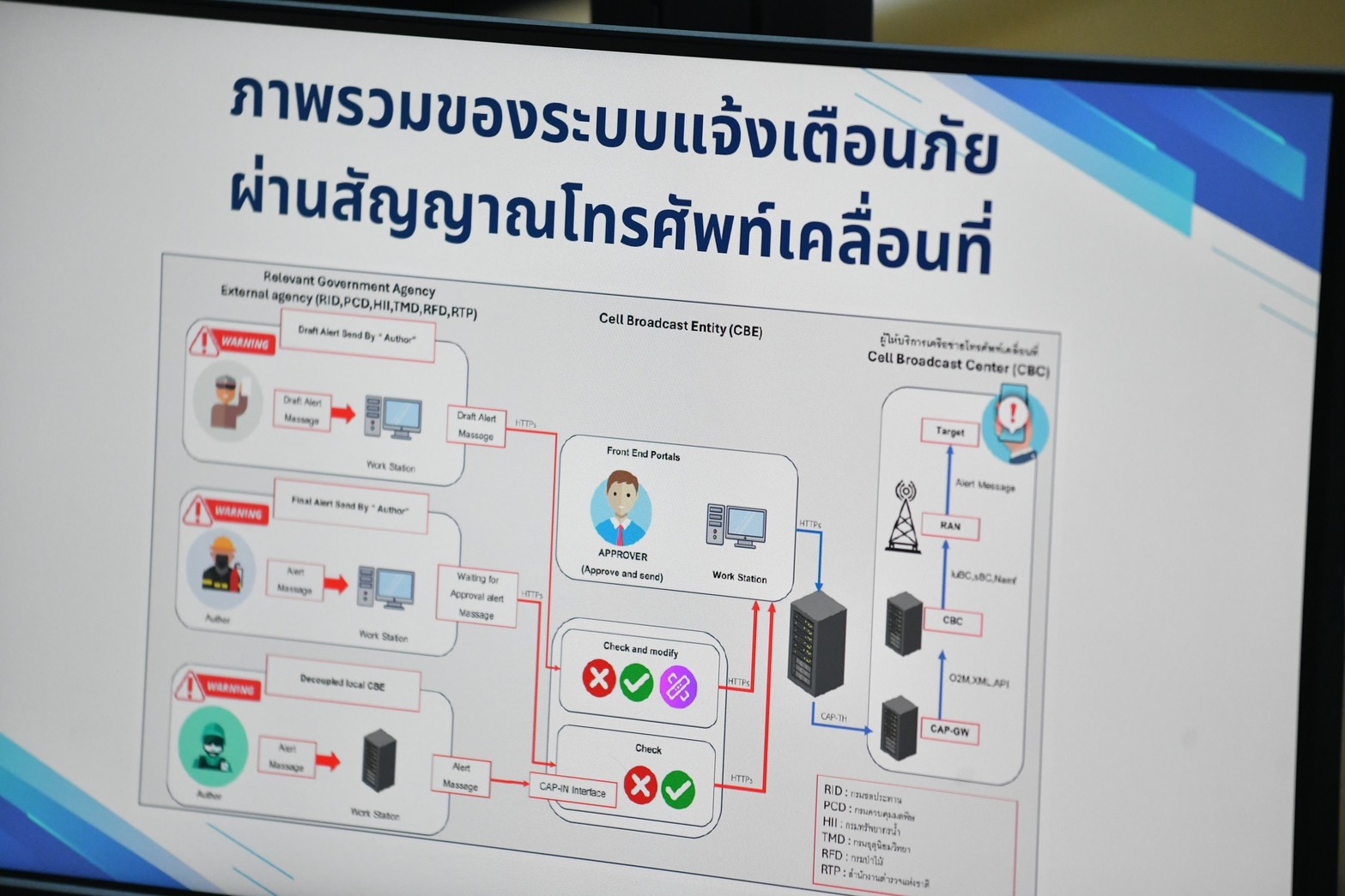 ในการประชุมครั้งนี้ ได้มีการระบุประเภทของการส่งข้อความเตือนภัยเป็น 2 ประเภทหลัก คือ Warning (การเตือนภัย) สำหรับสถานการณ์ที่มีความเสี่ยงสูงและต้องการให้ประชาชนดำเนินการป้องกันตนเองทันที Informative (การแจ้งข้อมูล) สำหรับการให้ข้อมูลสถานการณ์หรือคำแนะนำทั่วไป นอกจากนี้ กรุงเทพมหานครได้หารือถึงการแจ้งเตือนภัยฝุ่นละออง โดยรถที่ผ่านการตรวจสอบแล้วจะได้รับใบรับรอง “บัญชีสีเขียว” (Green List) ซึ่งเป็นส่วนสำคัญที่จะทำให้กรุงเทพมหานครปลอดภัยจากฝุ่น PM2.5 ตามมาตรการ Low Emission Zone เพื่อกำหนดแนวทางการสื่อสารที่เข้าใจง่ายและเป็นประโยชน์ต่อการดูแลสุขภาพของประชาชน รวมทั้ง การบูรณาการข้อมูลแผนที่ (Map Data) ของกรุงเทพมหานครกับระบบ CBS แผนที่เขต แขวง และข้อมูลชุมชน ของกรุงเทพมหานครที่สามารถนํามาใช้เพื่อกําหนดพื้นที่แจ้งเตือนภัยเฉพาะเจาะจงในระบบ CBS และการดึงข้อมูลที่สําคัญของกรุงเทพมหานคร เช่น ตําแหน่งโรงงาน ผู้ป่วยติดเตียง และศูนย์พักพิง เพื่อใช้ประกอบการวิเคราะห์ และการแจ้งเตือนภัยเฉพาะพื้นที่