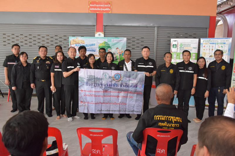 (19 พ.ย.68) เวลา 10.15 น. นางสาวกัลยา บุญแดง ผู้อำนวยการเขตคันนายาว พร้อมด้วย นายสาธิต ยิ่งยวด ผู้ช่วยผู้อำนวยการเขต คณะผู้บริหารเขต และเจ้าหน้าที่ผู้เกี่ยวข้อง เข้าร่วมกิจกรรมโครงการคลองสวย 50 เขต ณ มัสยิดยัมอิยะตุ้นมุสลีมีน (สุเหร่าแดง) โดยในวันนื้ ได้มอบเสื้อสารวัตรคลอง ให้กับผู้แทนชุมชนริมคลองแสนแสบ จำนวน 5 ราย จากนั้น เจ้าหน้าที่ฝ่ายสิ่งแวดล้อมและสุขาภิบาล ประชาสัมพันธ์ให้ความรู้ของการติดตั้งบ่อดักไขมัน ลดการปล่อยของเสียลงสู่แหล่งน้ำสาธารณะ รวมทั้ง มีการเชิญชวนประชาชนริมคลองคัดแยกขยะ ประชาสัมพันธ์ให้ความรู้การลงทะเบียนคัดแยกขยะ การติดตั้งใช้งานถังหมัก OK โดยเจ้าหน้าที่ฝ่ายรักษาความสะอาดและสวนสาธารณะ และร่วมกันเทน้ำหมักชีวภาพลงคลองแสนแสบเพื่อปรับสภาพน้ำในคลอง เจ้าหน้าที่ฝ่ายสิ่งแวดล้อมฯ ตรวจวัดคุณภาพน้ำ ค่าออกซิเจนละลาย (DO) เจ้าหน้าที่ฝ่ายโยธา ทาสีราวกั้นทางเดินเลียบคลอง เพื่อปรับปรุงภูมิทัศน์