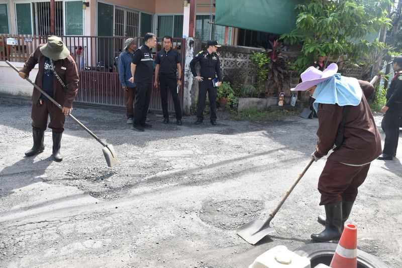 🔹ลงพื้นที่ตรวจการดำเนินการปรับสภาพผิวการจราจรชำรุดภายในชุมชนดวงมณี โดยการเกลี่ยพื้นถนน เตรียมความพร้อมเทลาดยางมะตอย เพื่อความปลอดภัยในชีวิตและทรัพย์สินของประชาชนที่สัญจรบริเวณดังกล่าว
