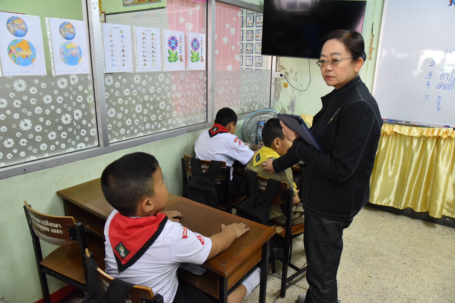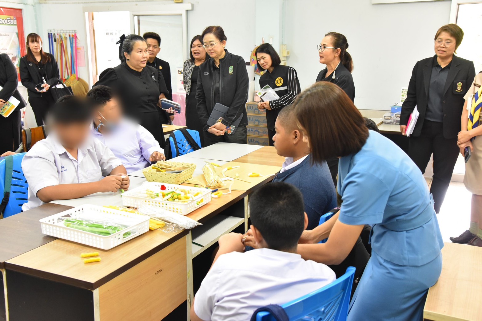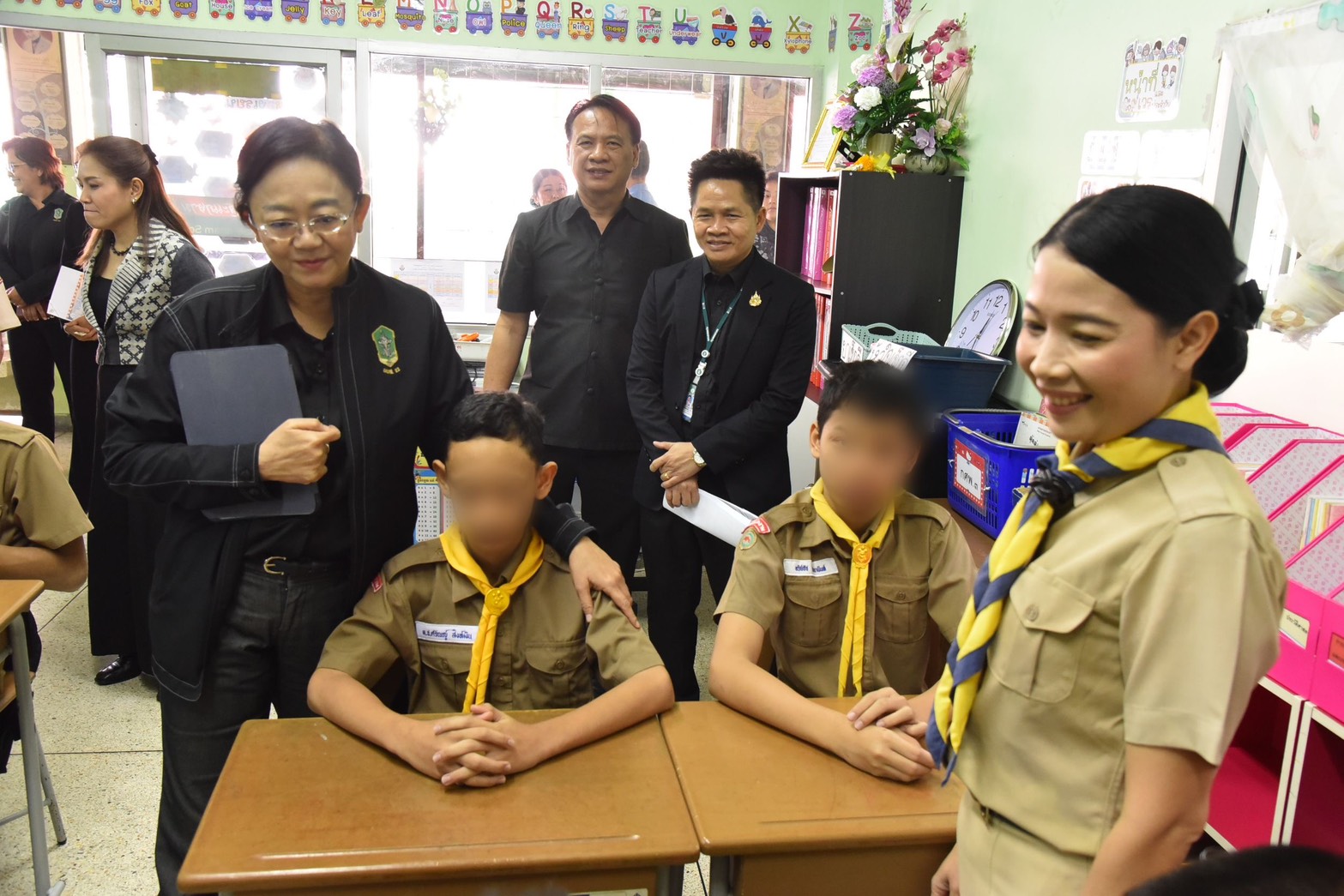 จากนั้น รองปลัดฯ อรัญญา ได้เข้าร่วมรับฟังแนวทางการศึกษาพิเศษของโรงเรียนวัดบางบอน เขตบางบอน โรงเรียนต้นแบบการจัดการเรียนร่วม โดย นางสาวสุภารัตน์ วงศ์ษาสันต์ ผู้อำนวยการสถานศึกษา พร้อมด้วยผู้บริหารสถานศึกษา ครู และบุคลากรให้การต้อนรับ โดยโรงเรียนวัดบางบอน (พิมพ์ จันแต้อุปถัมภ์) ดำเนินการจัดการเรียนการสอนระดับปฐมวัย ระดับประถมศึกษา และการศึกษาพิเศษ 2 รูปแบบ คือ เรียนร่วมเต็มเวลา และห้องเรียนพิเศษ จำนวน 5 ห้องเรียน ตั้งแต่ชั้นประถมศึกษาปีที่ 1 – 6 ทั้งนี้ รองปลัดฯ อรัญญา เข้าตรวจเยี่ยมการเรียนการสอนของชั้นประถมศึกษาปีที่ 2