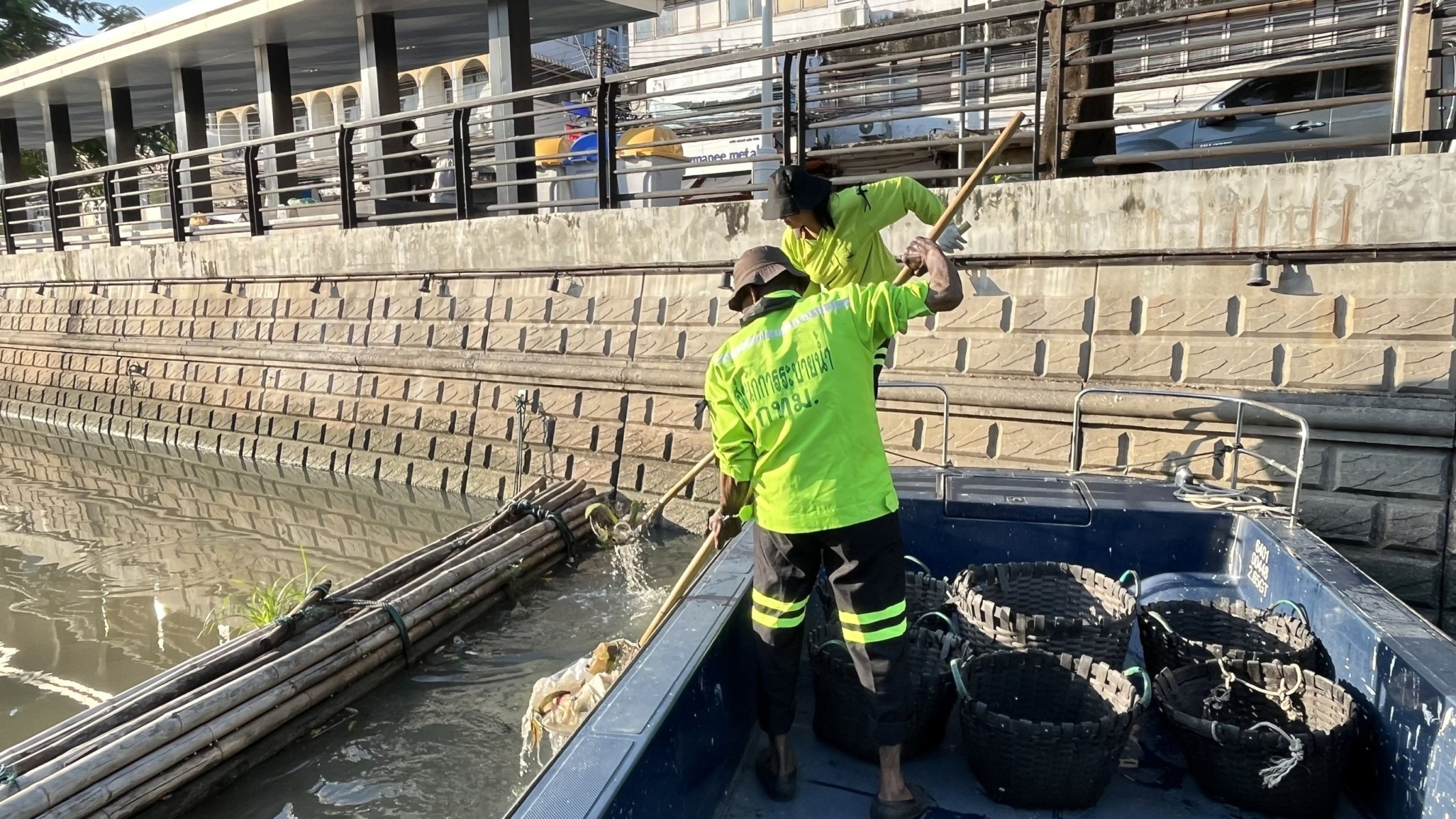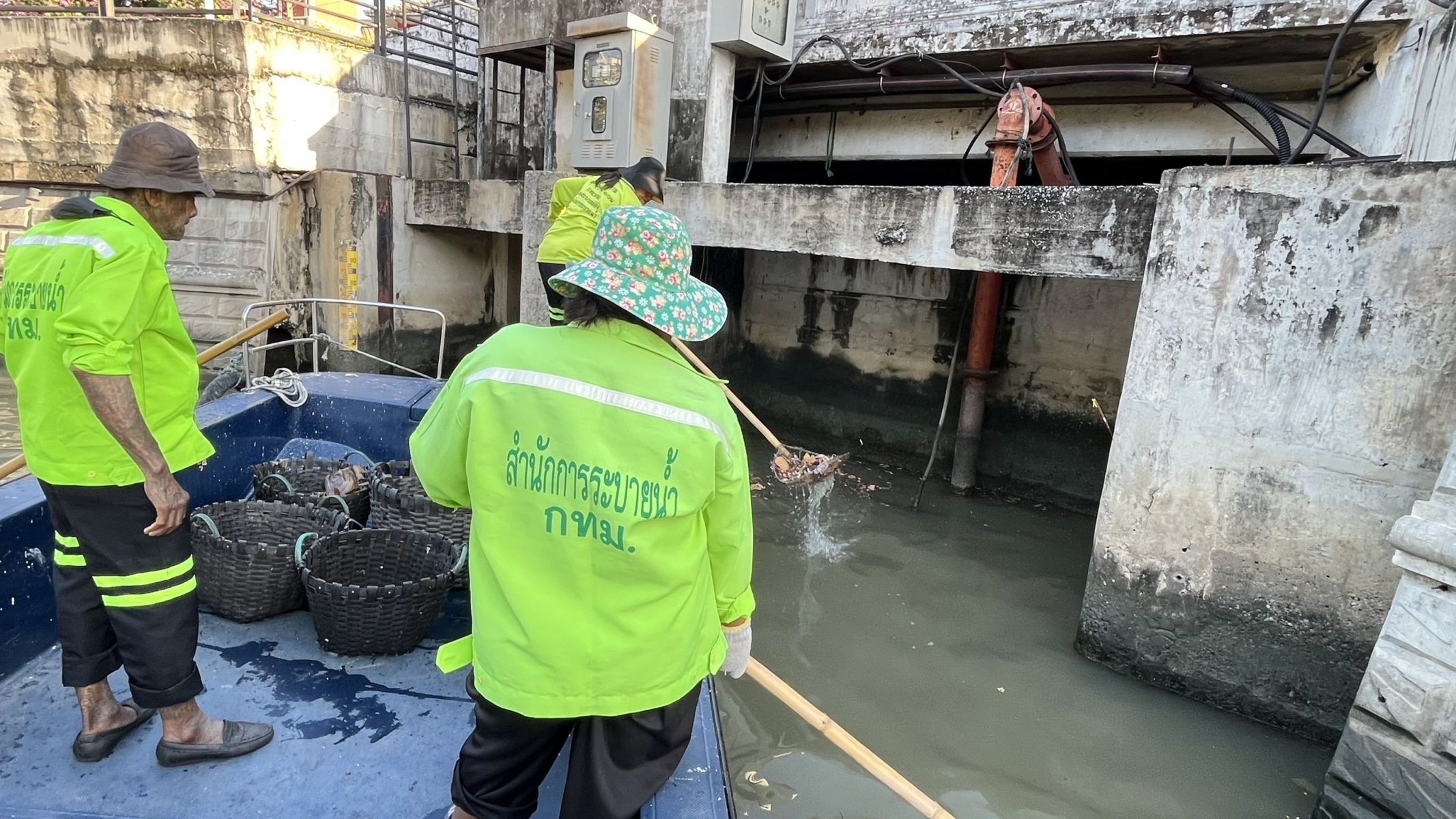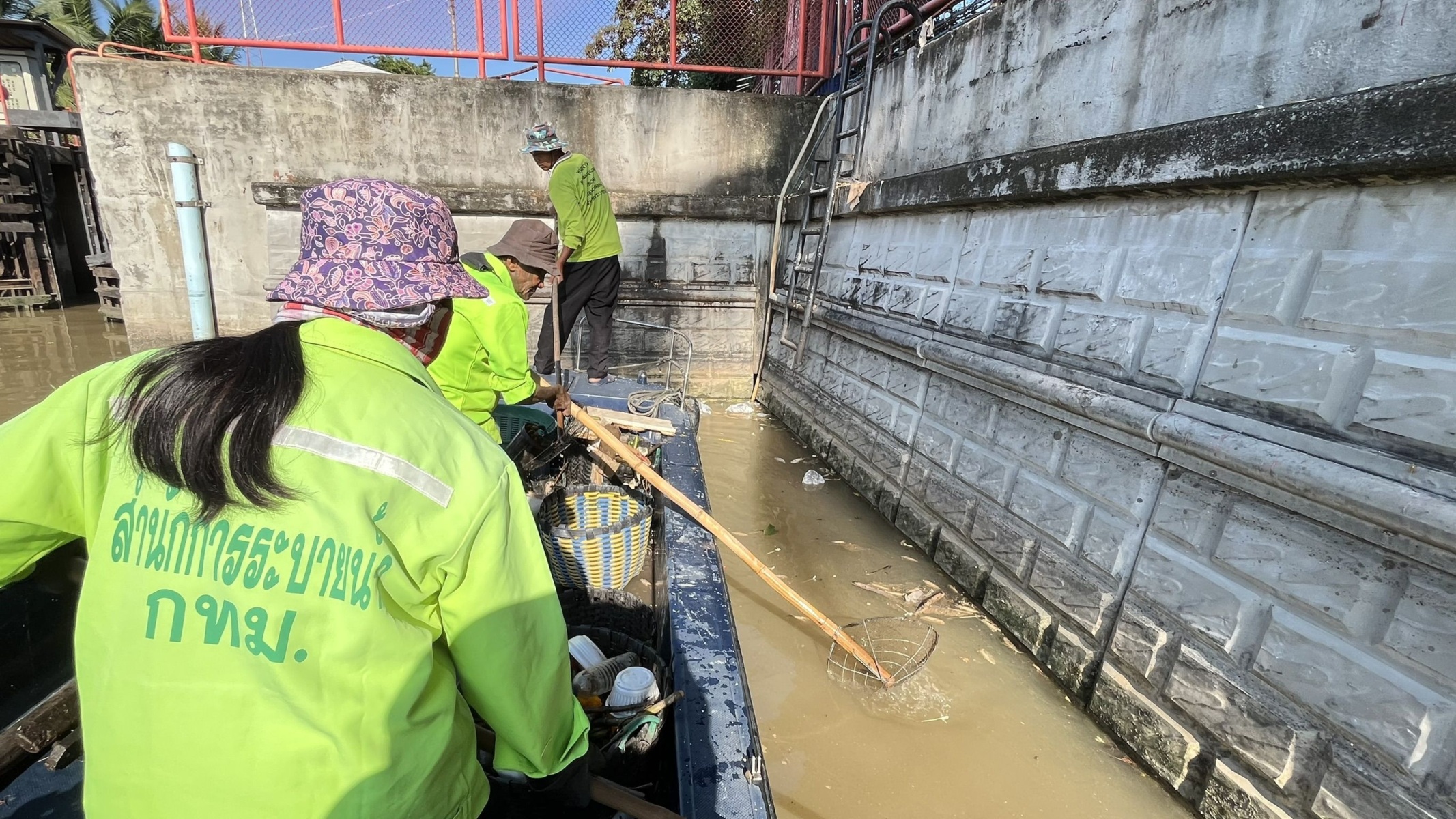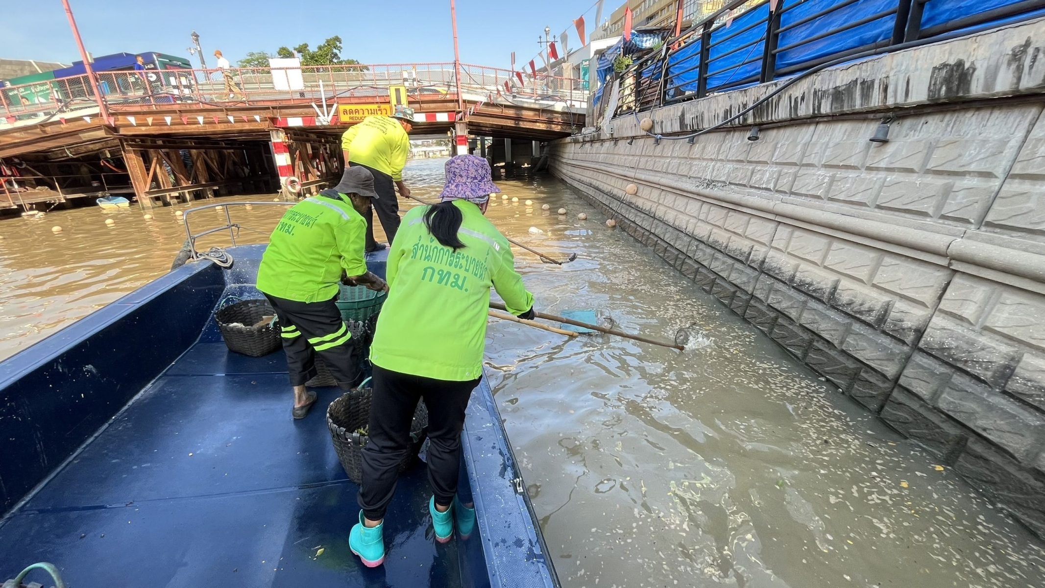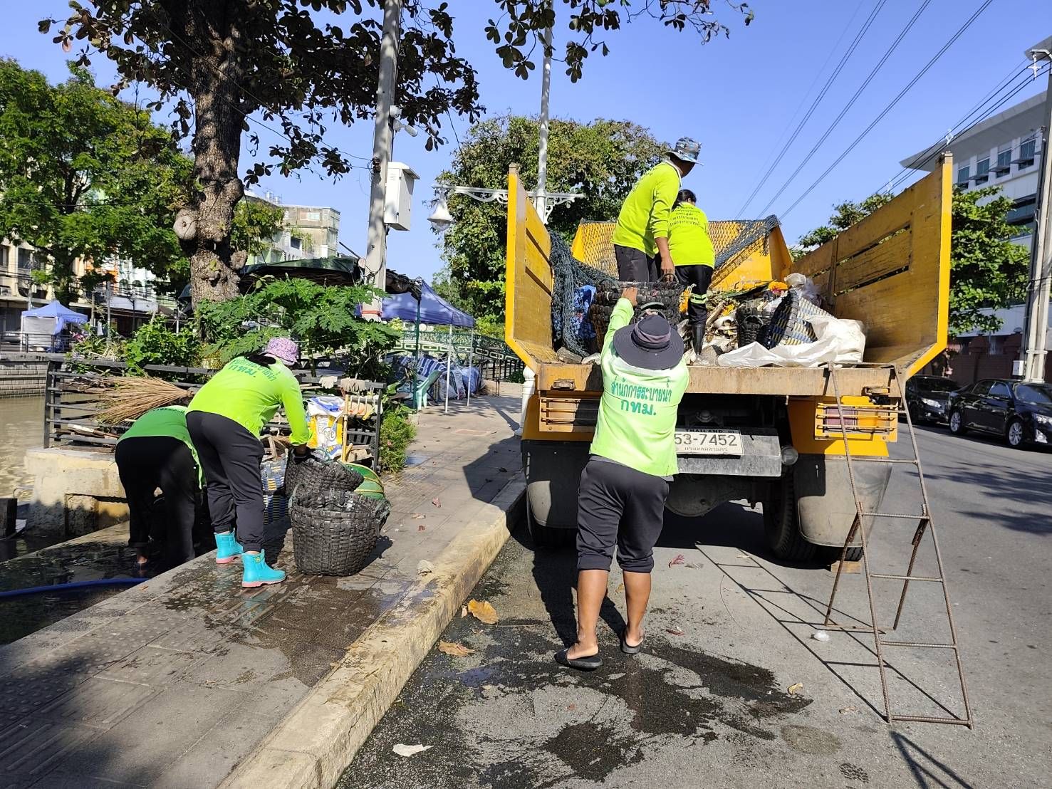 เจ้าหน้าที่ ตักเก็บขยะและวัชพืชเก็บจาก ปตร. เทเวศร์ตลอดช่วงสะพานมัฆวานถึงสี่แยกมหานาค พื้นที่เขตดุสิต เขตพระนคร เขตป้อมปราบศัตรูพ่าย