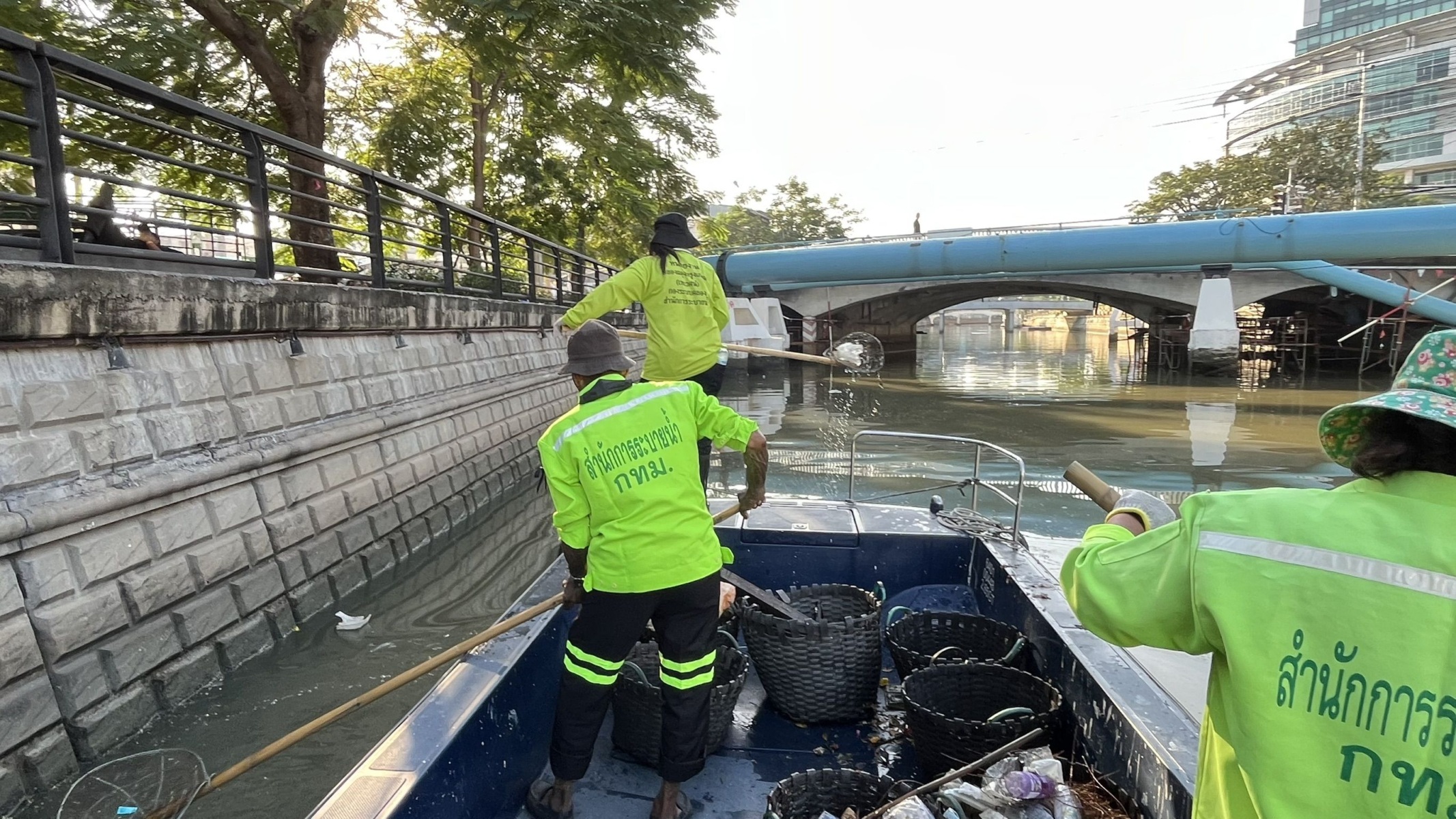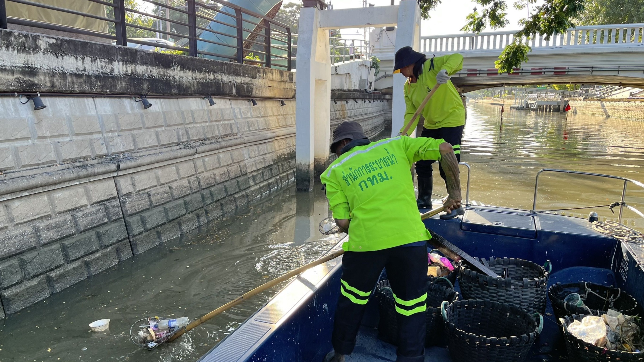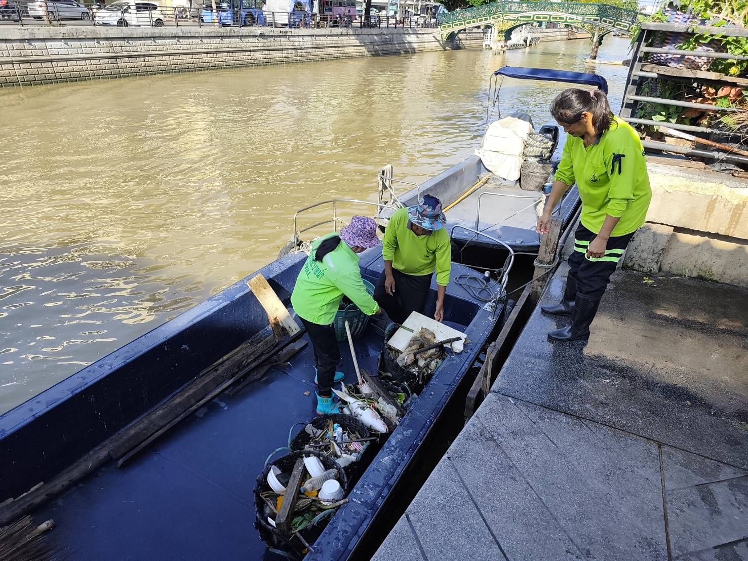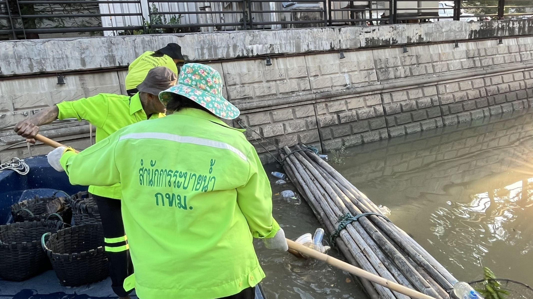 เจ้าหน้าที่ ตักเก็บขยะและวัชพืชเก็บจาก ปตร. เทเวศร์ตลอดช่วงสะพานมัฆวานถึงสี่แยกมหานาค พื้นที่เขตดุสิต เขตพระนคร เขตป้อมปราบศัตรูพ่าย