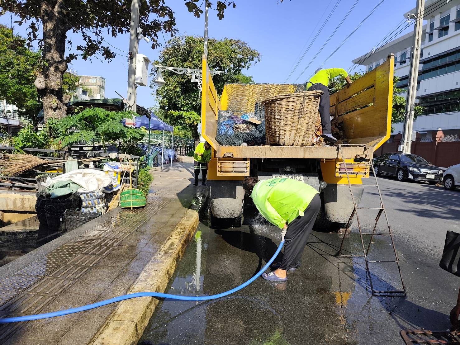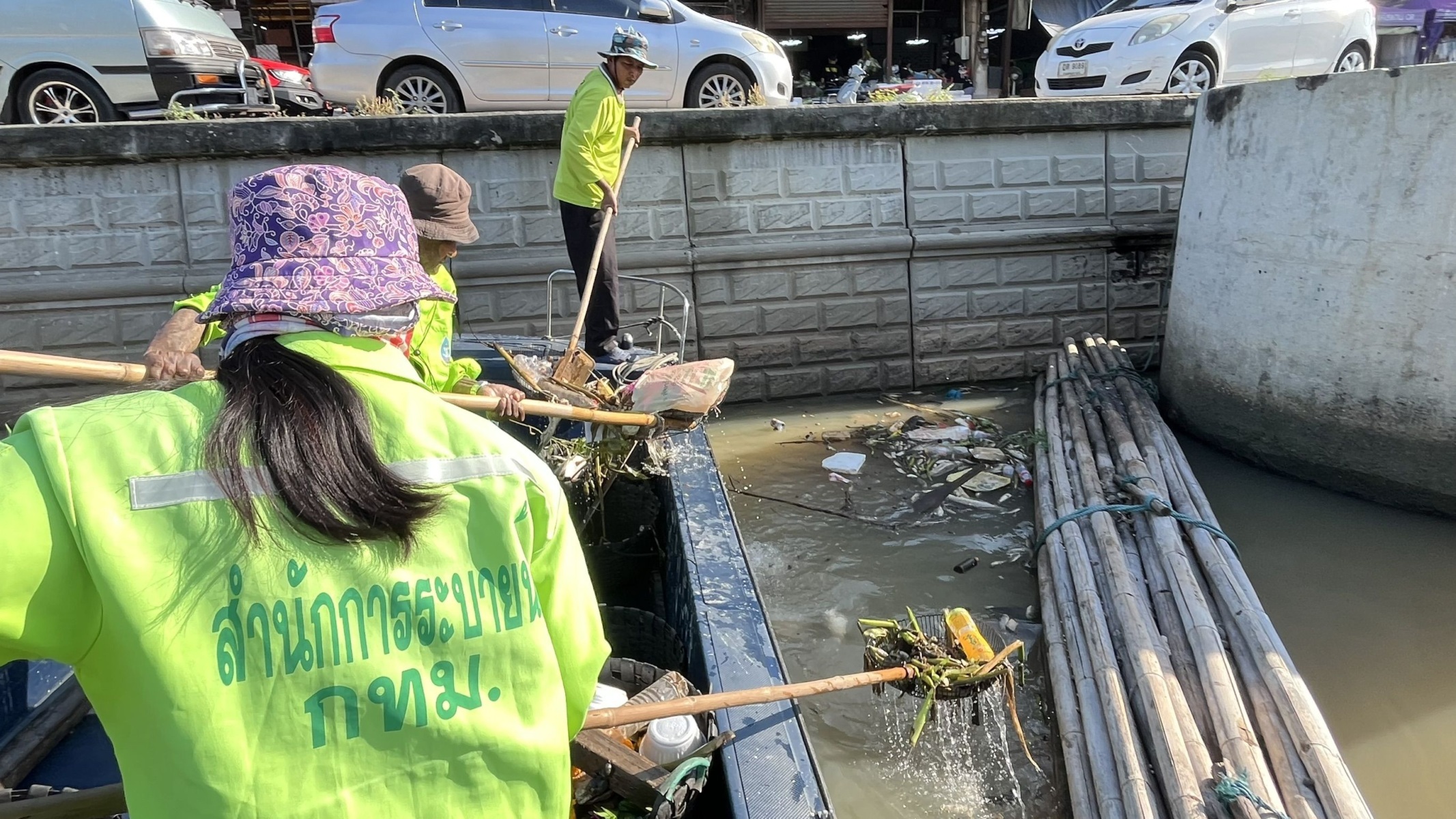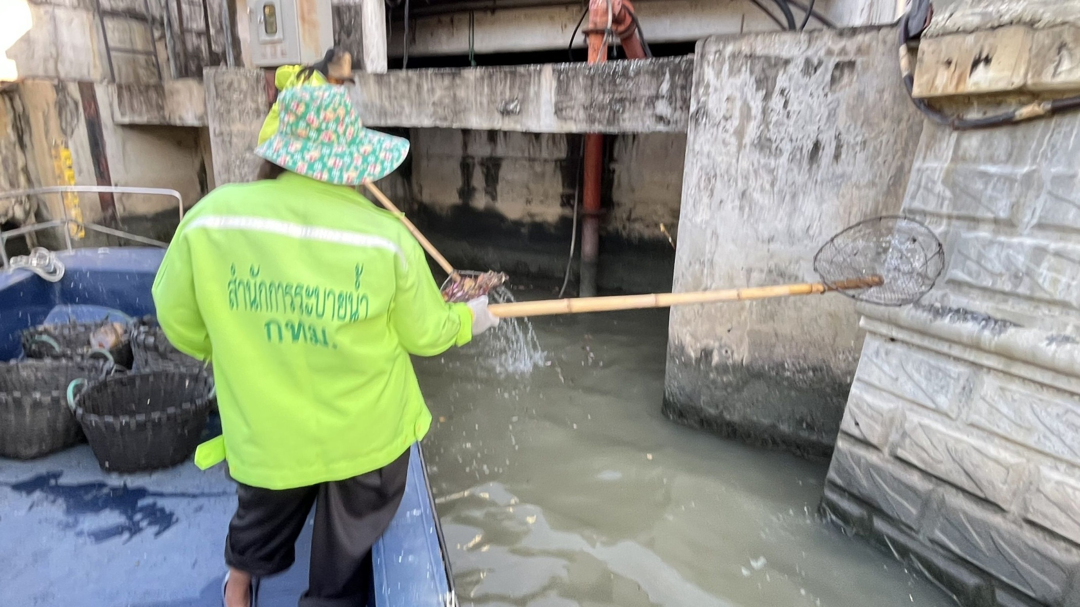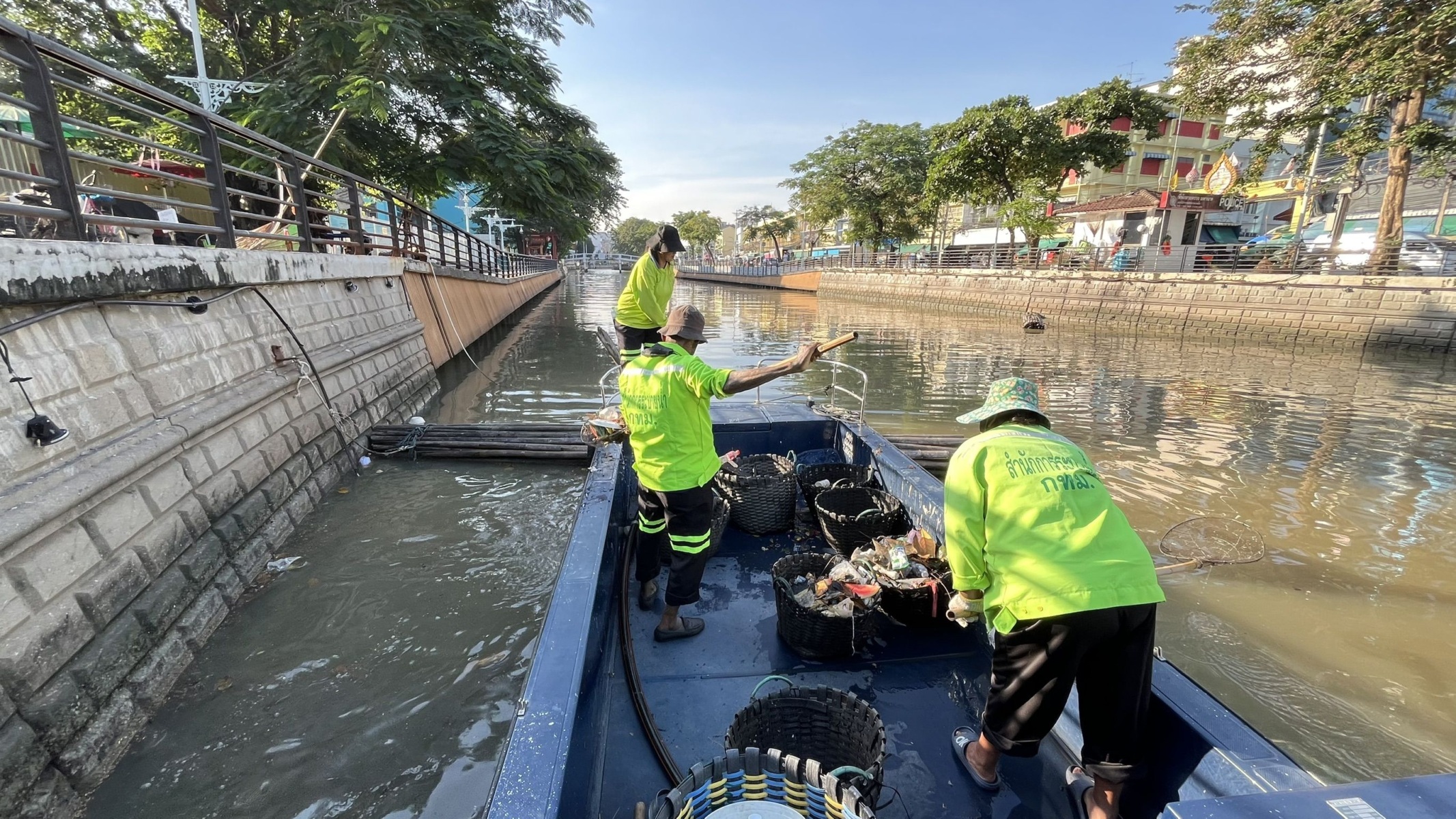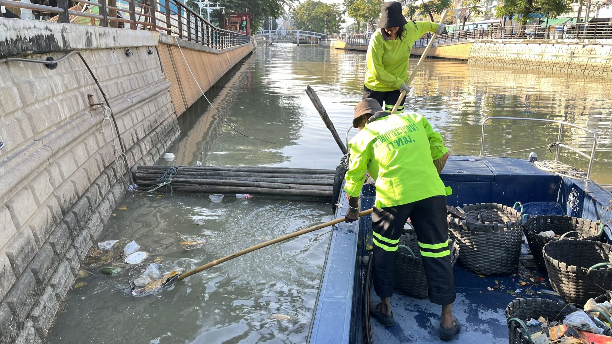 เจ้าหน้าที่ ตักเก็บขยะและวัชพืชเก็บจาก ปตร. เทเวศร์ตลอดช่วงสะพานมัฆวานถึงสี่แยกมหานาค พื้นที่เขตดุสิต เขตพระนคร เขตป้อมปราบศัตรูพ่าย