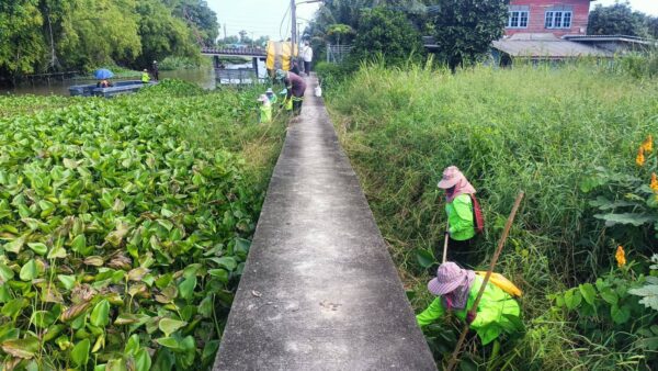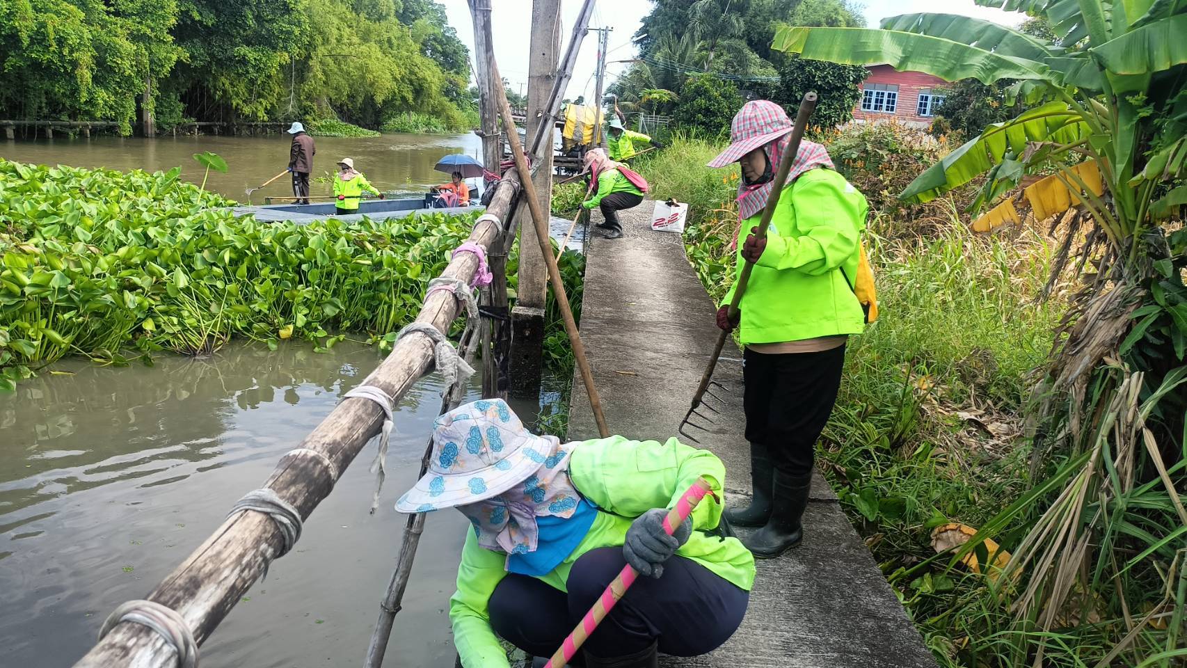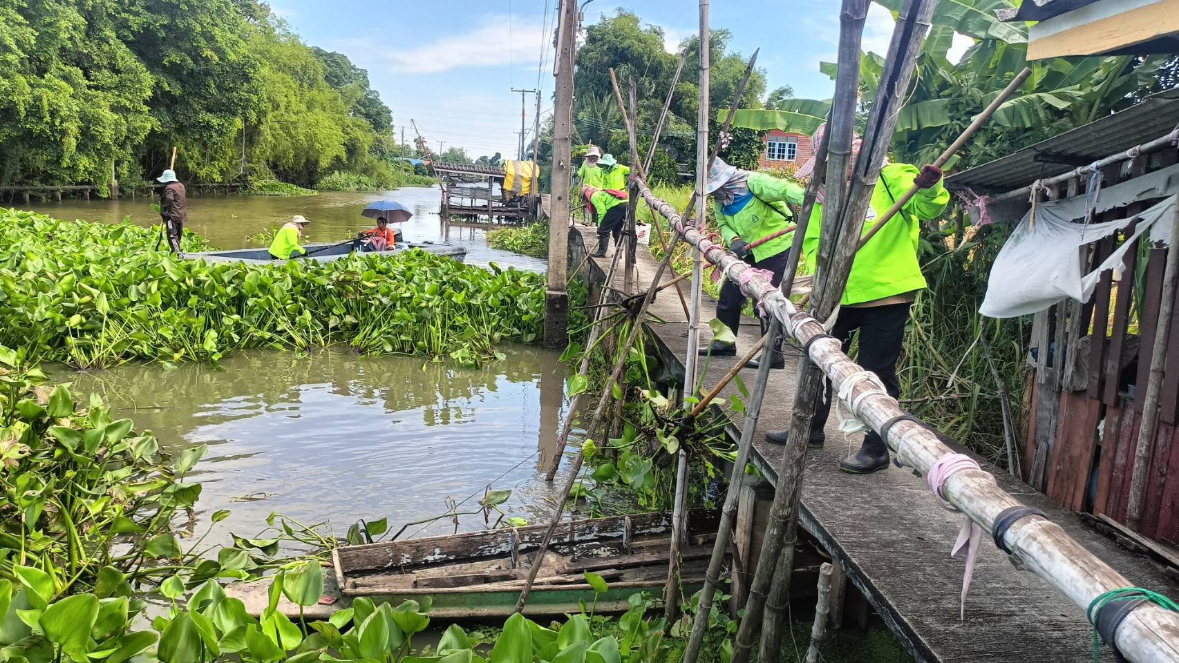 เจ้าหน้าที่ จัดเก็บวัชพืชคลองหลวงแพ่ง เขตลาดกระบัง
