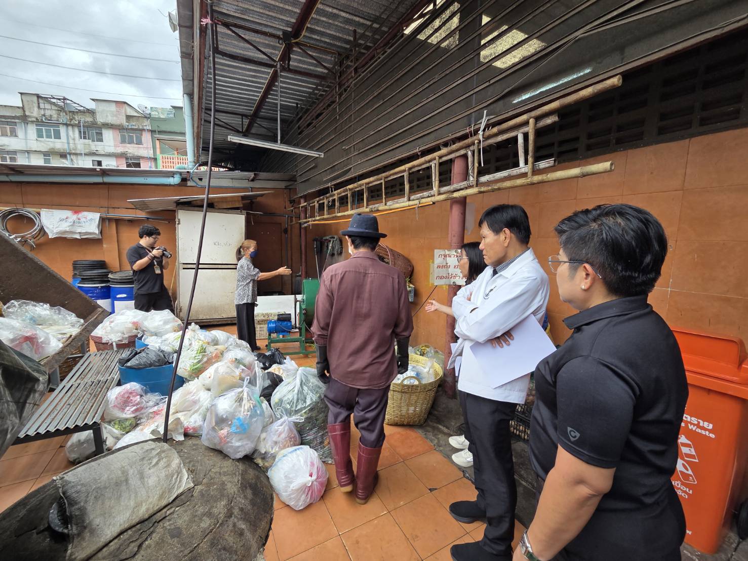 เยี่ยมชมต้นแบบการคัดแยกขยะ ตลาดนครไทย ซอยลาดพร้าว 101 พื้นที่ 2 ไร่ แผงค้า 200 แผง ผู้มาใช้บริการ 2,000 คน/วัน เข้าร่วมโครงการคัดแยกขยะ ตั้งแต่ปี 2560 วิธีการคัดแยกขยะ โดยจำแนกตามประเภทของขยะ ดังนี้ 1.ขยะอินทรีย์ ร้านค้าคัดแยกขยะแต่ละประเภท โดยร้านที่ขายอาหารและของสด จะคัดแยกโดยการกรองน้ำออกแล้วใส่ในถังที่เกษตรกรนำมารองรับไว้ พนักงานของตลาดจะรวบรวมนำไปไว้ที่ห้องพักขยะ มีเกษตรกรจะมารับ 3 วัน/ครั้ง ส่วนเศษผักผลไม้ ดอกไม้สด ตลาดจะนำไปบดย่อยก่อนนำไปกำจัด โดยมีเกษตรกรจะนำไปทำเป็นปุ๋ยหมัก 2.ขยะรีไซเคิล ร้านค้าจะคัดแยกเอง ขายเอง และในส่วนกลางจะเป็นเจ้าหน้าที่ของตลาดคัดแยกนำไปขายเอง 3.ขยะทั่วไป คัดแยกขยะทั่วไป เขตฯ จัดเก็บอาทิตย์ละ 2-3 ครั้ง 4.ขยะอันตราย ส่วนกลางรวบรวม เมื่อมีปริมาณมาก จะแจ้งเขตฯ จัดเก็บไปกำจัดอย่างถูกวิธี สำหรับปริมาณขยะก่อนคัดแยกและหลังคัดแยก ดังนี้ ขยะทั่วไปก่อนคัดแยก 109,580 ลิตร/เดือน หลังคัดแยก 9,600 ลิตร/เดือน ขยะรีไซเคิลหลังคัดแยก 1,000 กิโลกรัม/เดือน ขยะอินทรีย์หลังคัดแยก 12,500 กิโลกรัม/เดือน ขยะอันตรายหลังคัดแยก 80 กิโลกรัม/เดือน ทั้งนี้ รองผู้ว่าราชการกรุงเทพมหานคร ได้ให้คำแนะนำในการคัดแยกขยะประเภทต่าง ๆ เพื่อให้จัดเก็บมีประสิทธิภาพมากยิ่งขึ้น โดยเฉพาะขยะเศษอาหาร เศษผัก ในแต่ละวันที่มีเป็นจำนวนมาก สามารถนำไปทำปุ๋ยอินทรีย์หรือน้ำหมักชีวภาพได้ ซึ่งปริมาณขยะที่คัดแยกจะมีผลต่ออัตราค่าธรรมเนียมในการจัดการมูลฝอยฉบับใหม่ โดยมีผลบังคับใช้ในเดือนตุลาคม 2568 พร้อมทั้งมอบหมายให้เขตฯ ตรวจสอบข้อมูลบ้านเรือนประชาชนที่ลงทะเบียนผ่านแอปฯ BKK WASTE PAY แล้ว แต่ยังส่งข้อมูลไม่ครบถ้วนตามที่กำหนด ส่วนใหญ่ยังขาดรูปภาพประกอบของขยะแต่ละประเภท ให้สร้างความเข้าใจแก่ประชาชนในการส่งข้อมูลให้ครบถ้วน เพื่อไม่ให้เสียสิทธิ์ในการชำระค่าธรรมเนียมขยะในอัตราใหม่จาก 60 บาท เป็น 20 บาทต่อเดือน