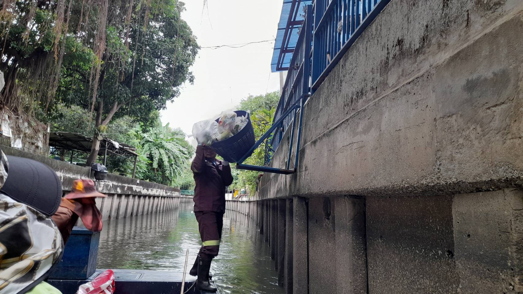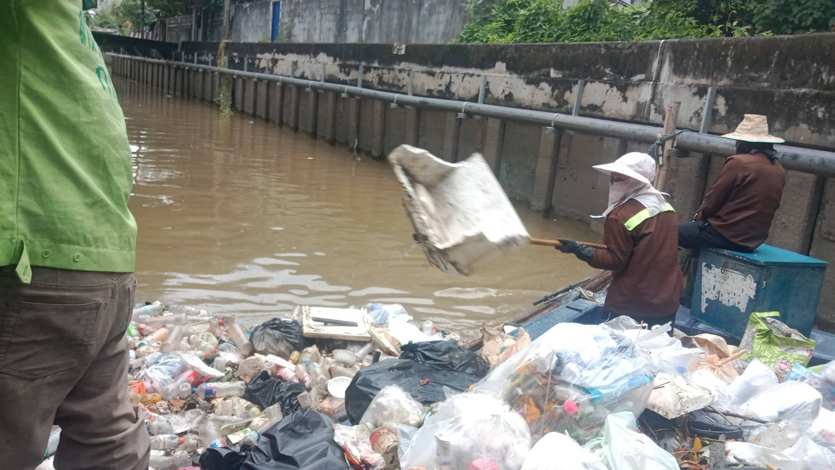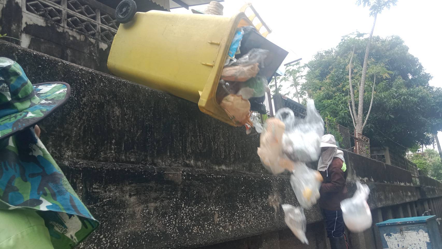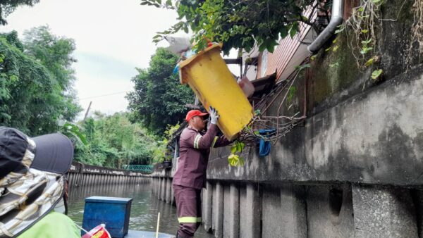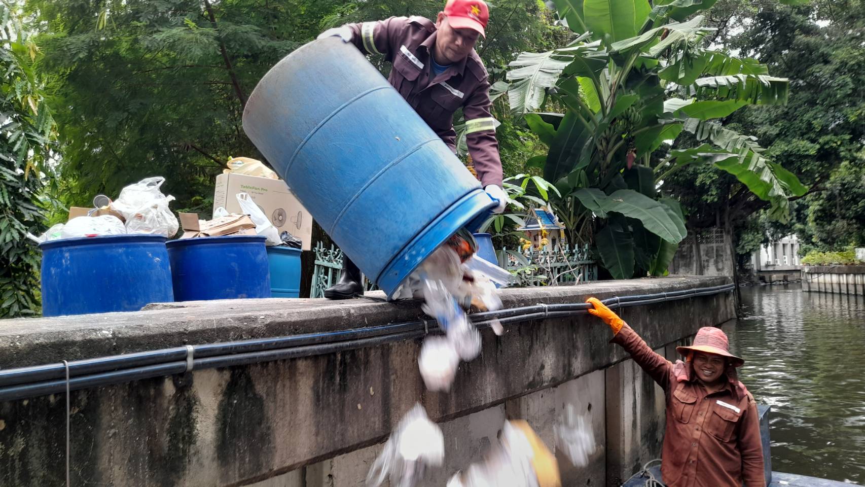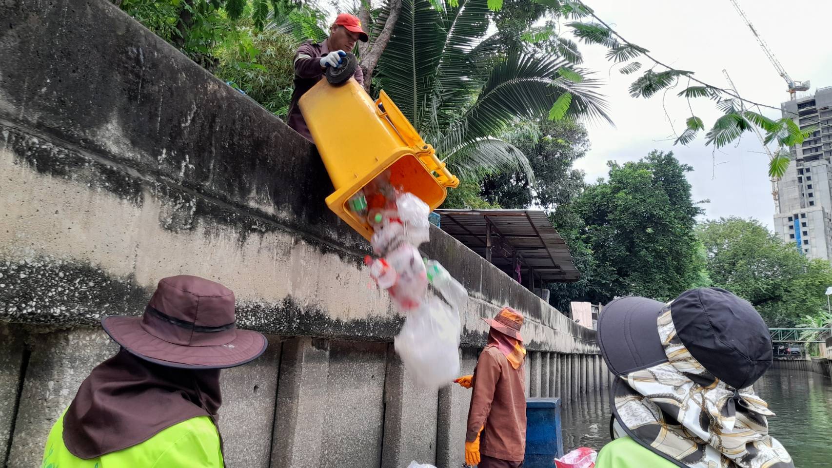 เจ้าหน้าที่ เก็บขยะแนวสันเขื่อนและตักขยะในคลองสามเสน พื้นที่เขตห้วยขวาง เขตดินแดงและเขตราชเทวี