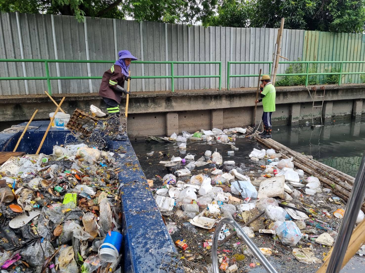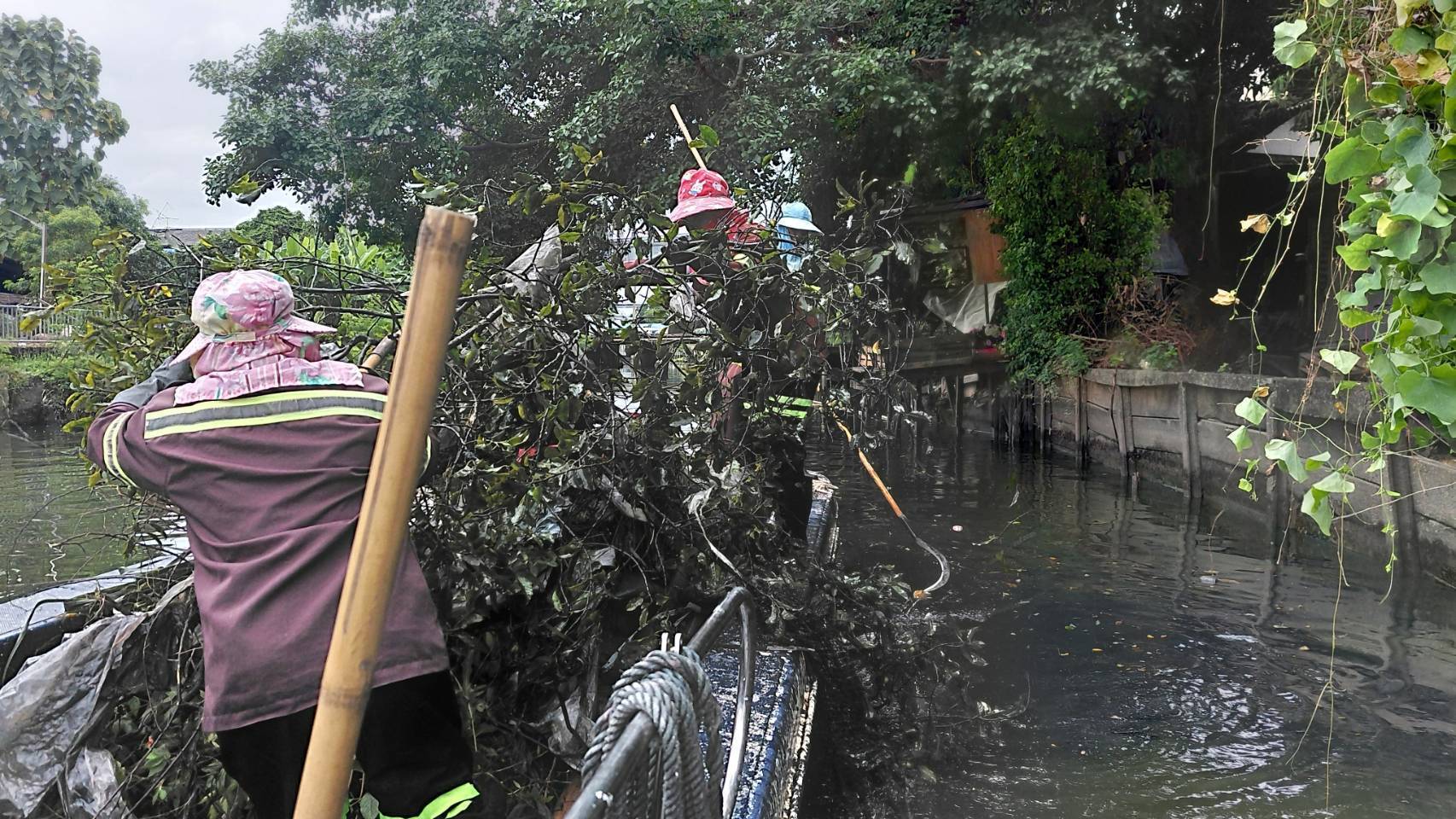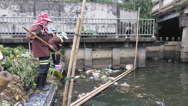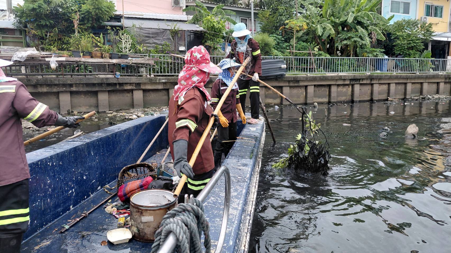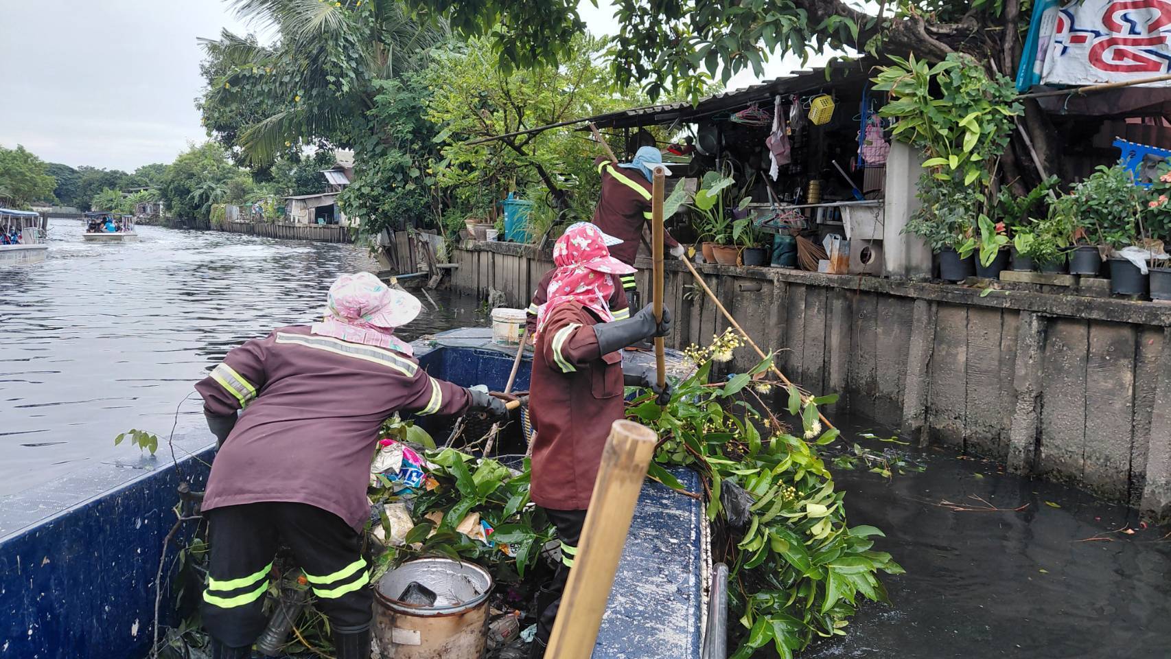 เจ้าหน้าที่ เก็บขยะและวัชพืชคลองลาดพร้าว พื้นที่เขตจตุจักร เขตลาดพร้าว เขตห้วยขวาง เขตวังทองหลาง